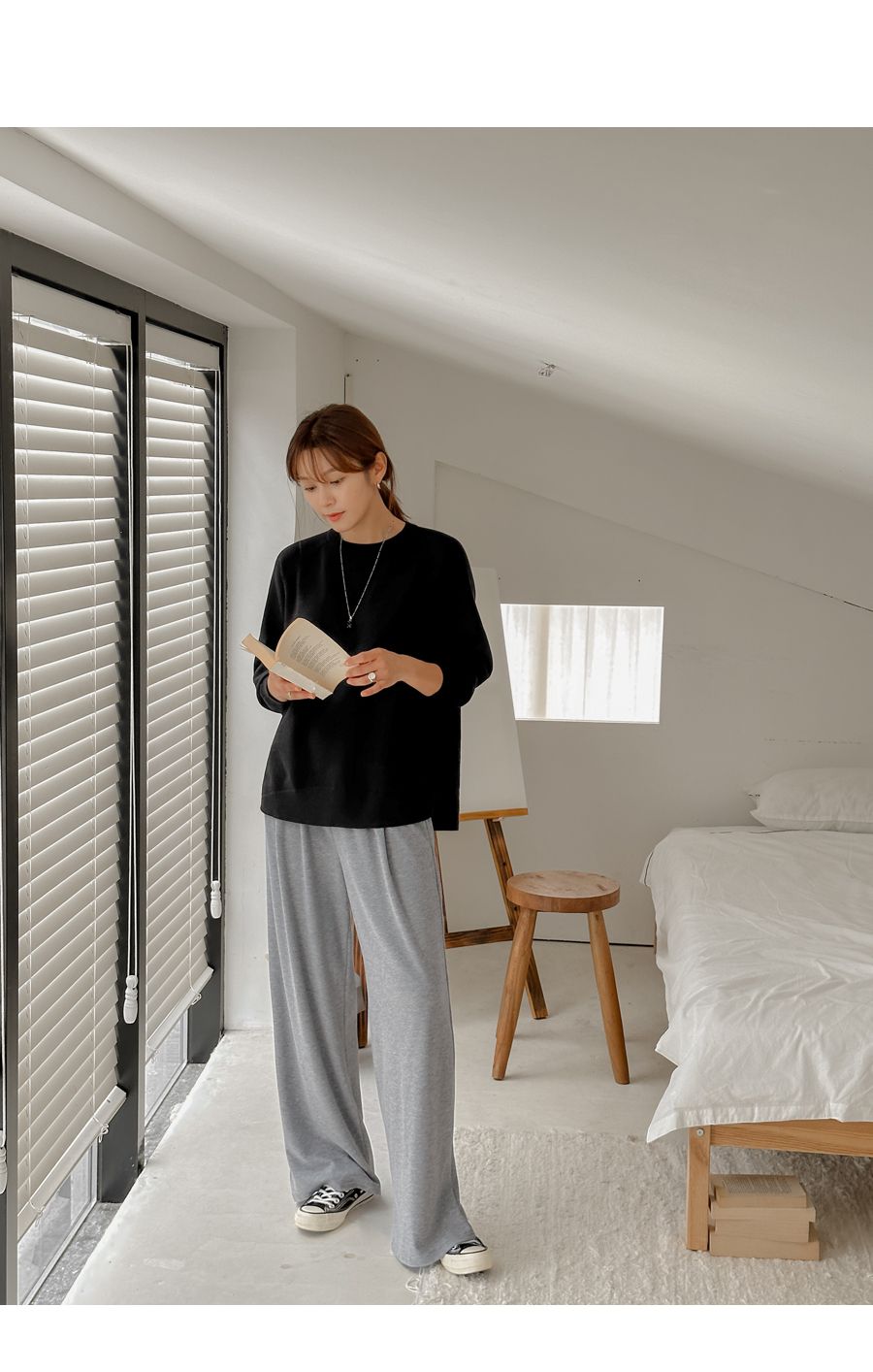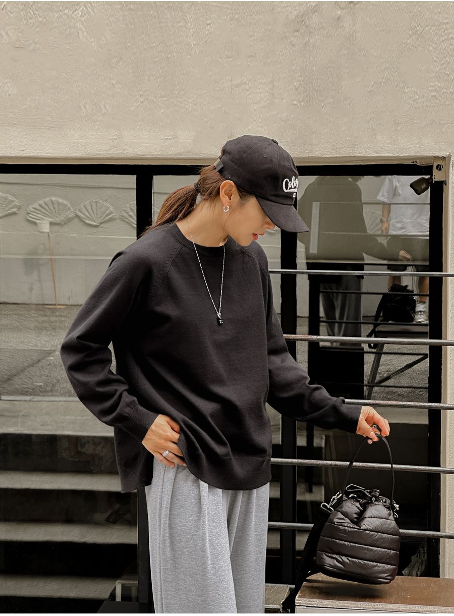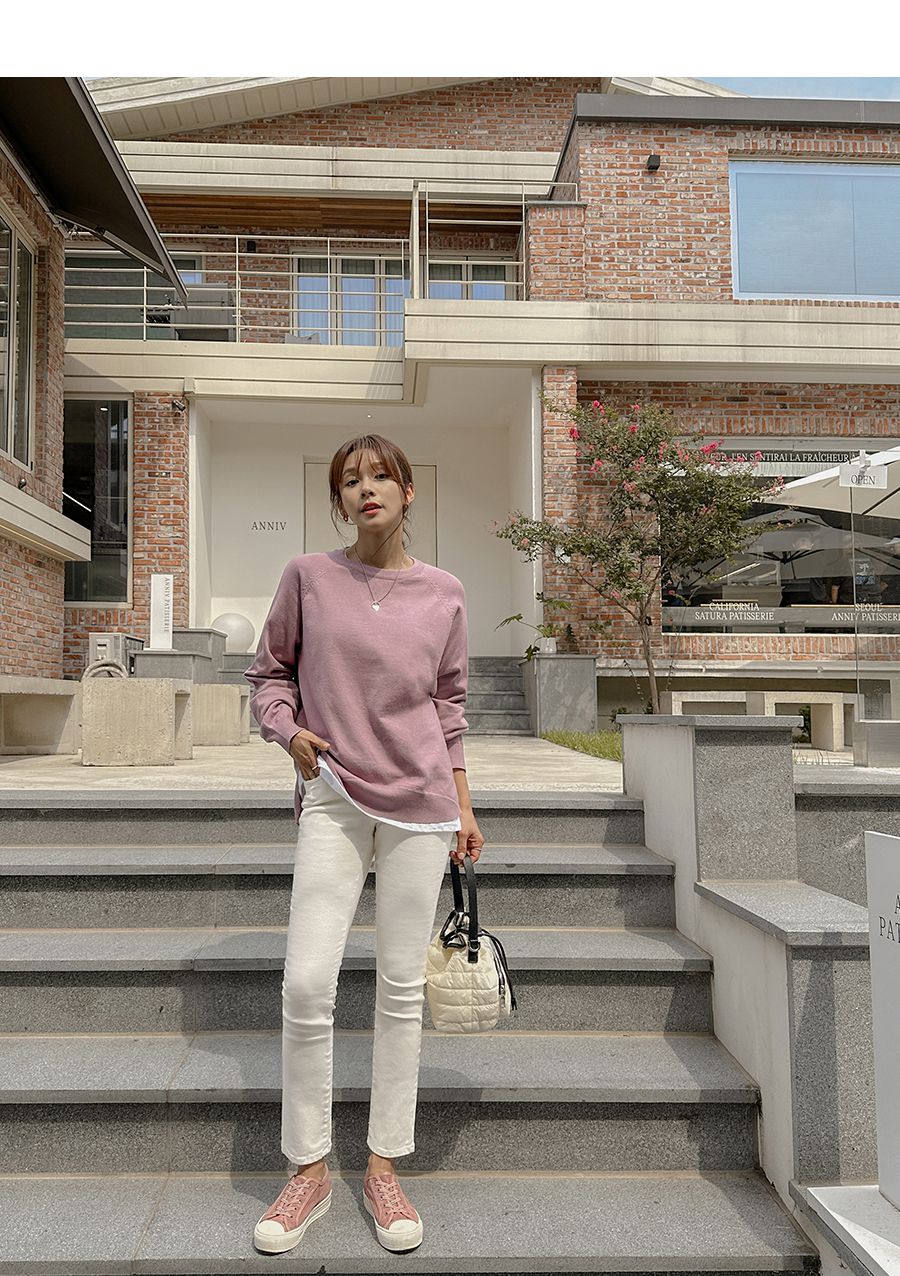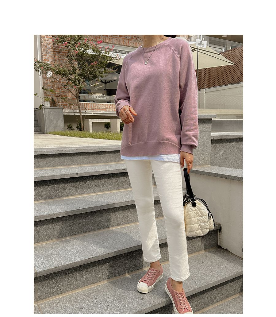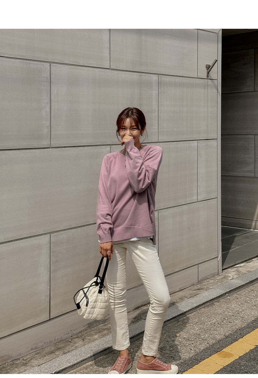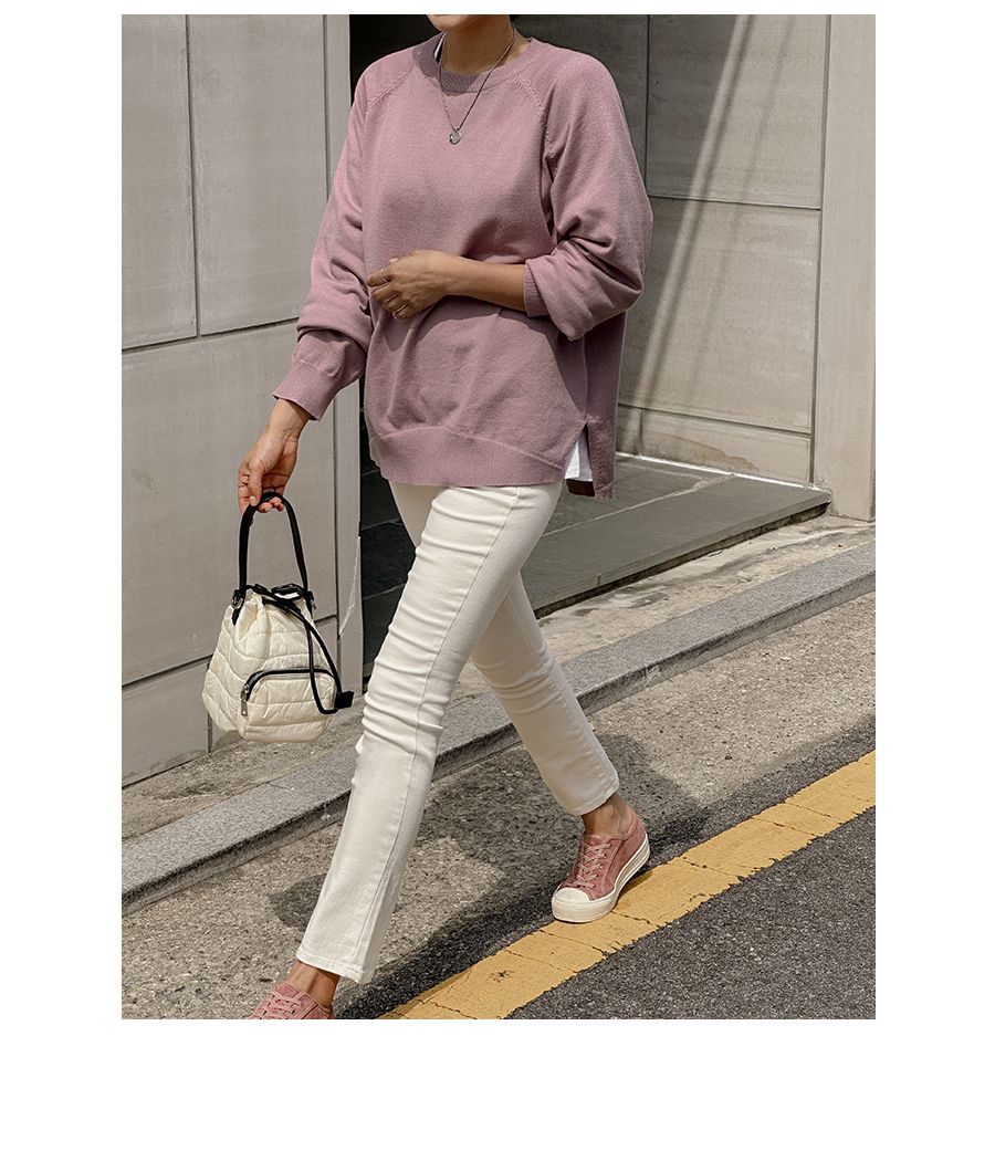 圓領/前短後長/好氣色/連肩袖/弧形下襬/側開衩/長版 - 休閒居家簡約百搭素面長版針織衫針織上衣長袖上衣紫色黑色奶油色灰綠色