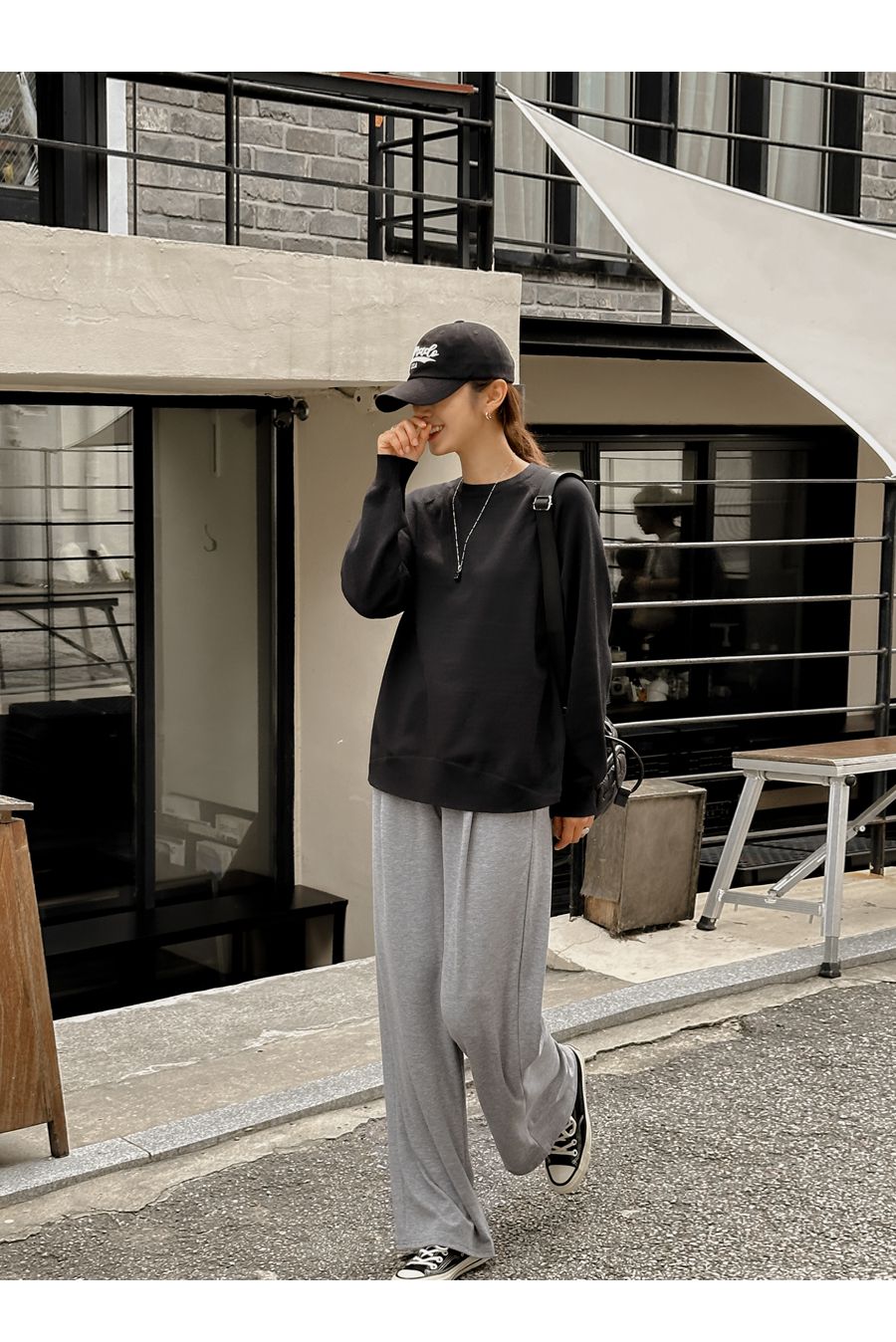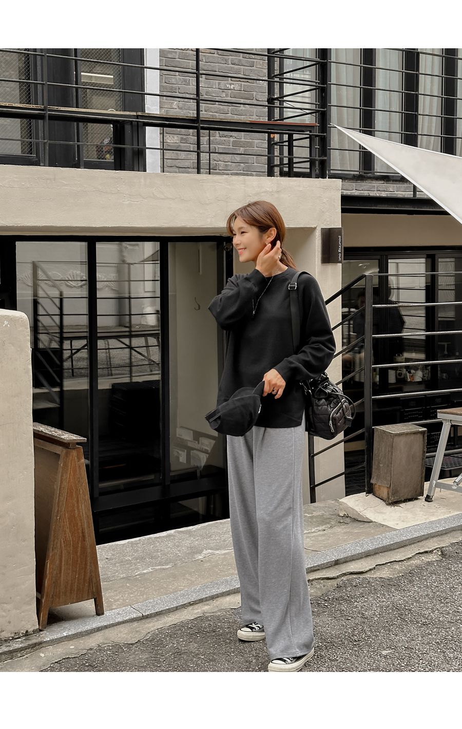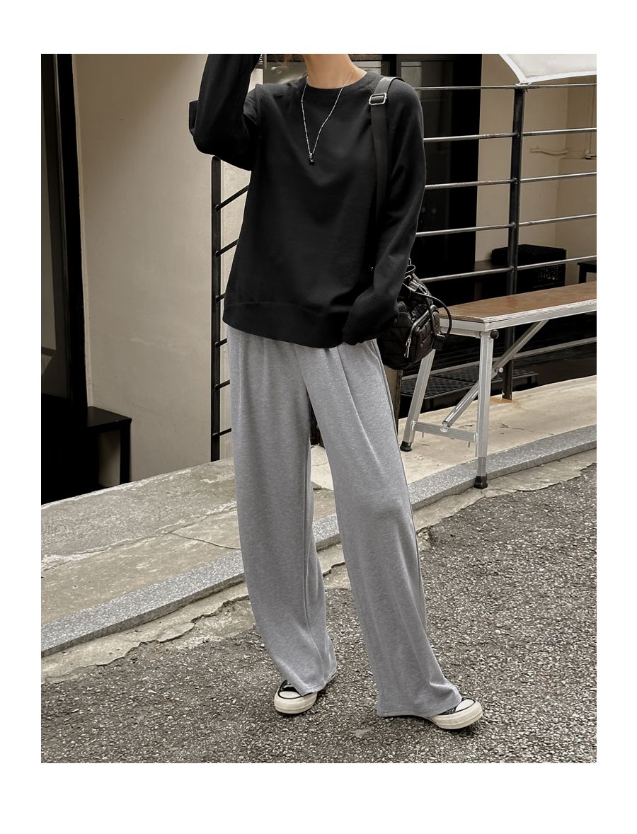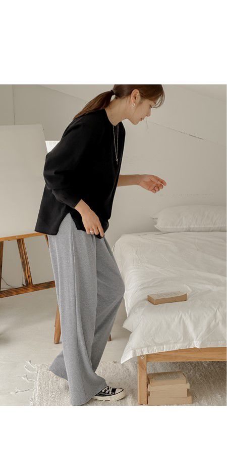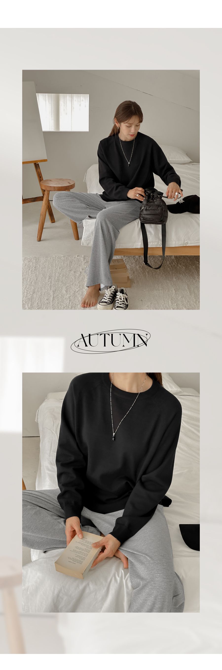 圓領/前短後長/好氣色/連肩袖/弧形下襬/側開衩/長版 - 休閒居家簡約百搭素面長版針織衫針織上衣長袖上衣紫色黑色奶油色灰綠色