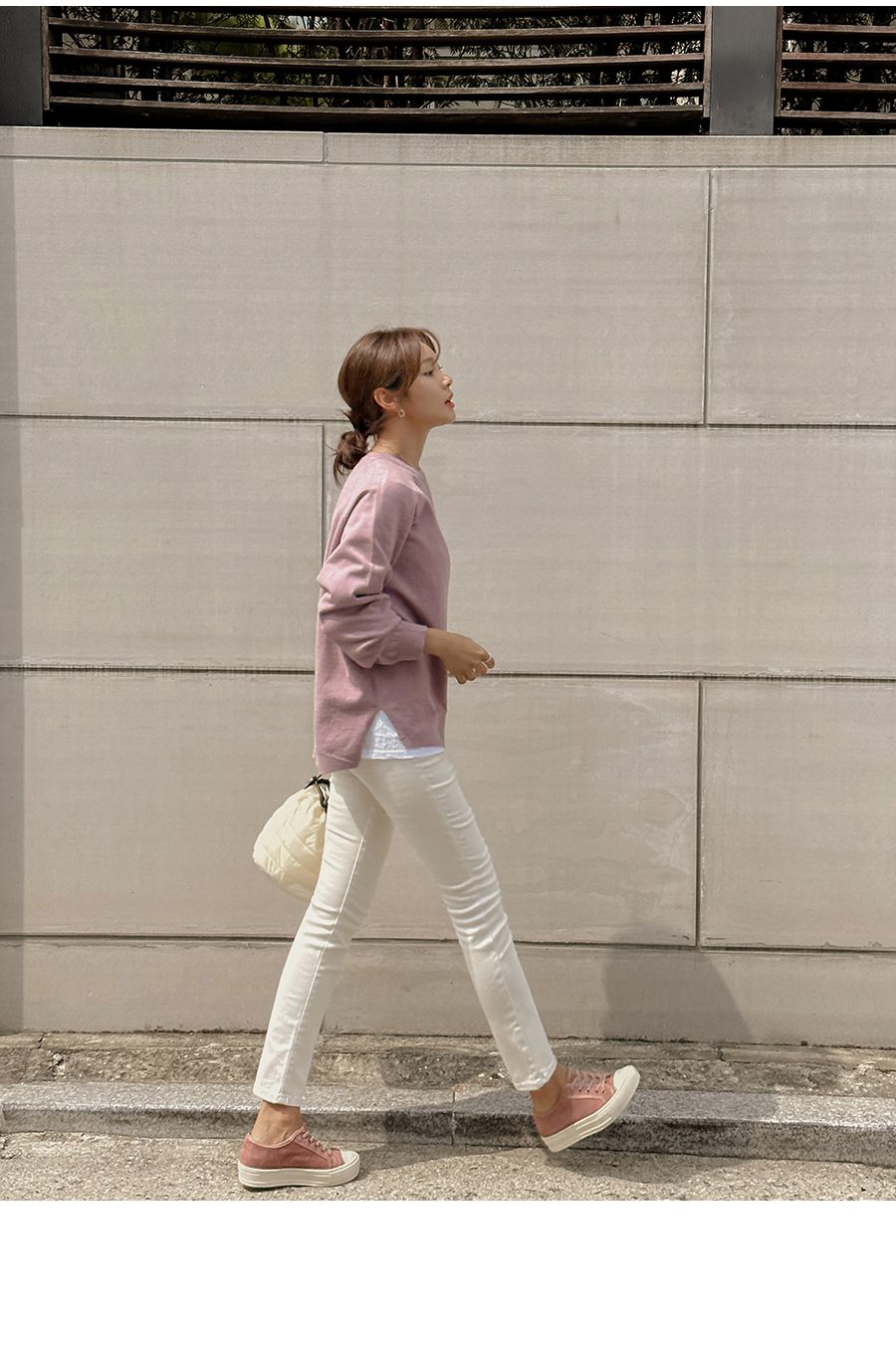 【C55646】韓國JAM 素面長版針織衫-圓領前短後長好氣色連肩長袖上衣★★