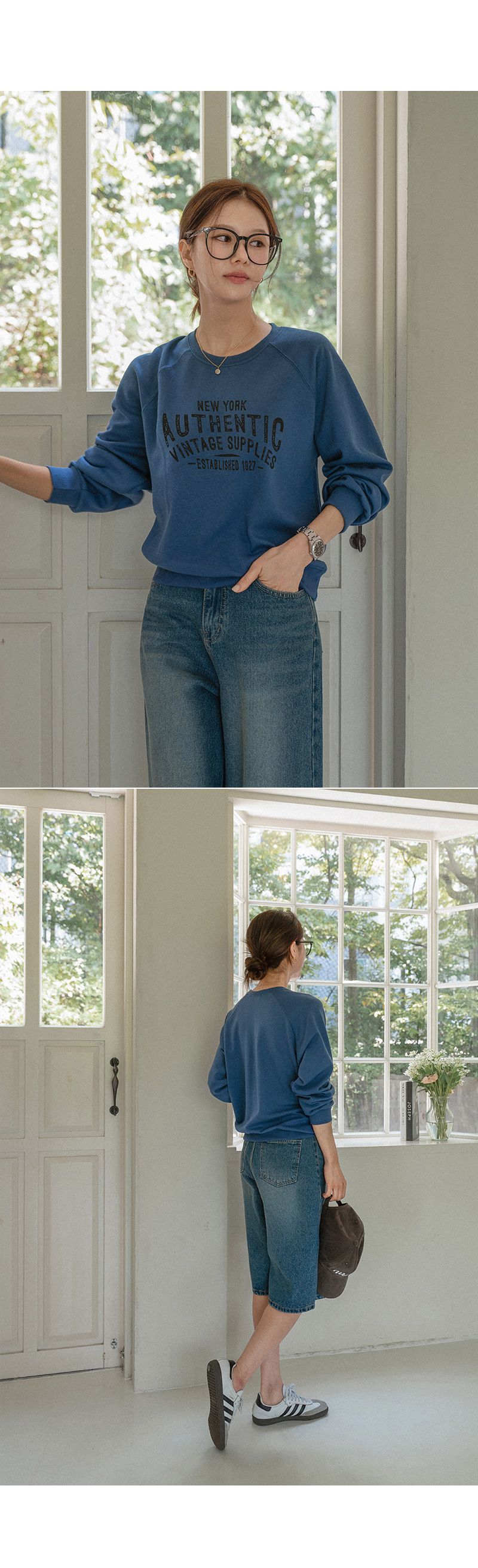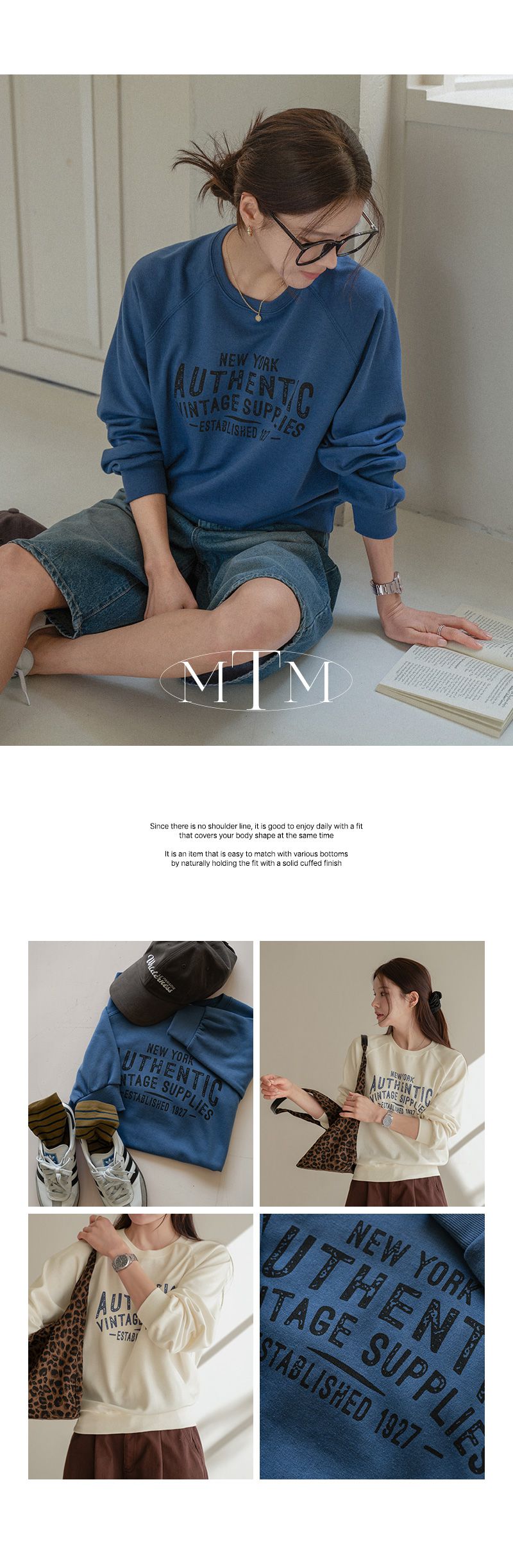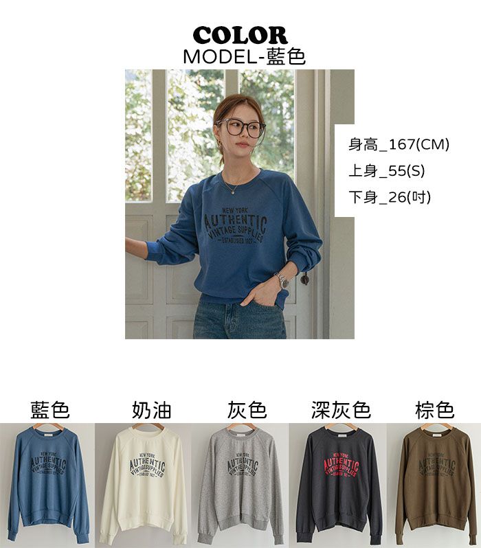 膠印字母/復古字母/圓領/柔軟面料 - 休閒居家英文字母上衣字母T恤仿舊字母大學T長袖上衣藍色奶油色灰色深灰色棕色