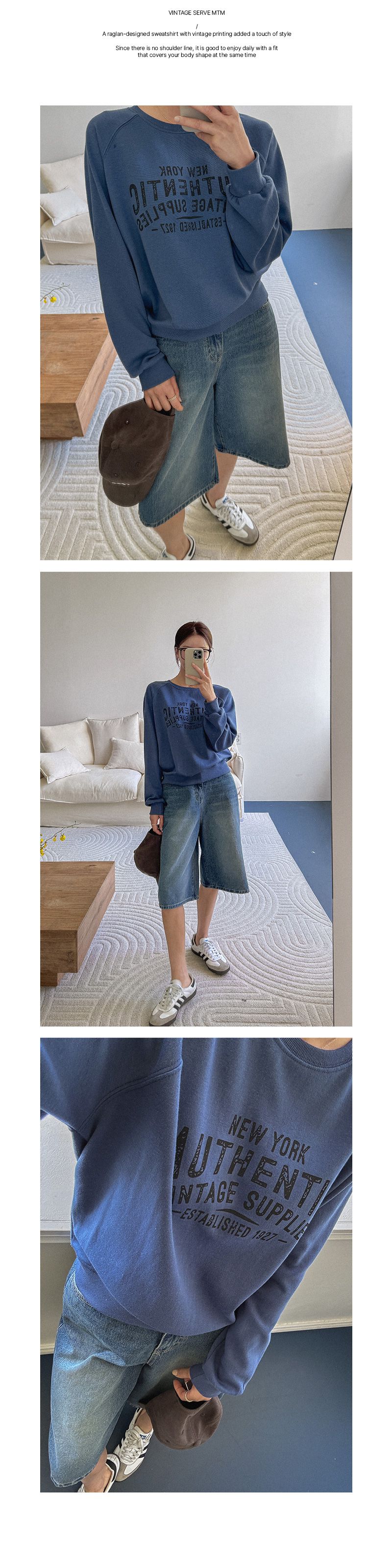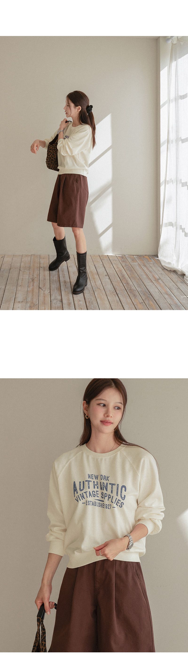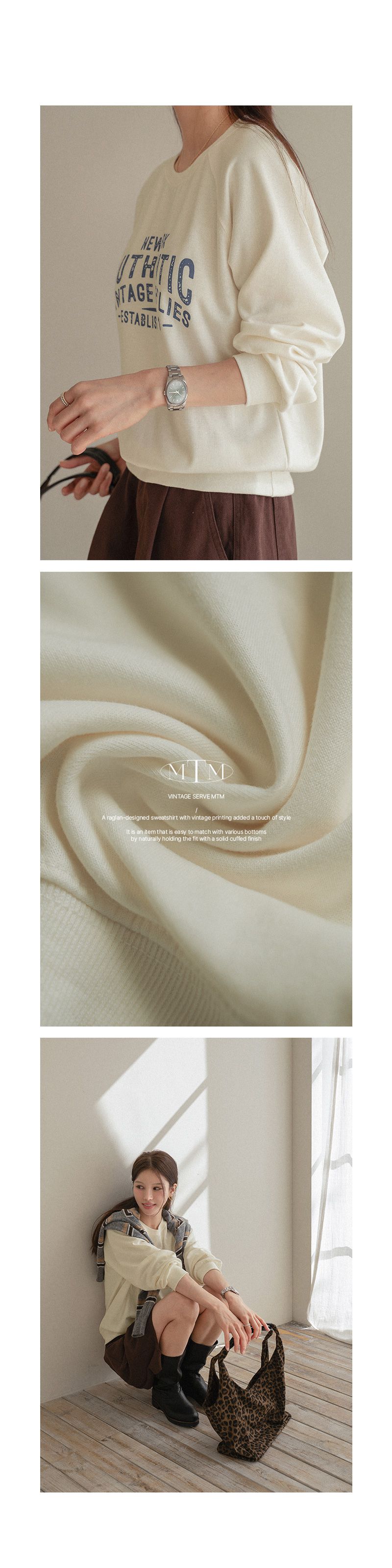 膠印字母/復古字母/圓領/柔軟面料 - 休閒居家英文字母上衣字母T恤仿舊字母大學T長袖上衣藍色奶油色灰色深灰色棕色