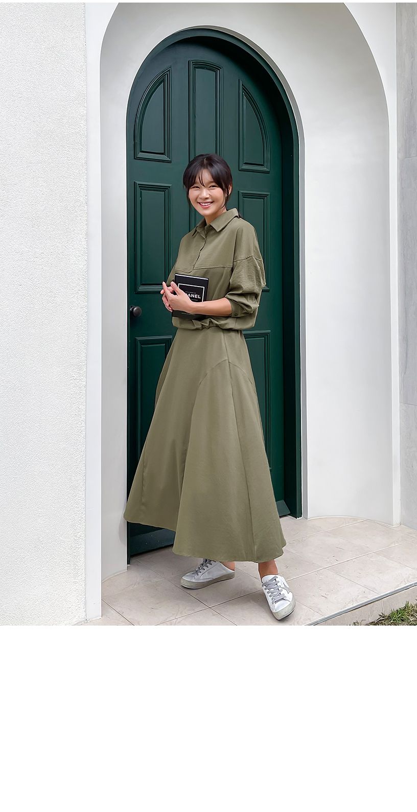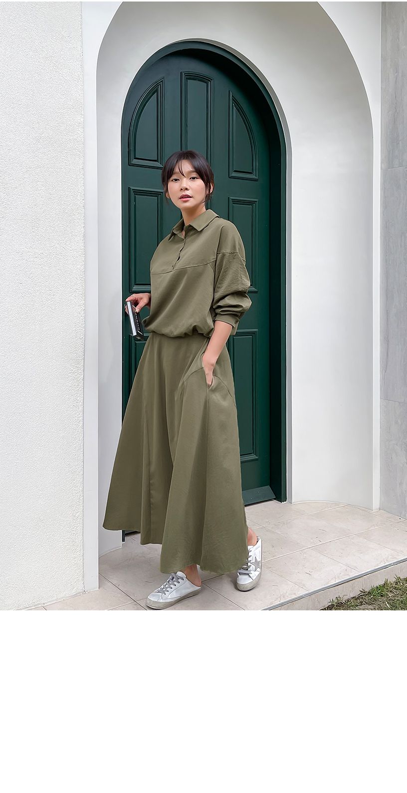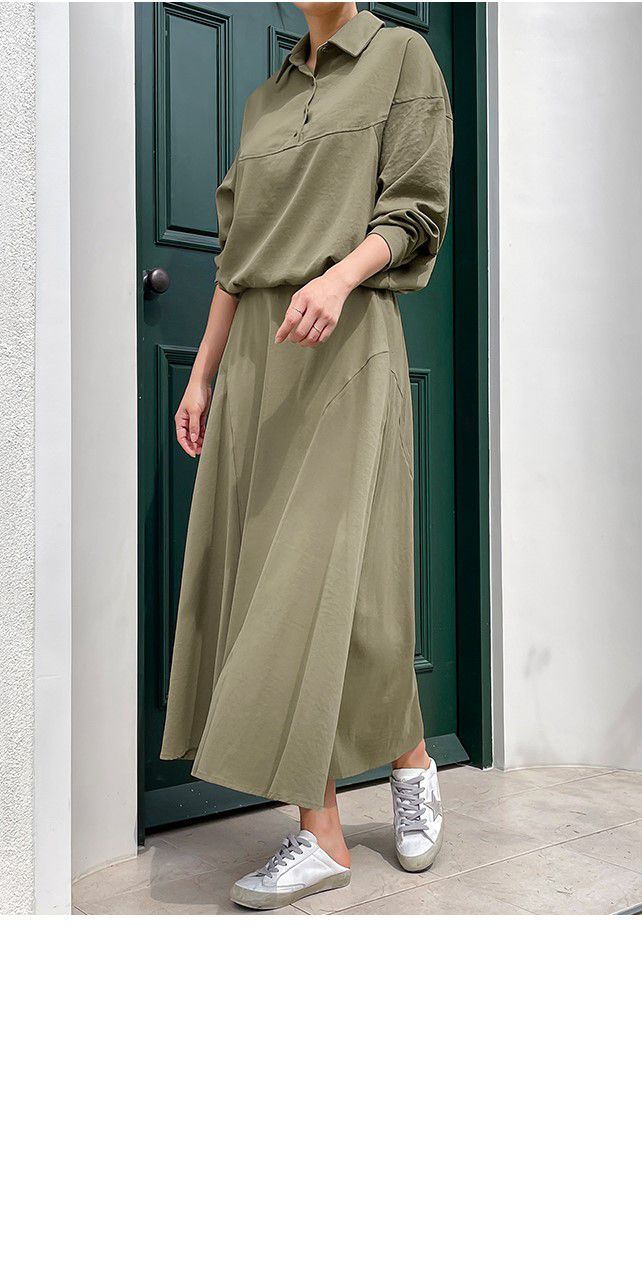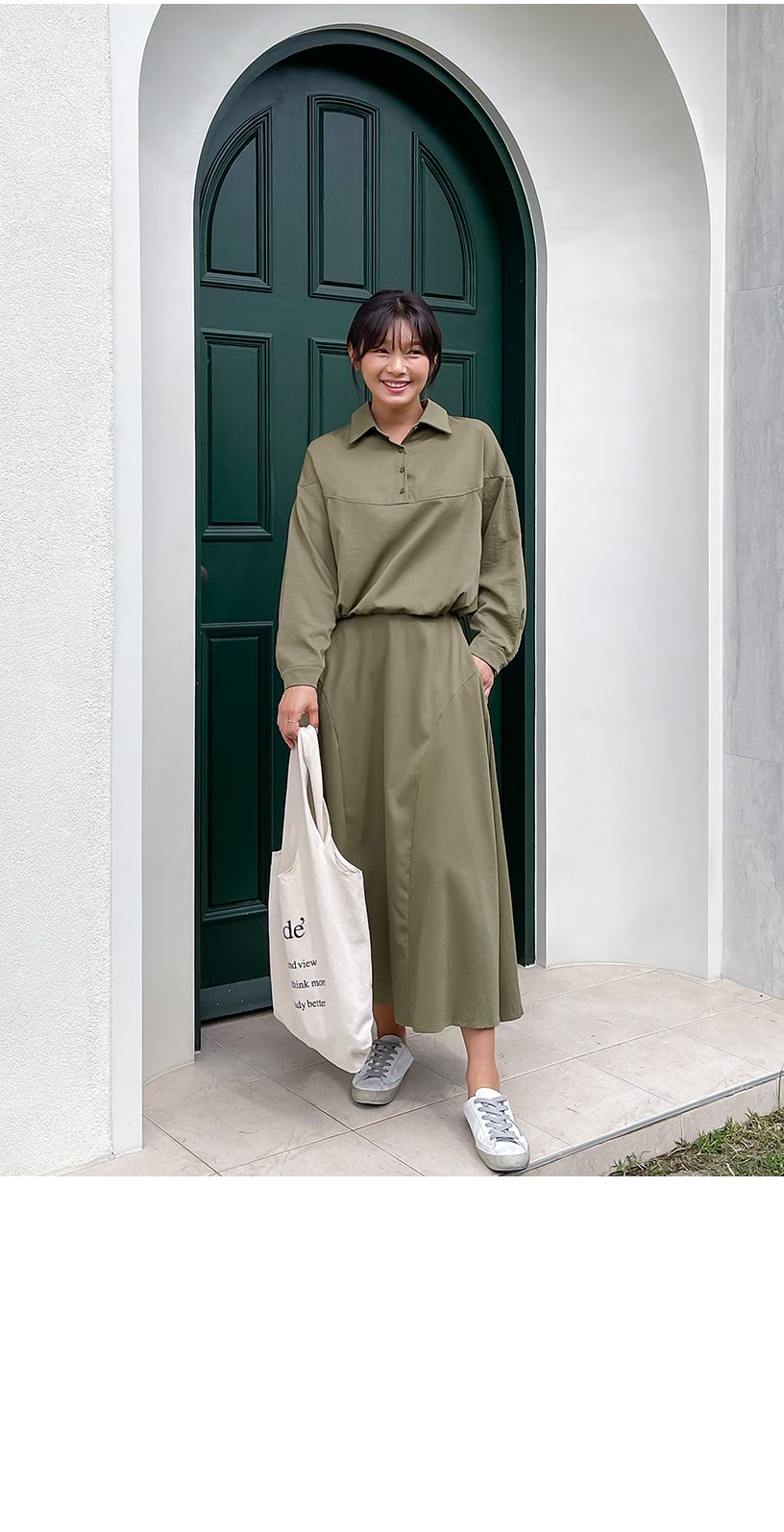 【C55657】韓國PSS 襯衫傘裙套裝-收腰長袖上衣+素面後腰鬆緊長裙