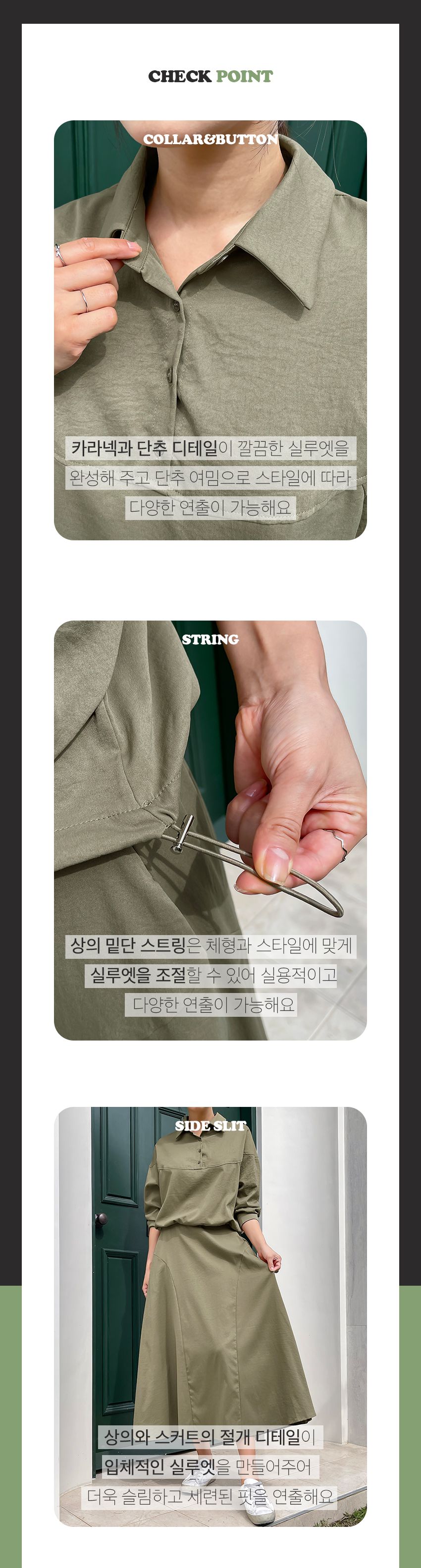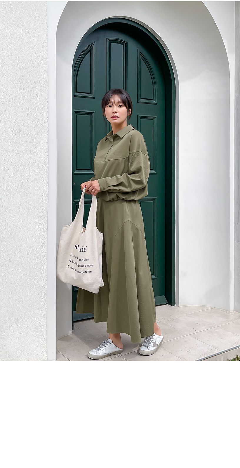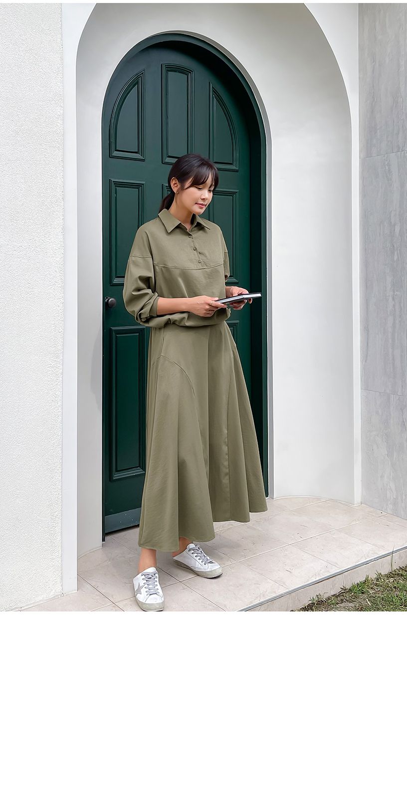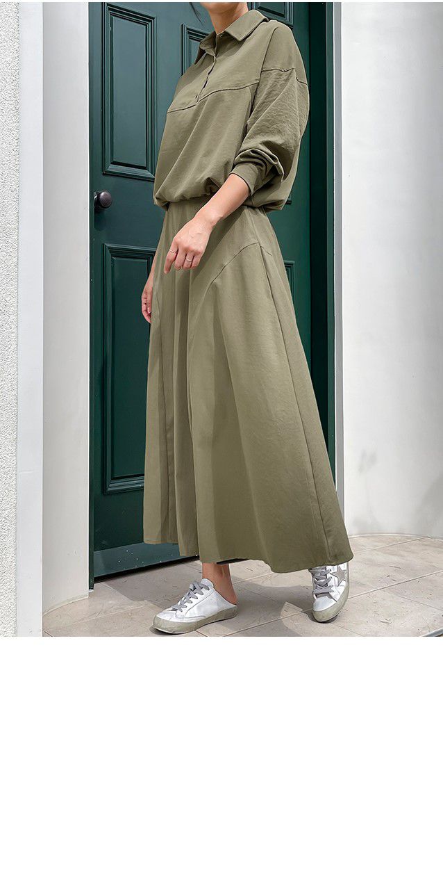 【C55657】韓國PSS 襯衫傘裙套裝-收腰長袖上衣+素面後腰鬆緊長裙