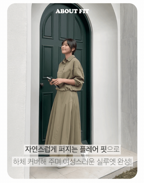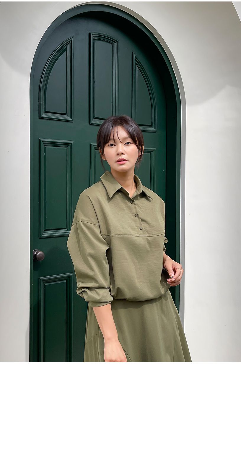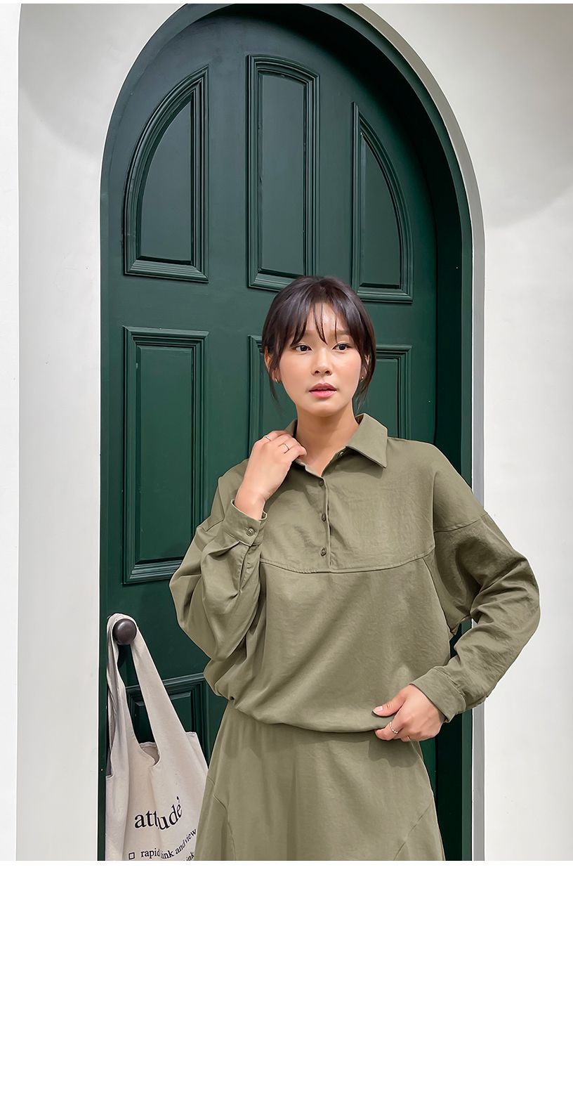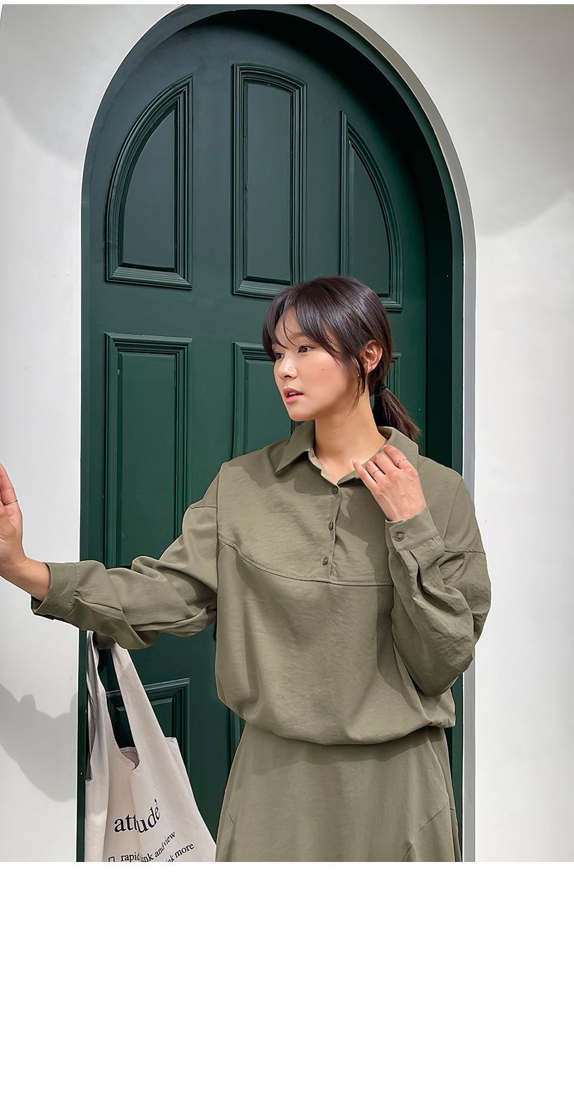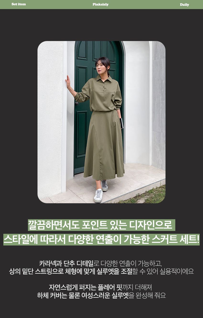 【C55657】韓國PSS 襯衫傘裙套裝-收腰長袖上衣+素面後腰鬆緊長裙