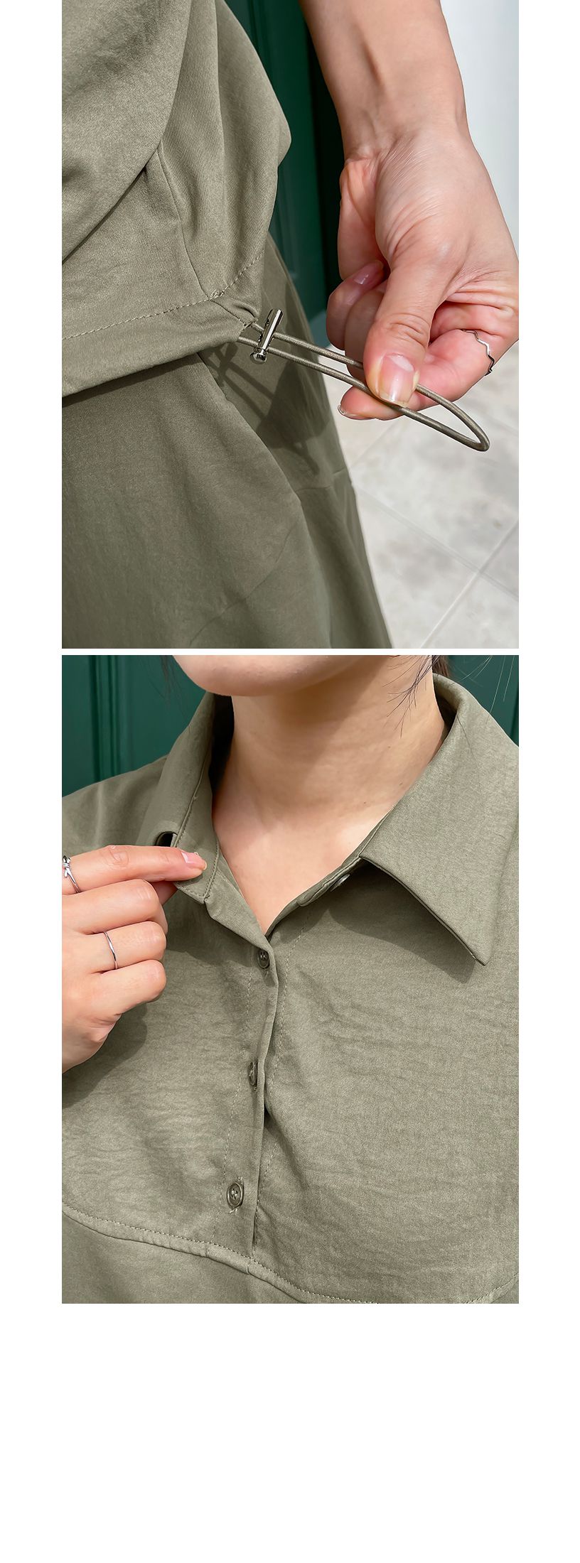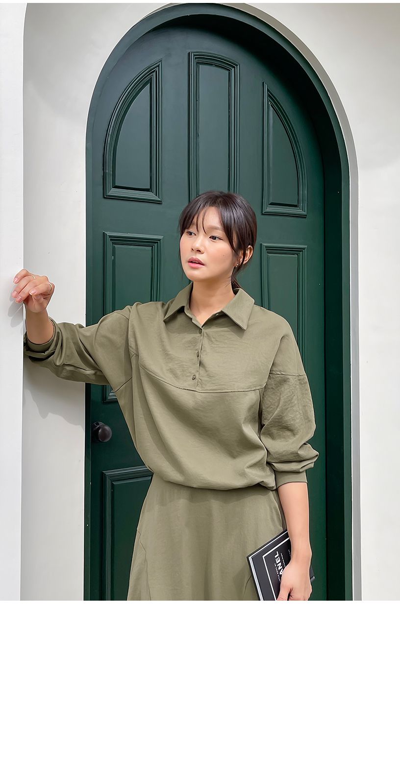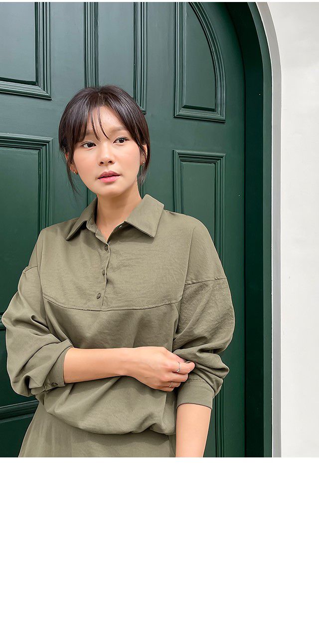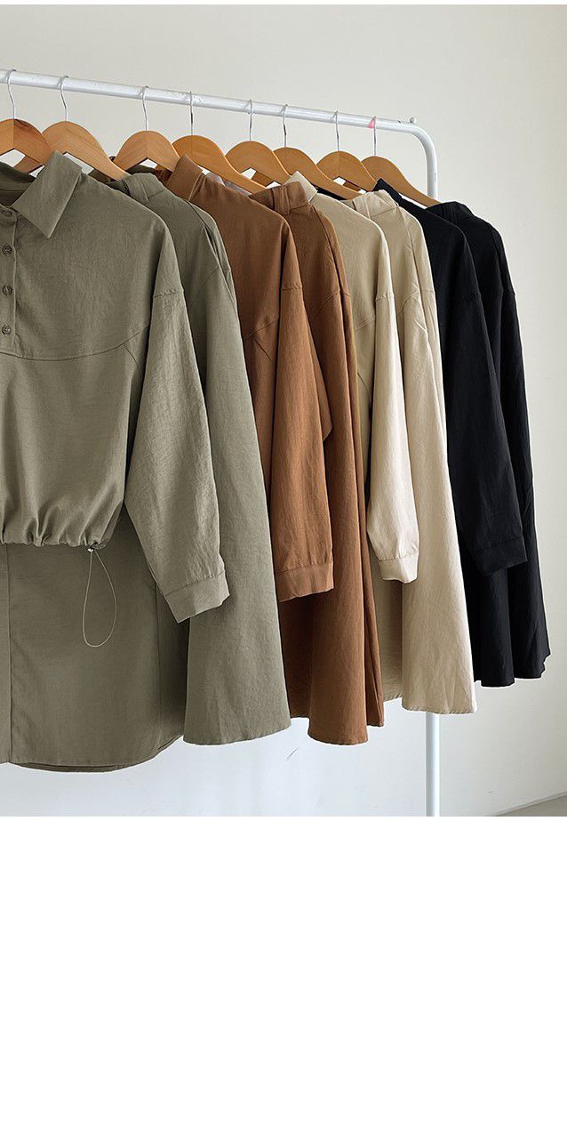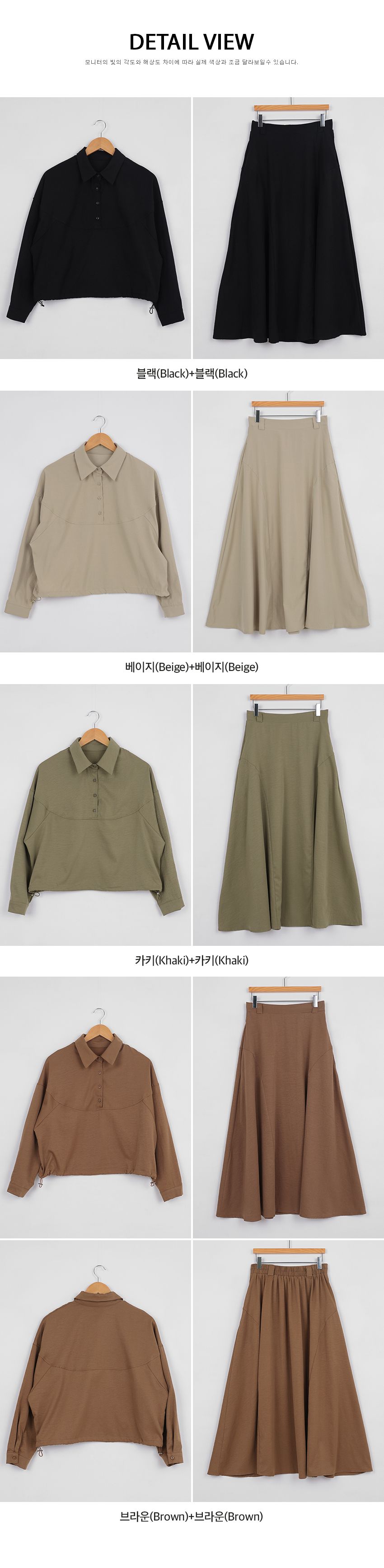 超值兩件組/半開襟襯衫/弧形切割/抽繩收腰/下襬抽繩/後腰鬆緊/皮帶環/無口袋/A字傘裙 - 休閒居家婚禮OL上班族簡約百搭素面兩件式套裝襯衫套裝襯衫傘裙套裝收腰長袖上衣後腰鬆緊長裙棕色米色黑色卡其綠色