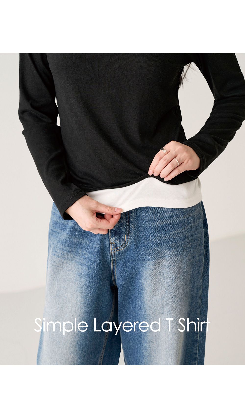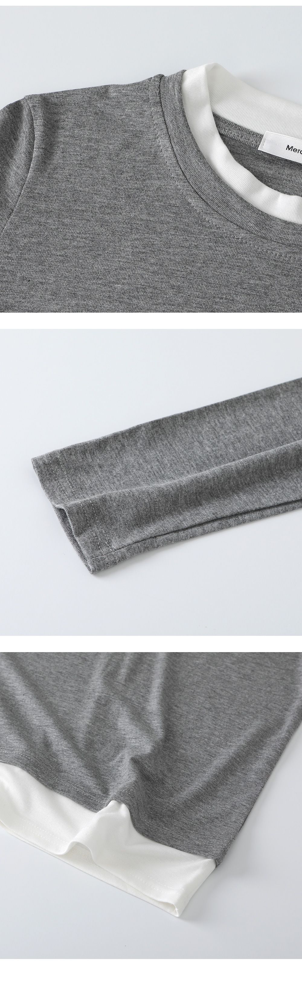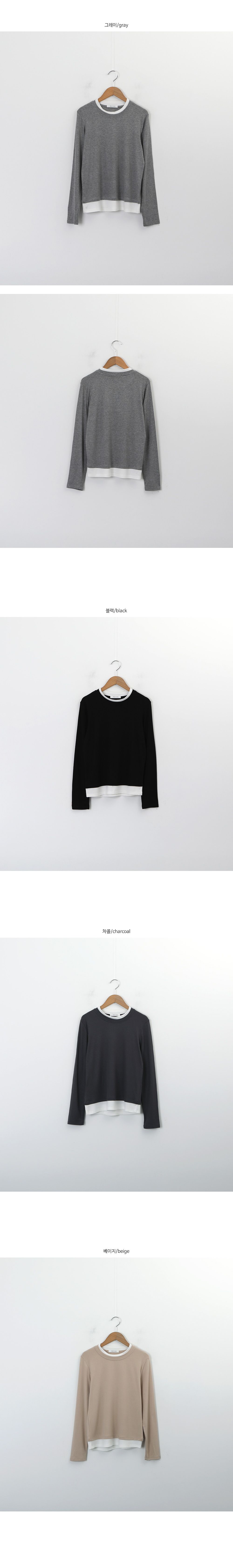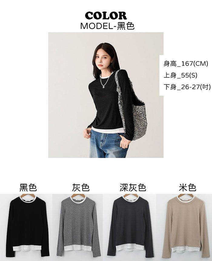 【C55659】韓國PPI 小立領素面T恤-假兩件拼接滾邊圓領輕薄長袖上衣★★