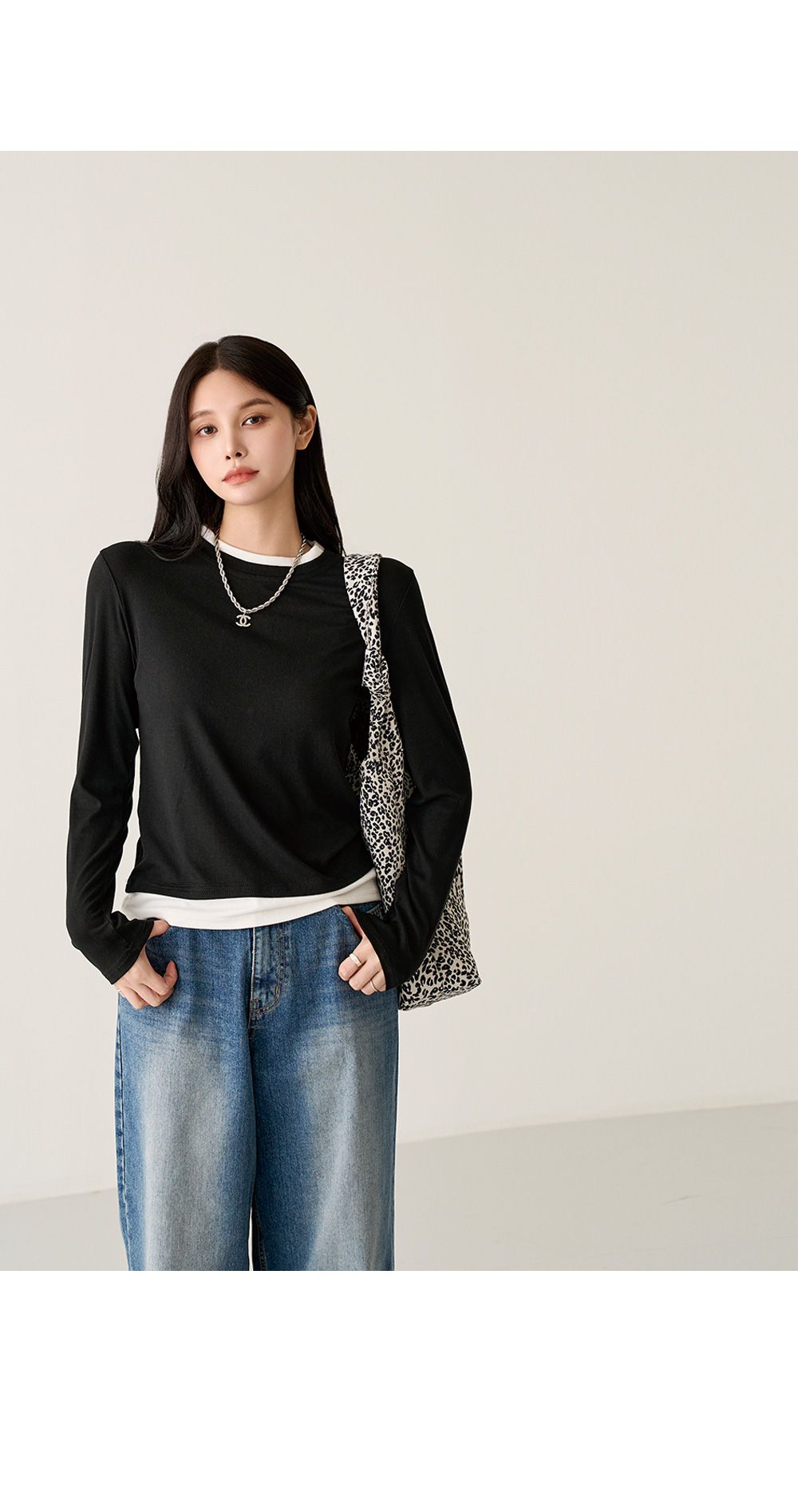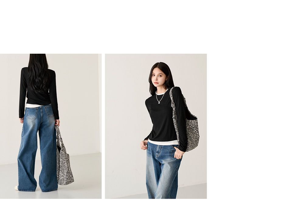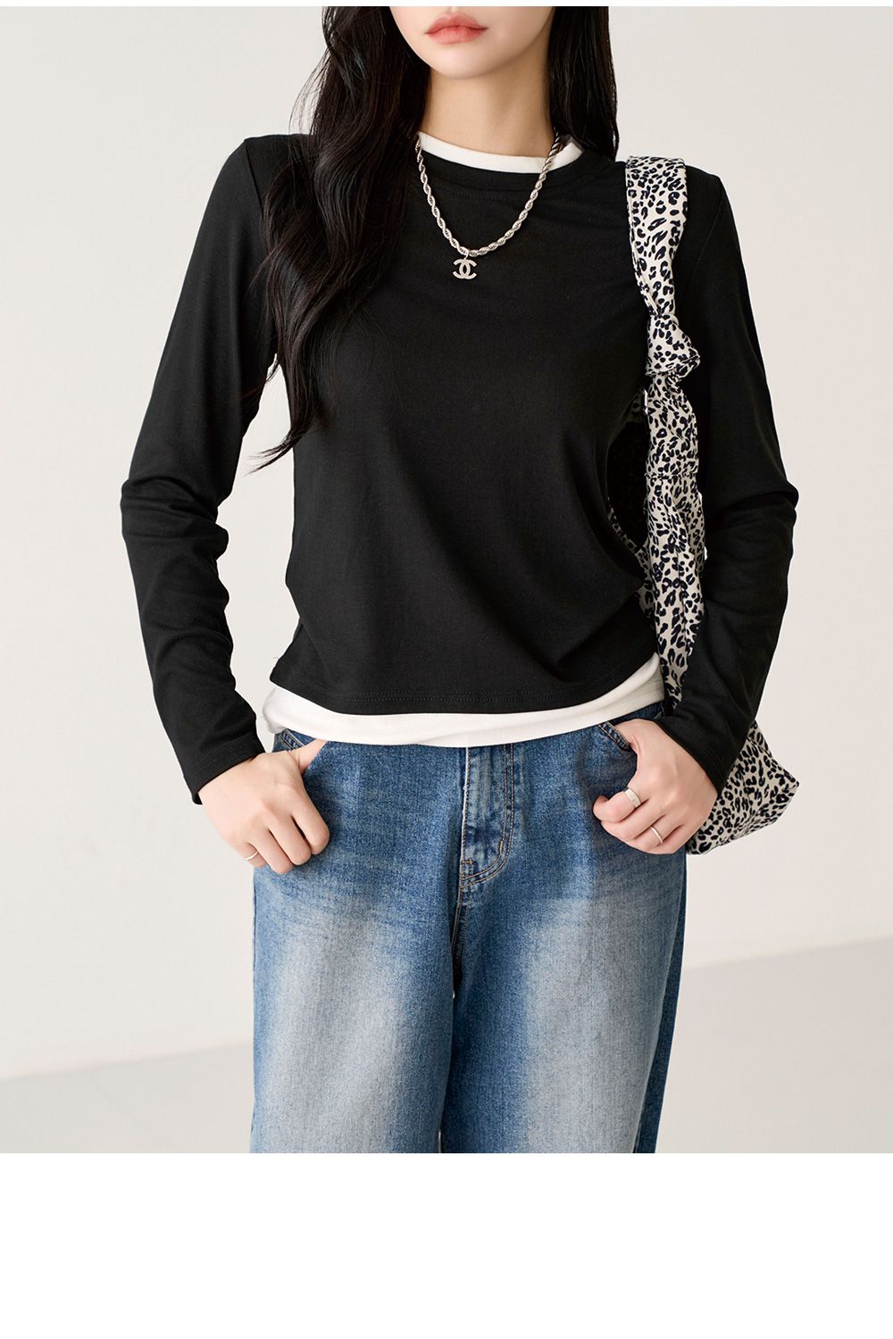 【C55659】韓國PPI 小立領素面T恤-假兩件拼接滾邊圓領輕薄長袖上衣★★