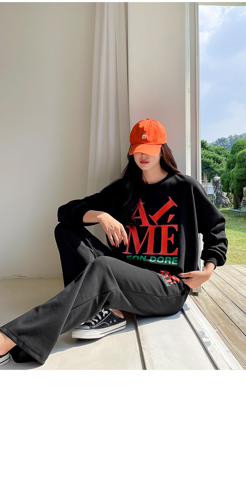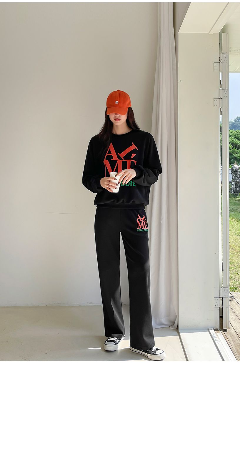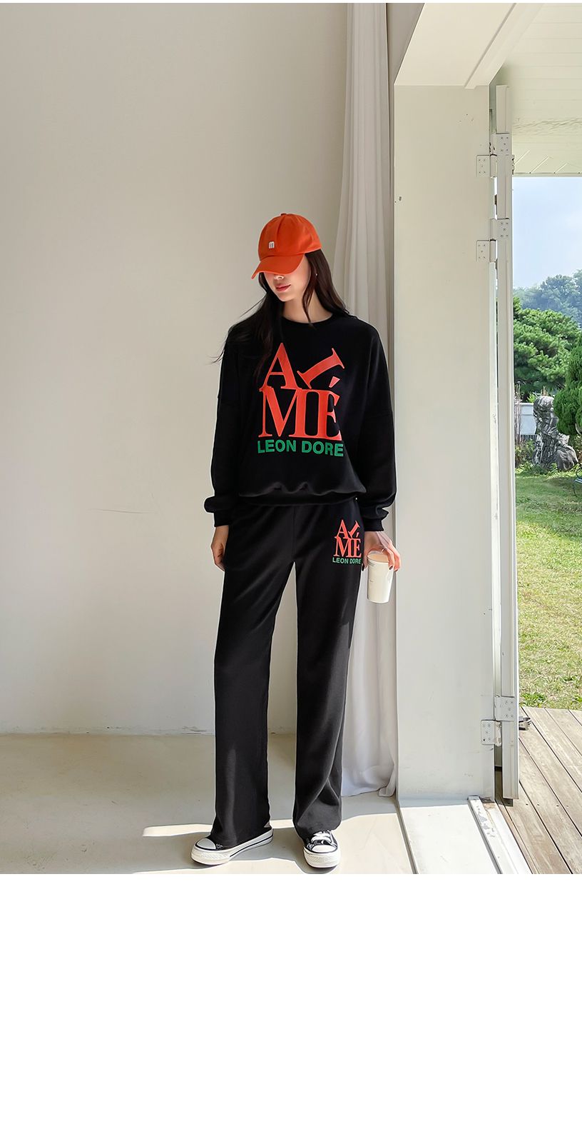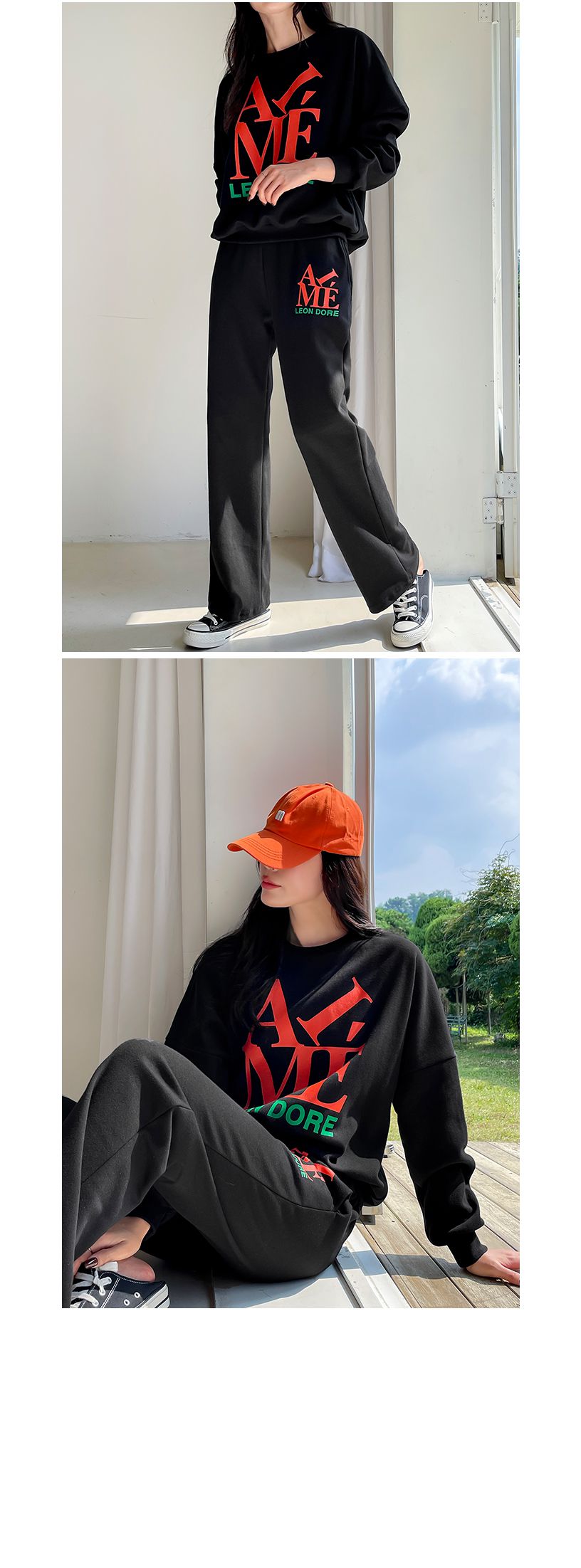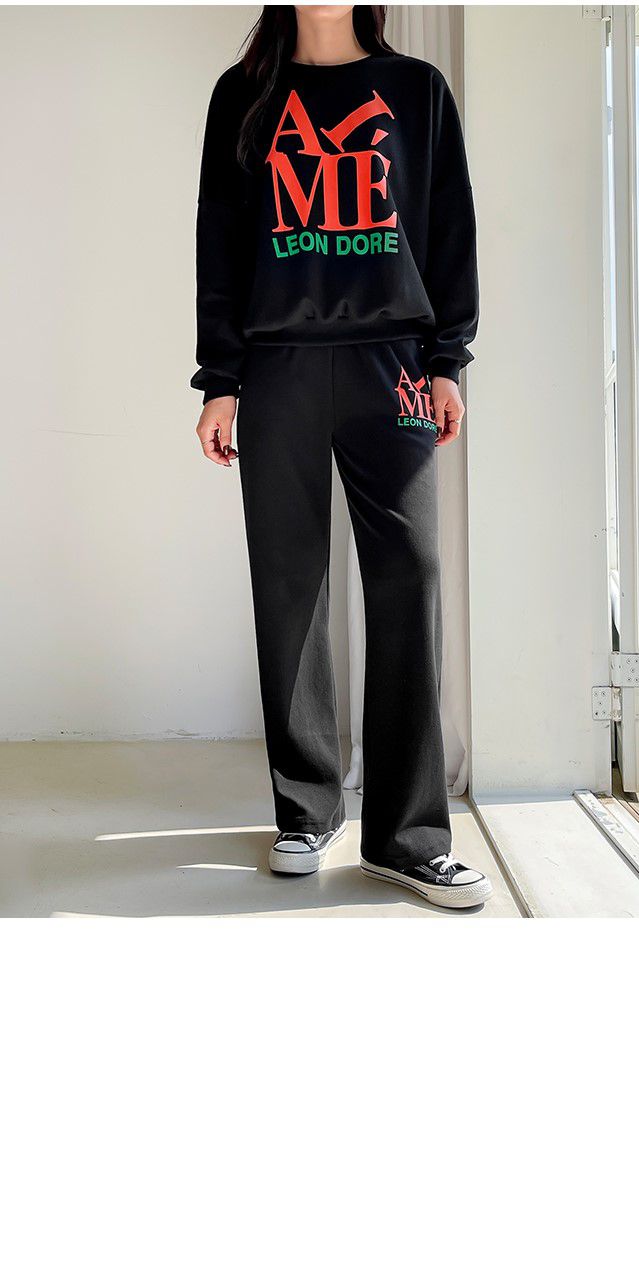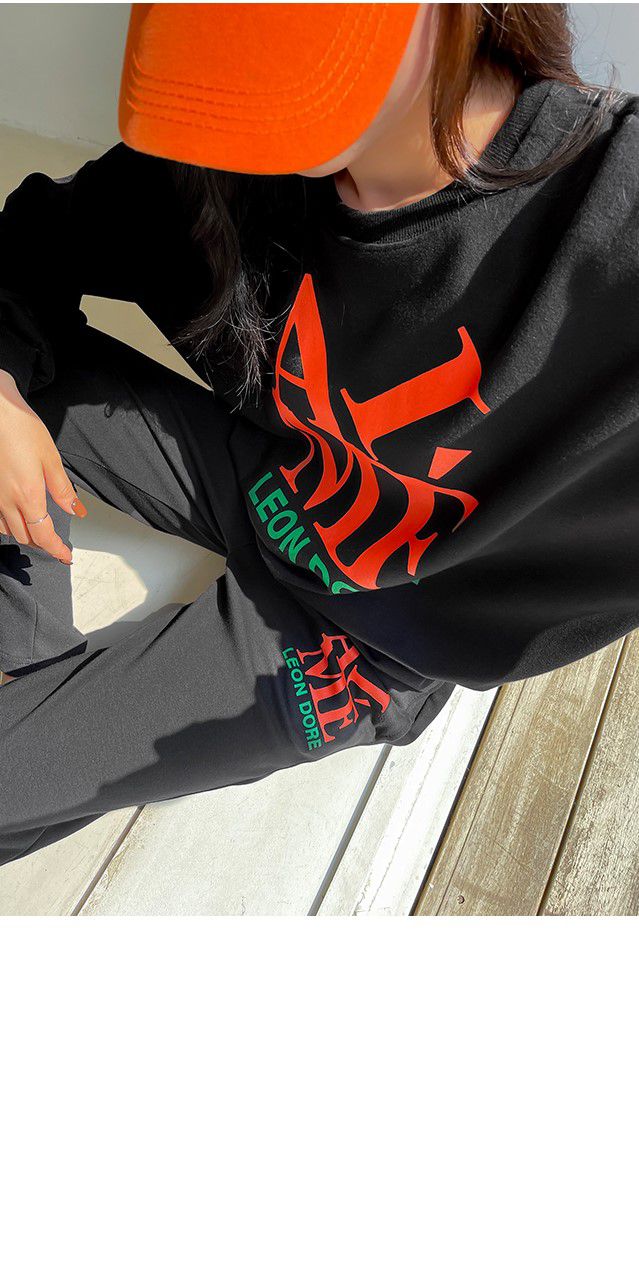 【C55660】韓國PSS 螢光字母套裝-圓領英文長袖上衣+鬆緊腰直筒長褲★★