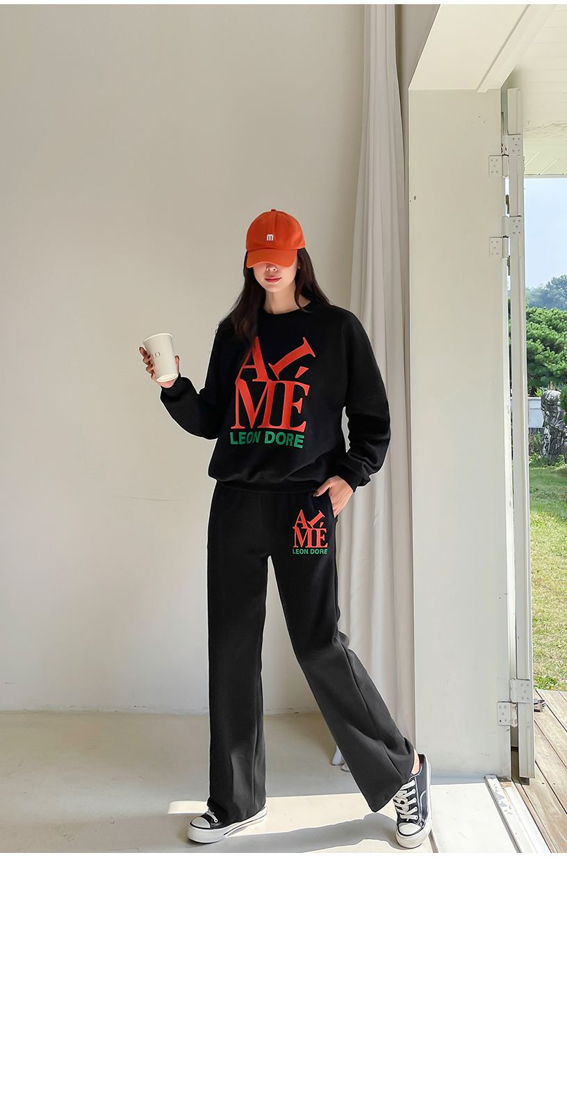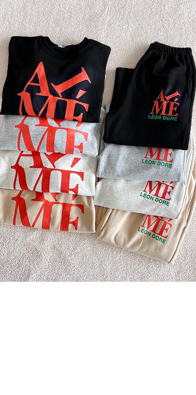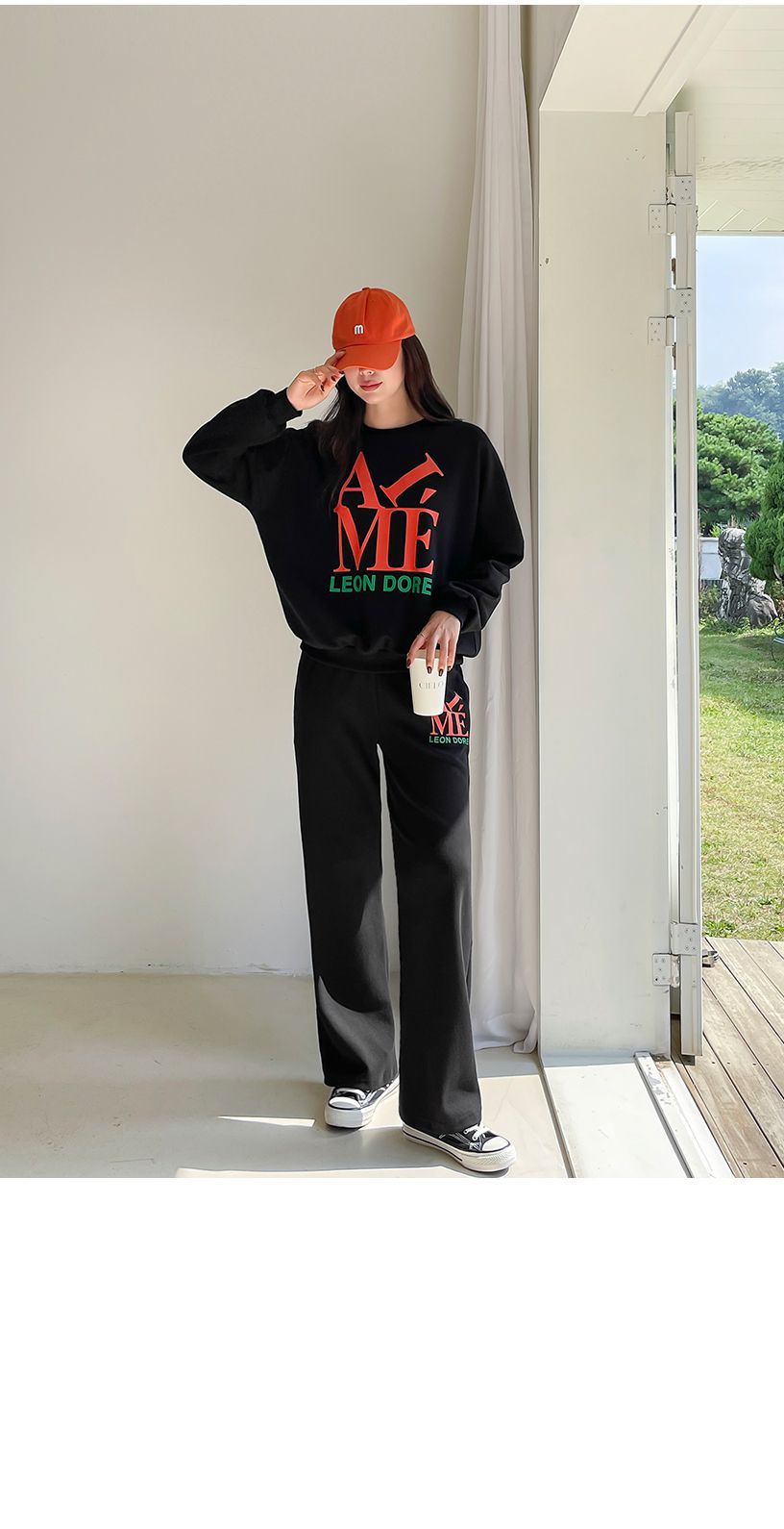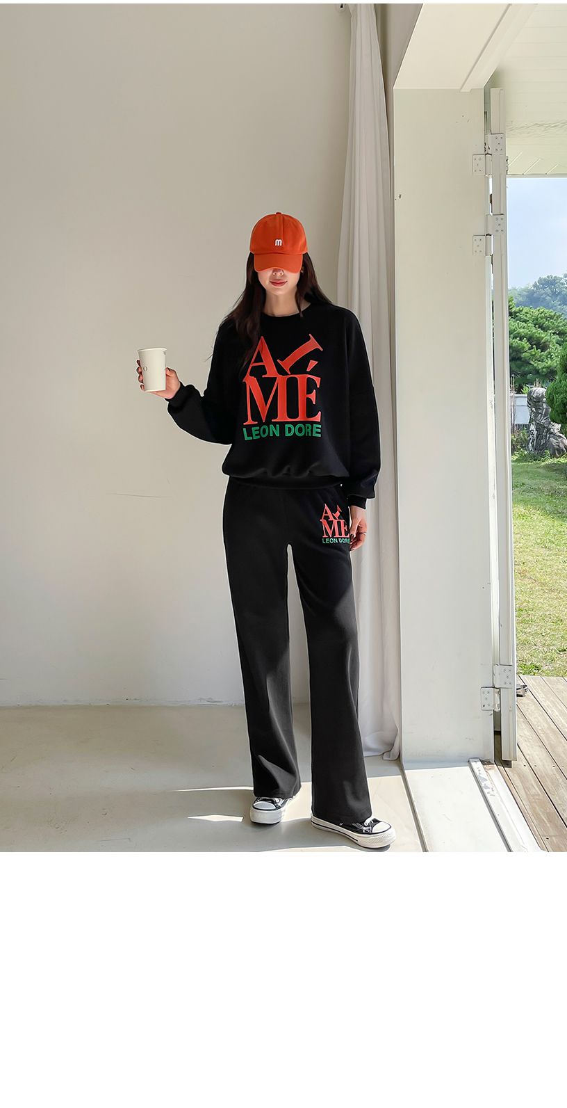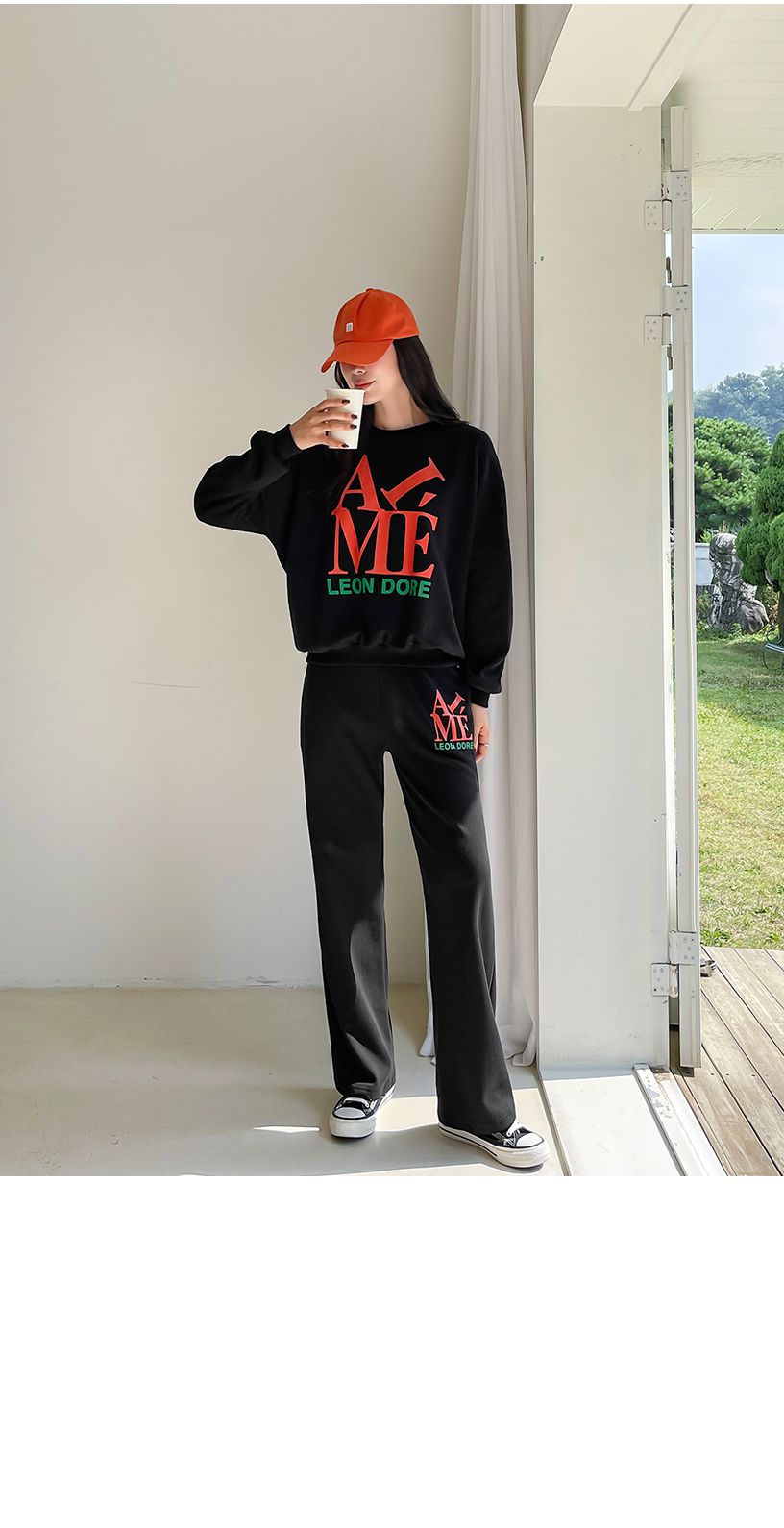 【C55660】韓國PSS 螢光字母套裝-圓領英文長袖上衣+鬆緊腰直筒長褲★★
