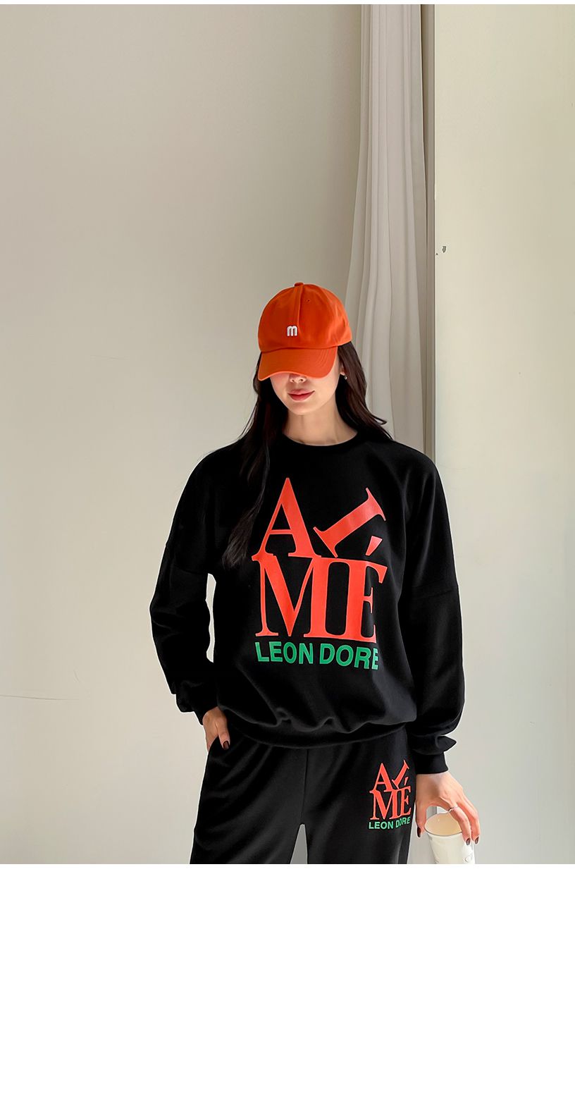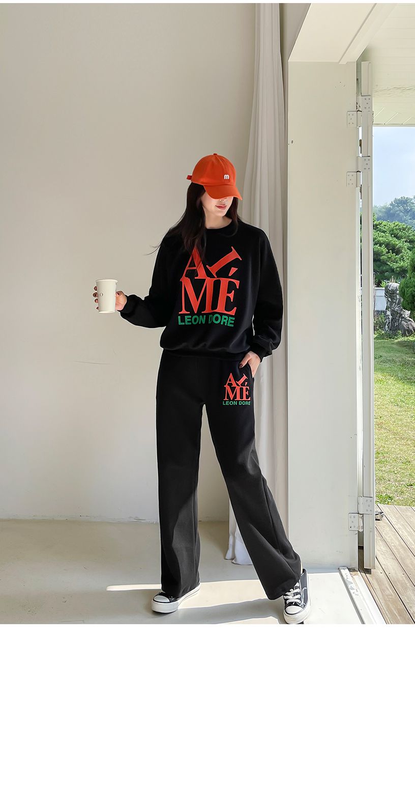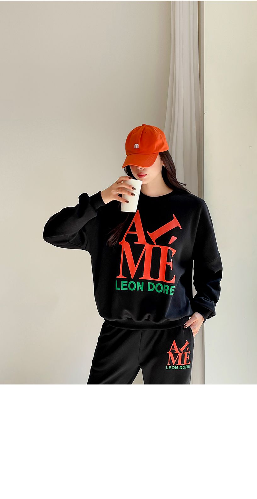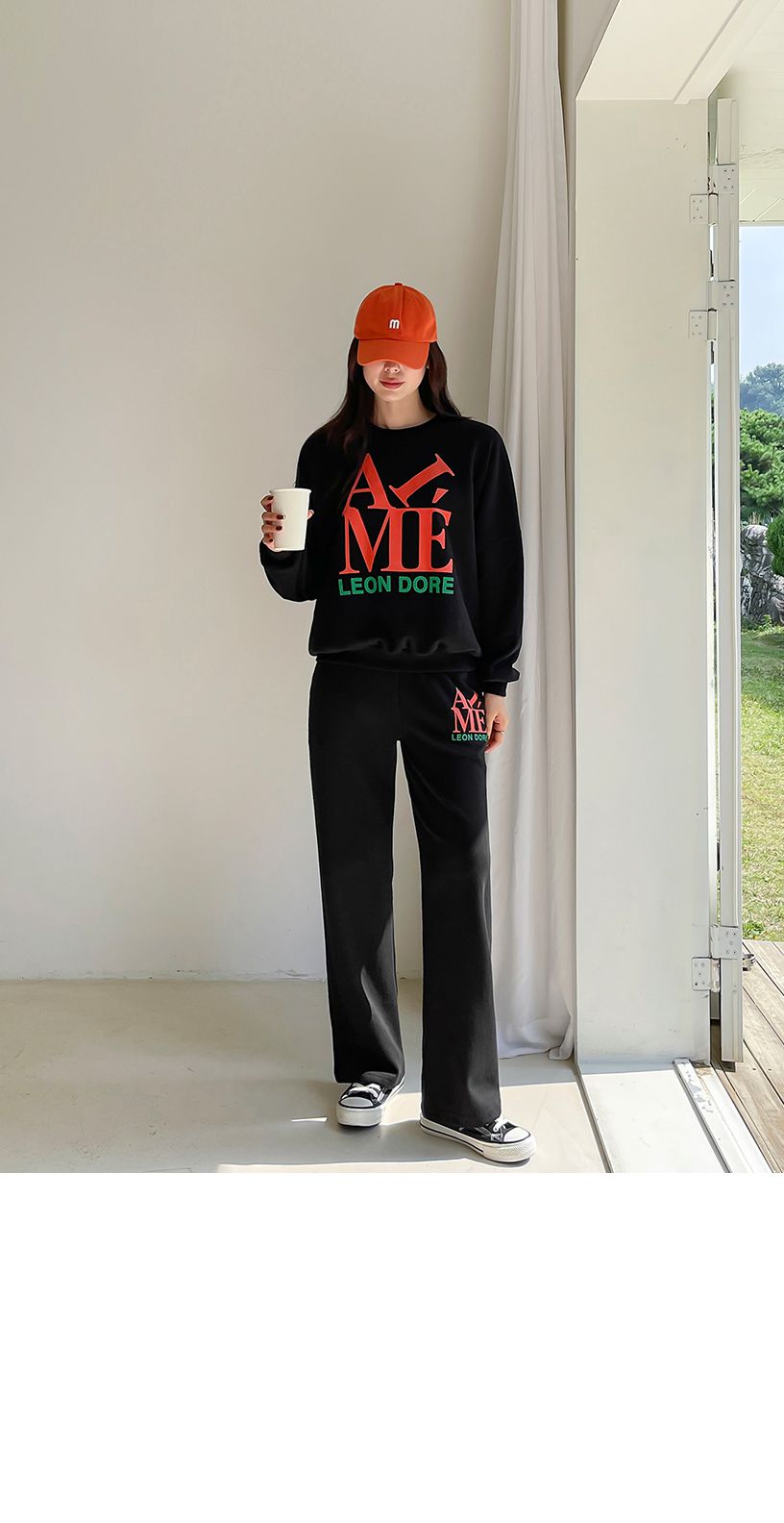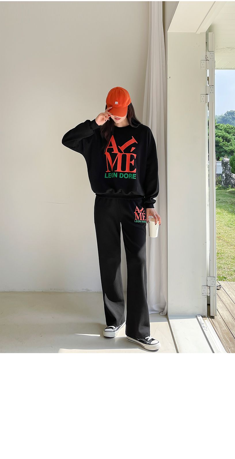 【C55660】韓國PSS 螢光字母套裝-圓領英文長袖上衣+鬆緊腰直筒長褲★★