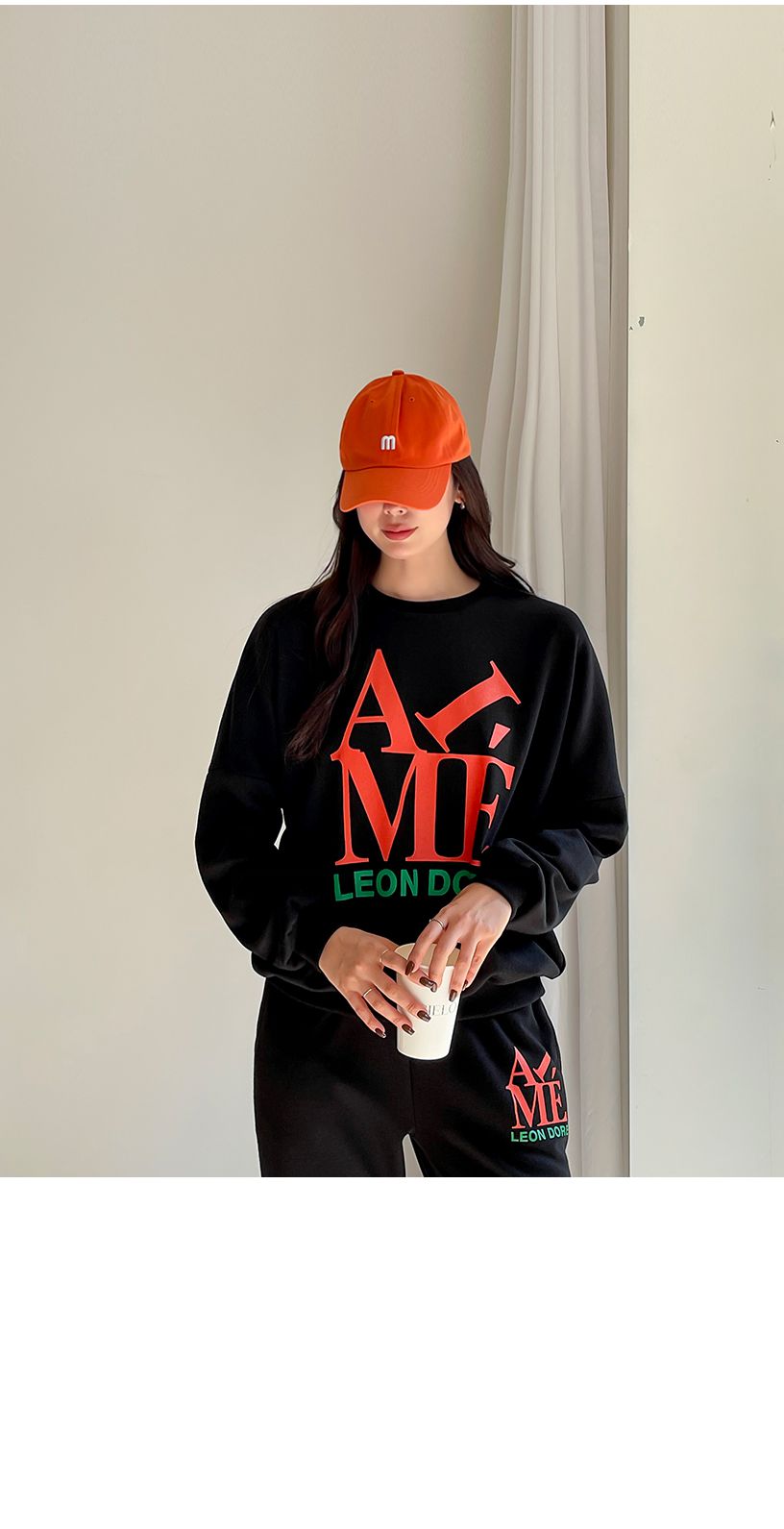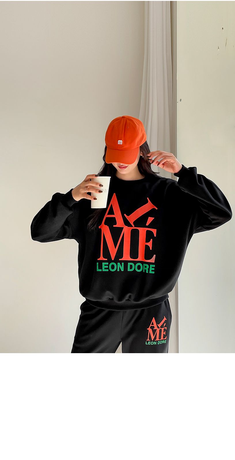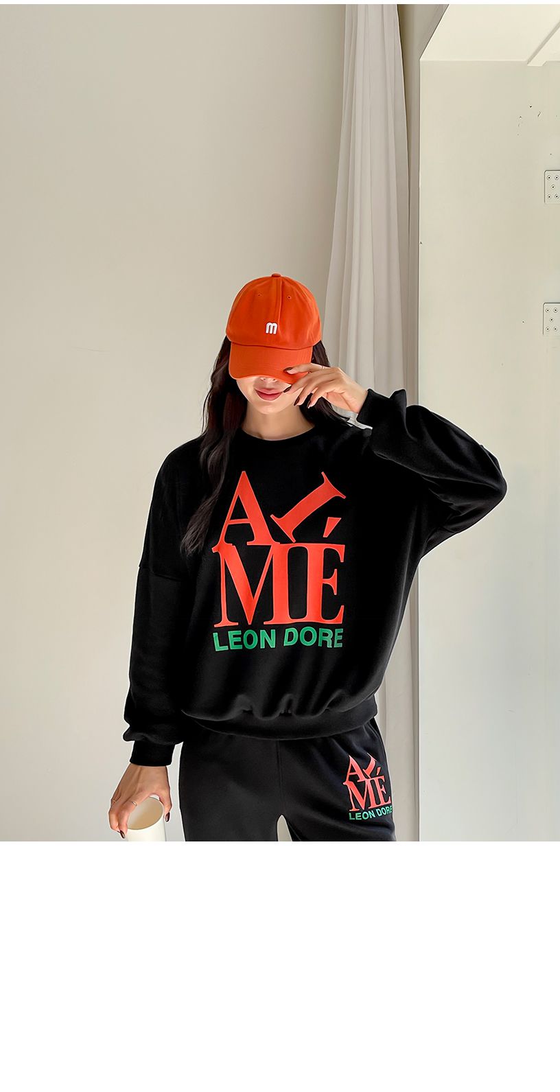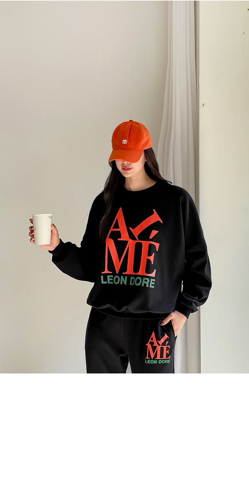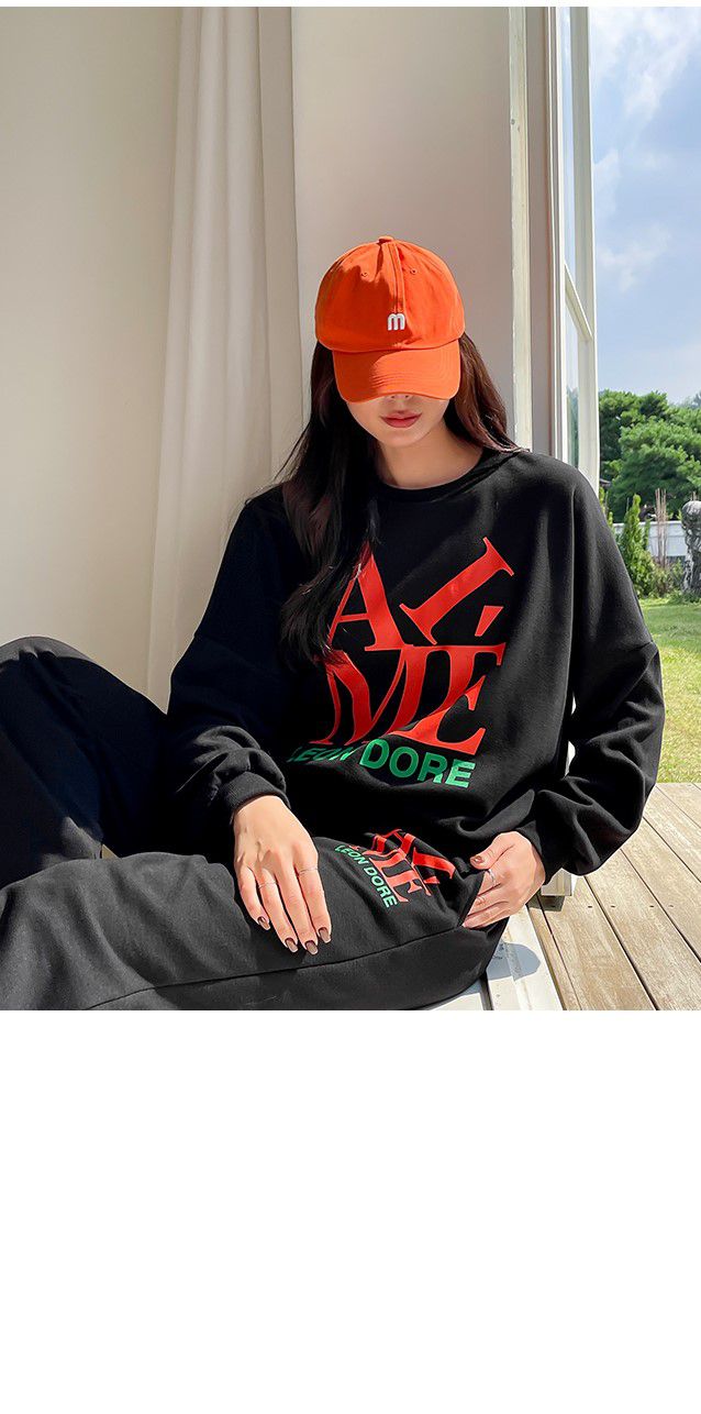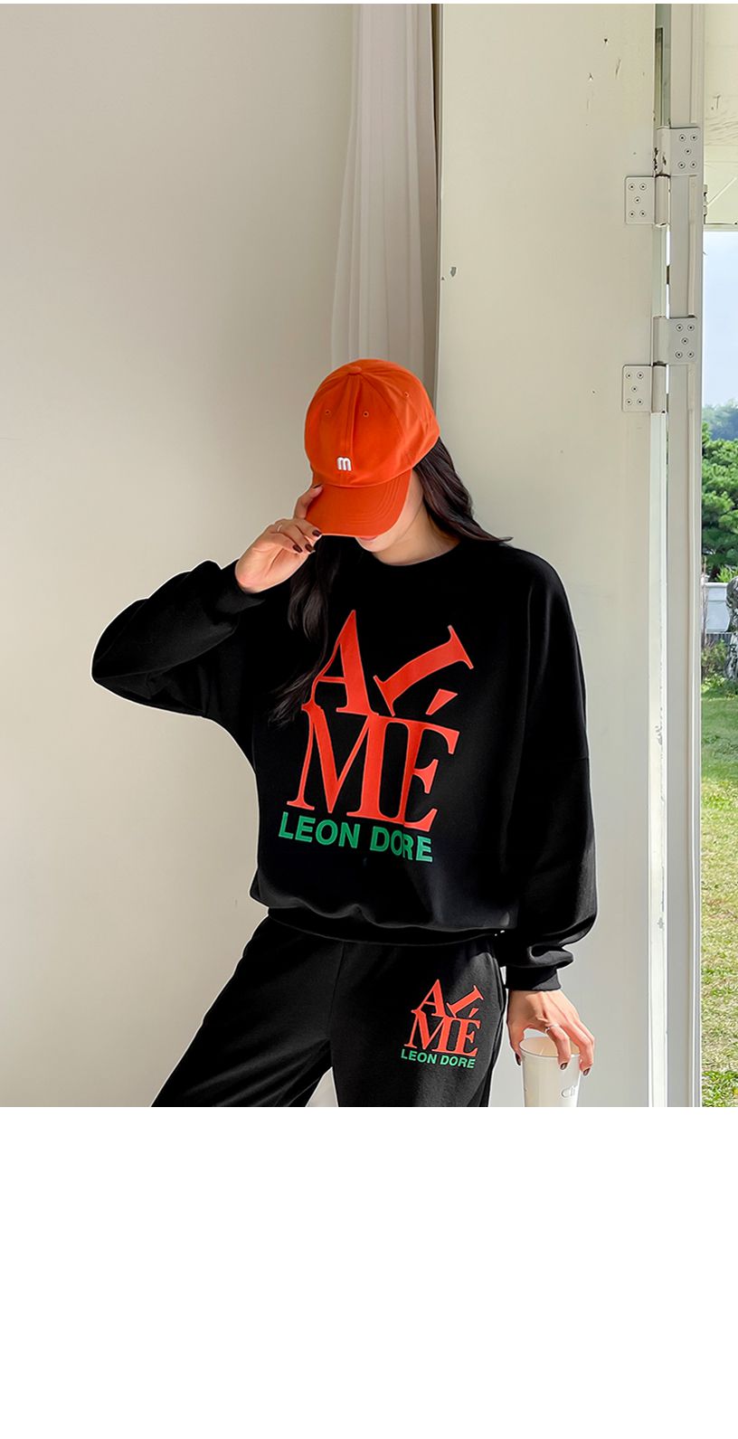 【C55660】韓國PSS 螢光字母套裝-圓領英文長袖上衣+鬆緊腰直筒長褲★★