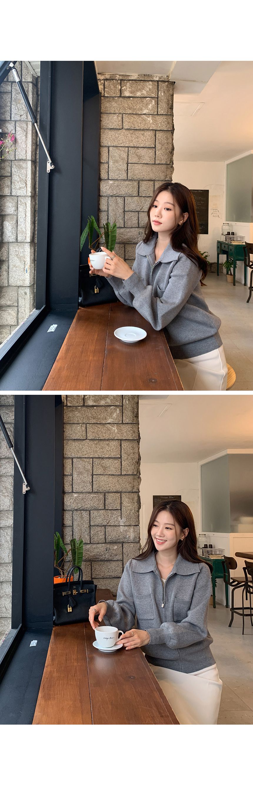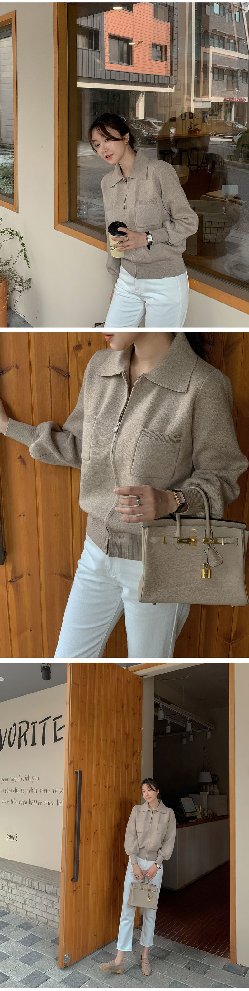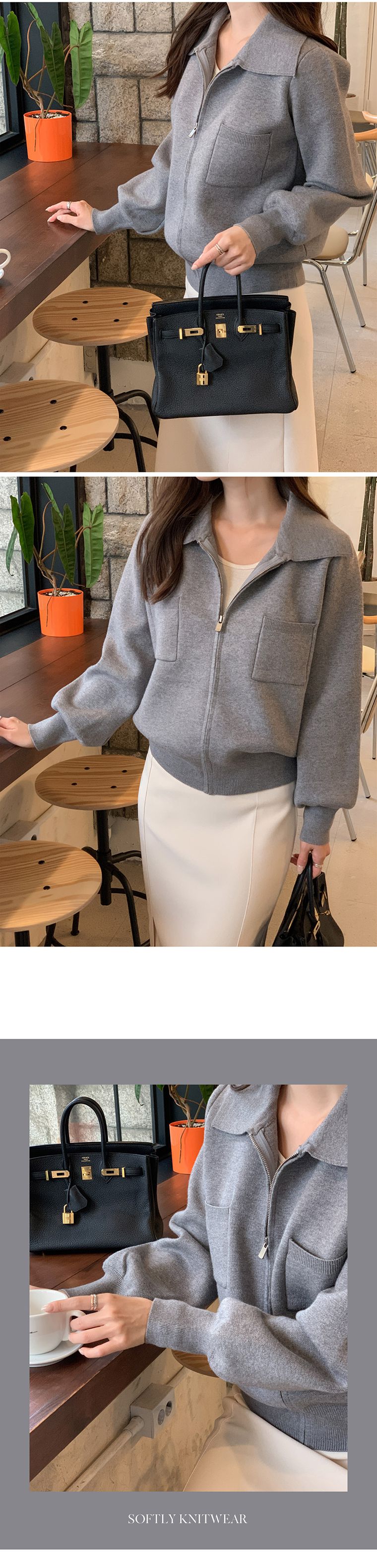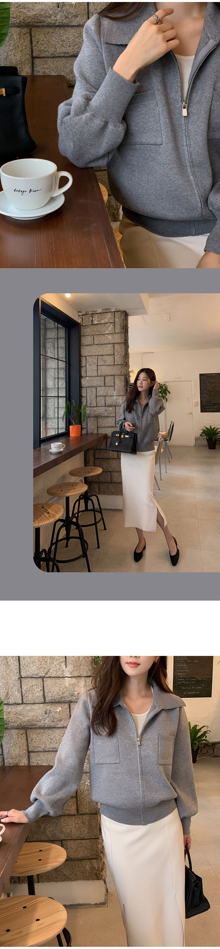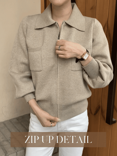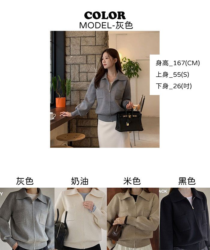 【C55662】韓國DDR 厚實針織外套-翻領素面雙口袋長袖拉鍊外套