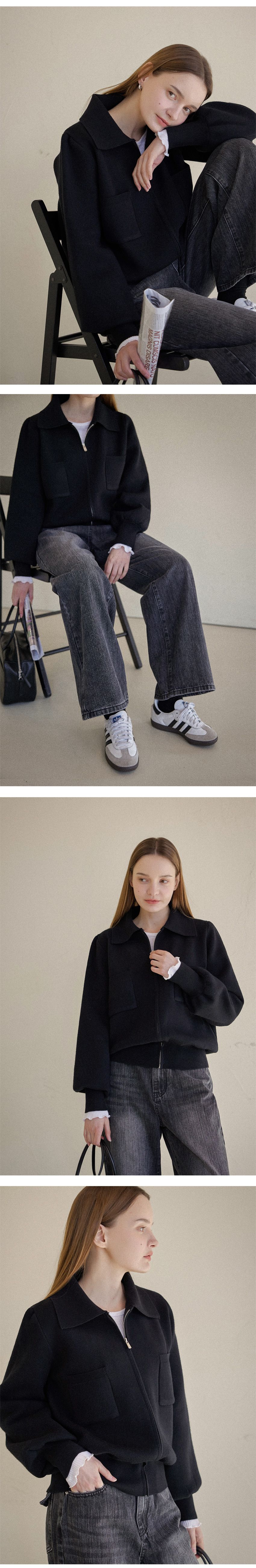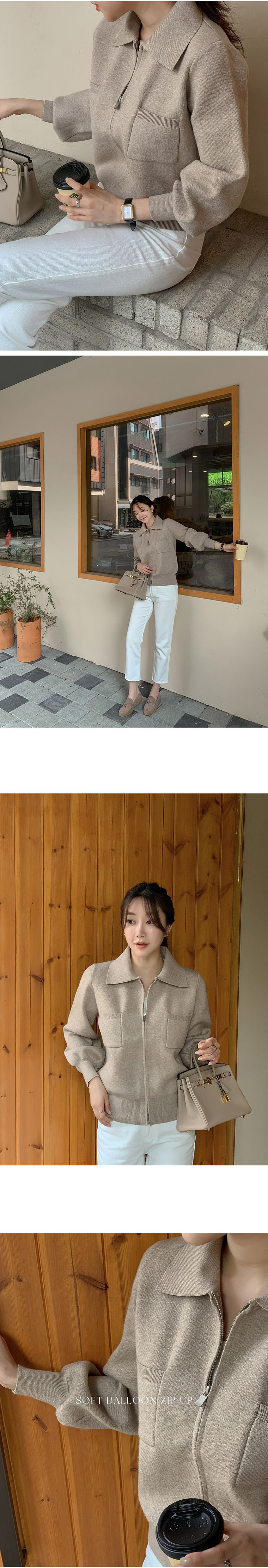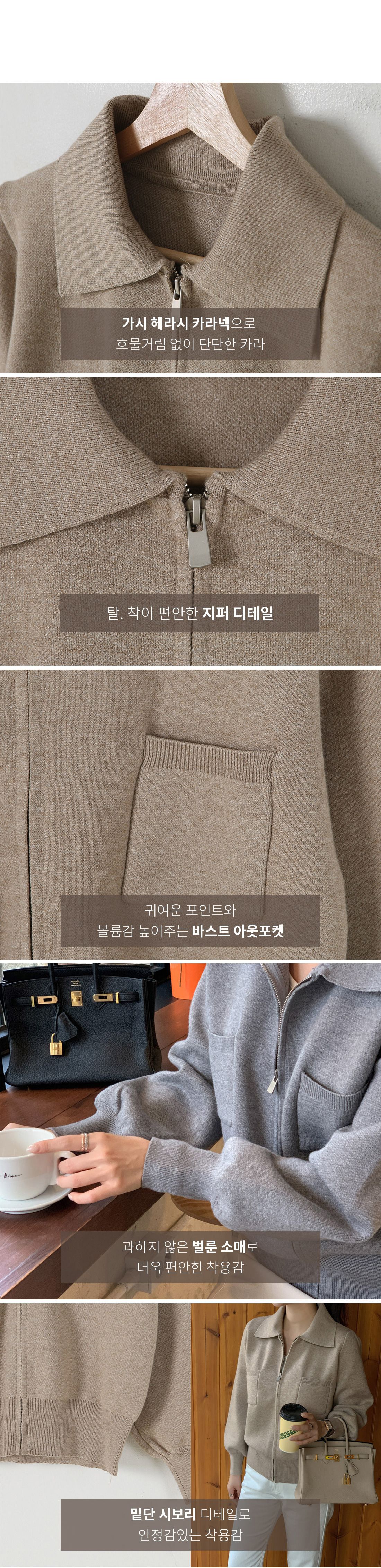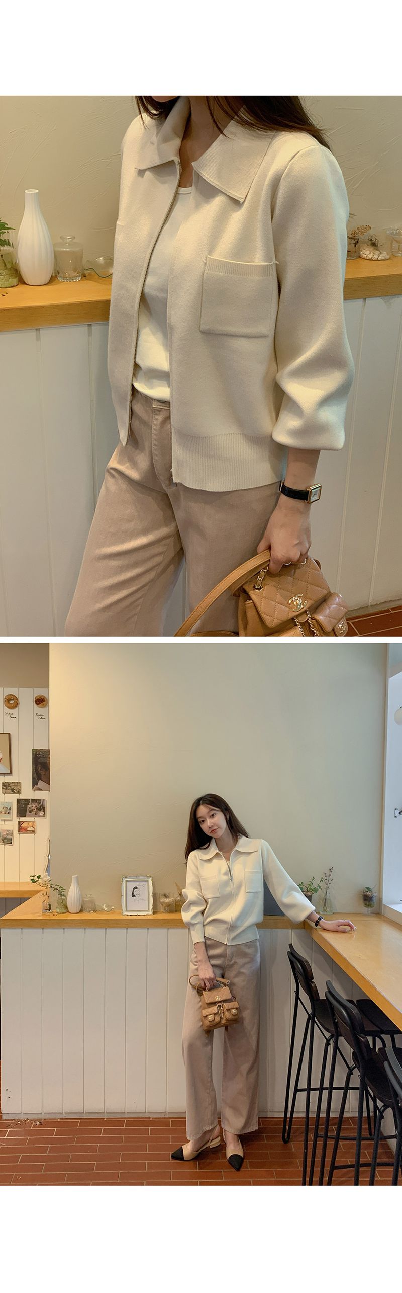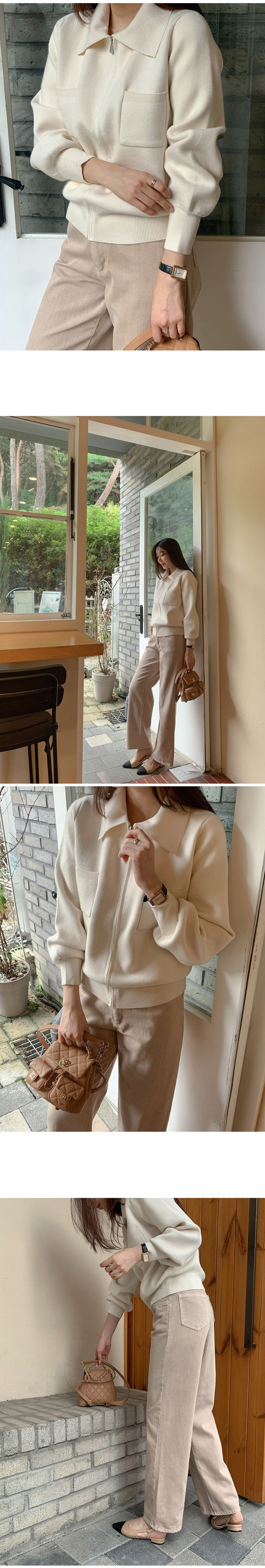 【C55662】韓國DDR 厚實針織外套-翻領素面雙口袋長袖拉鍊外套