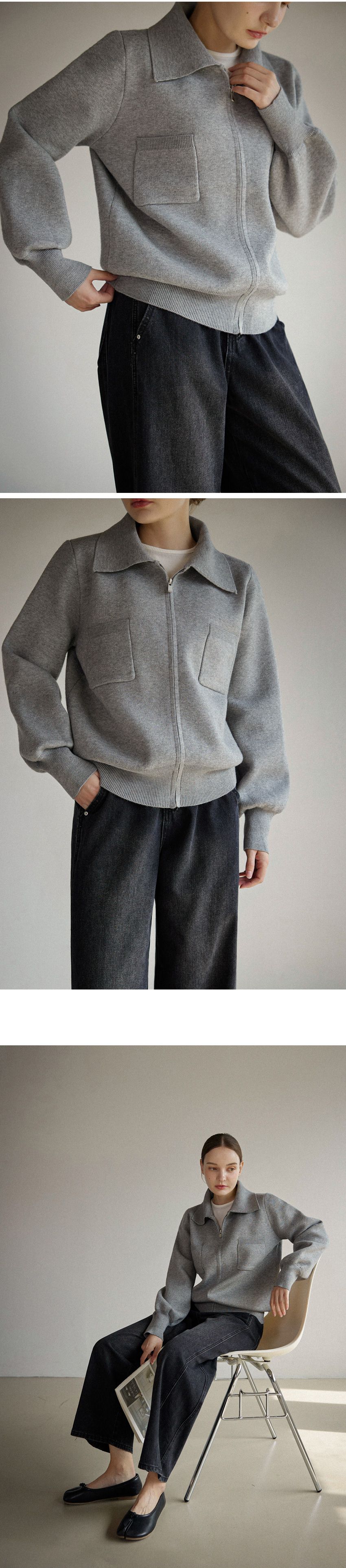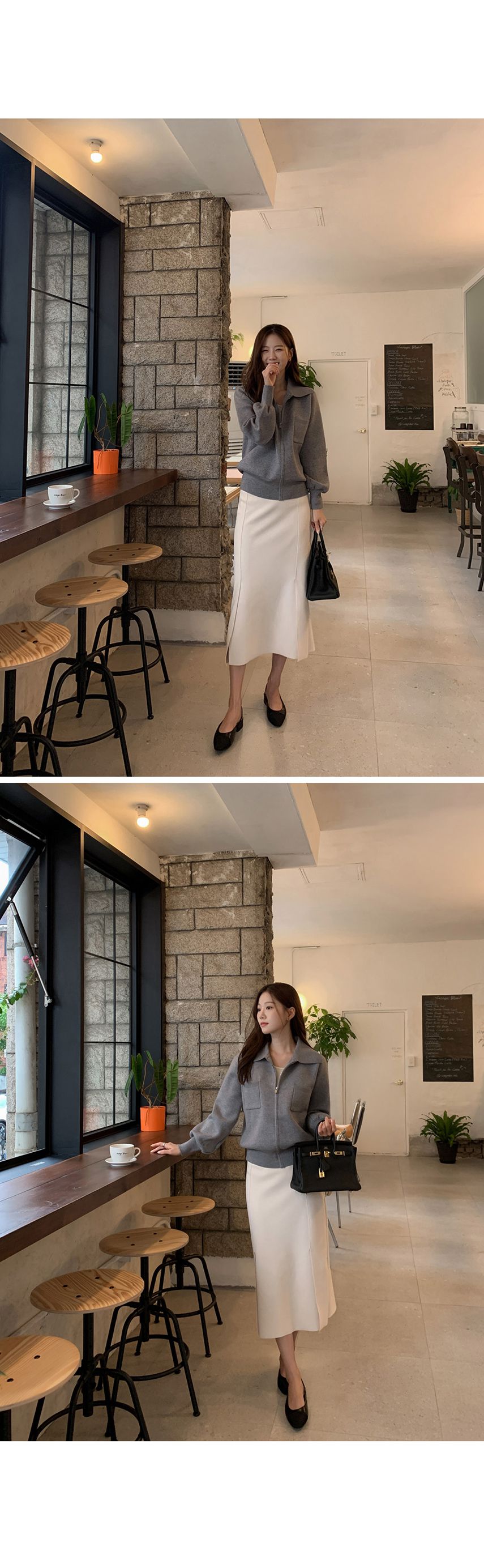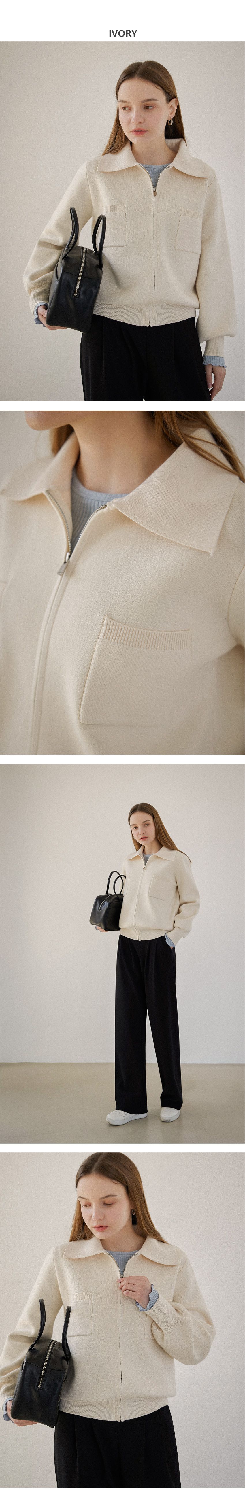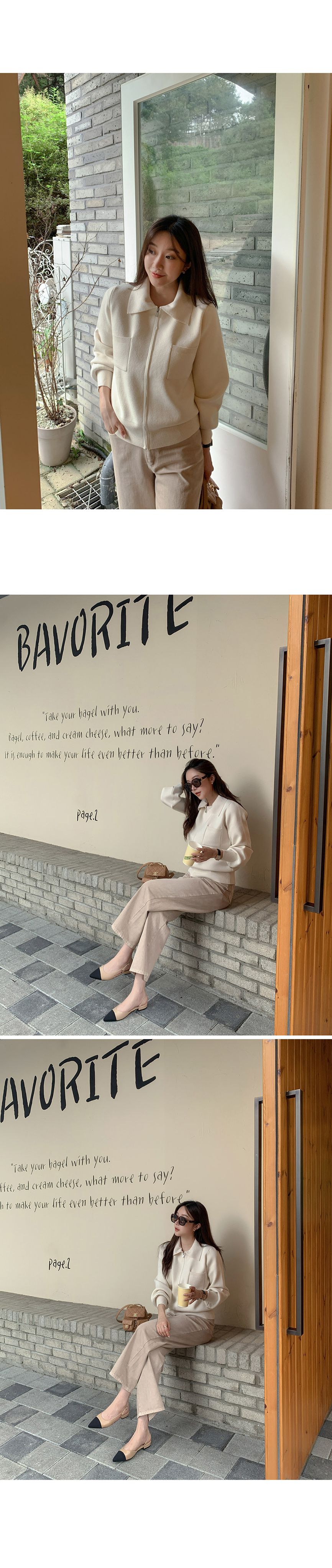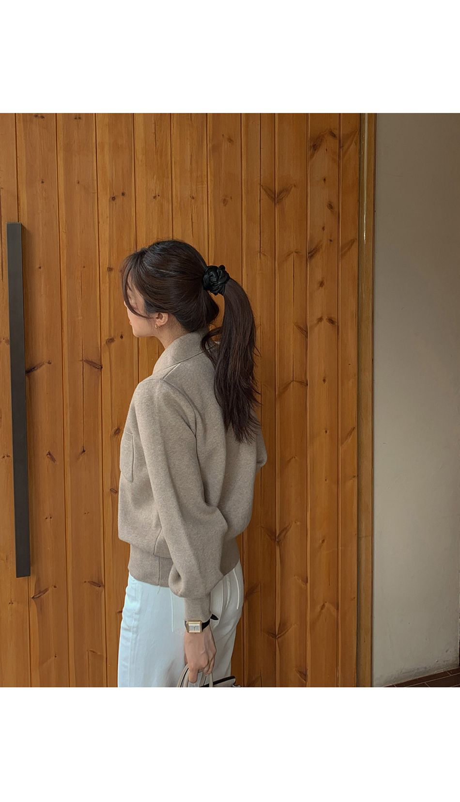 【C55662】韓國DDR 厚實針織外套-翻領素面雙口袋長袖拉鍊外套
