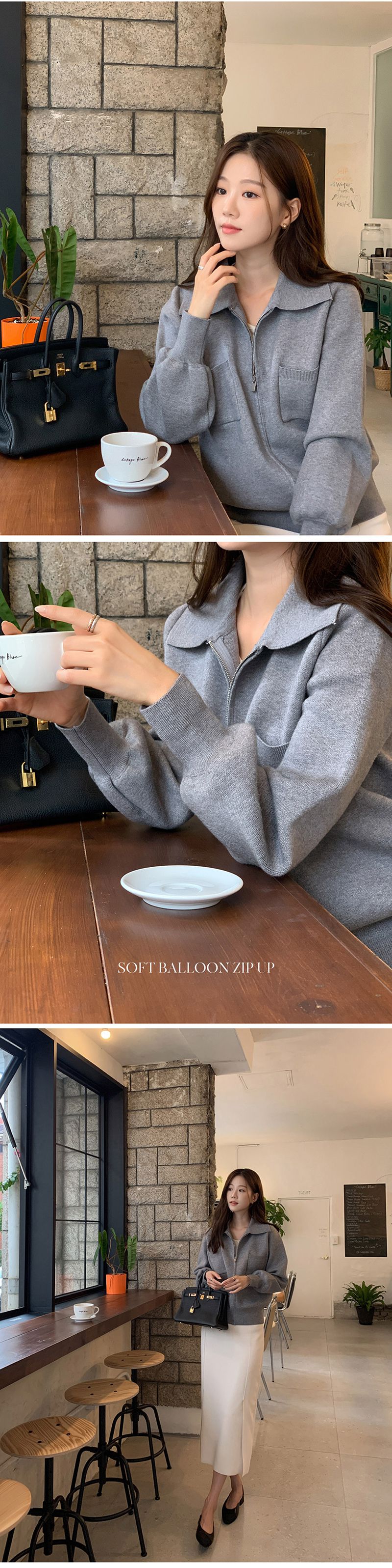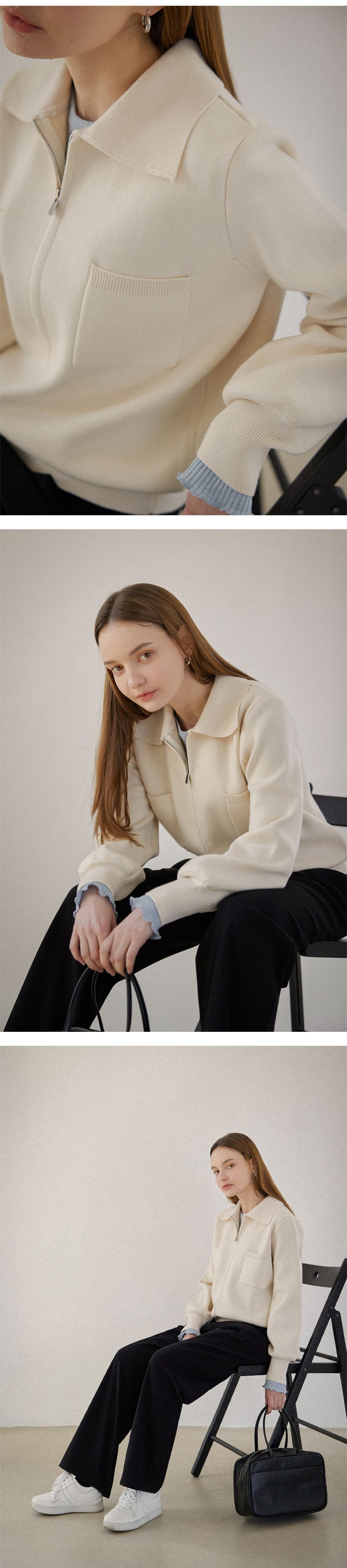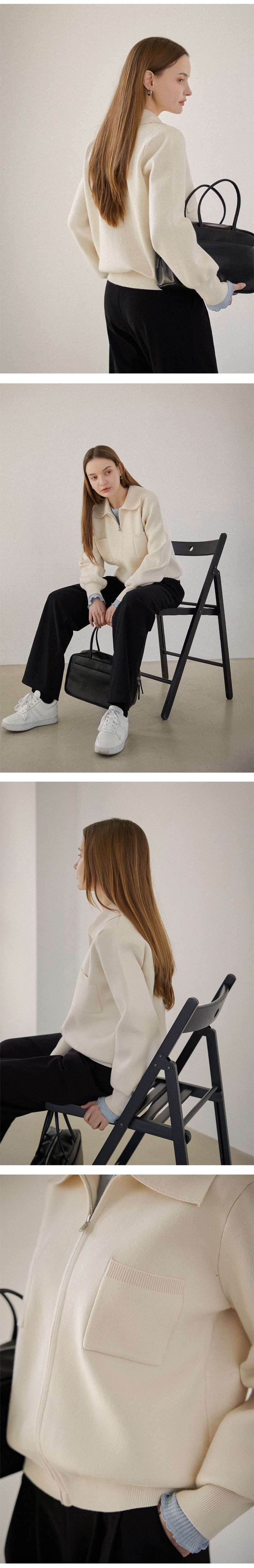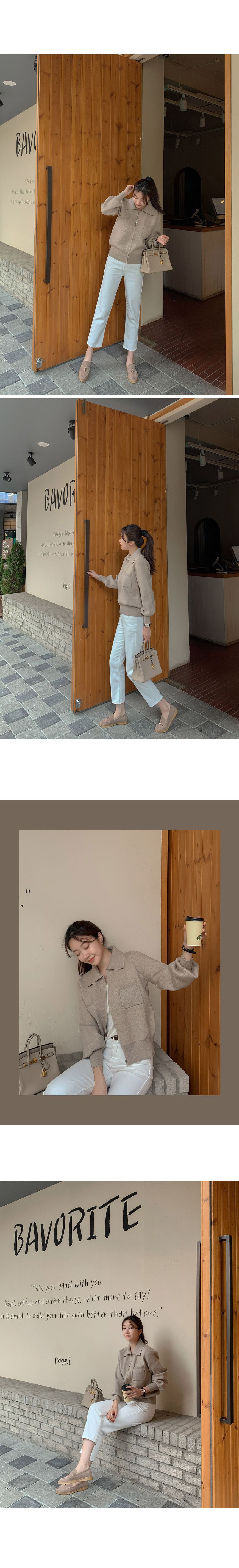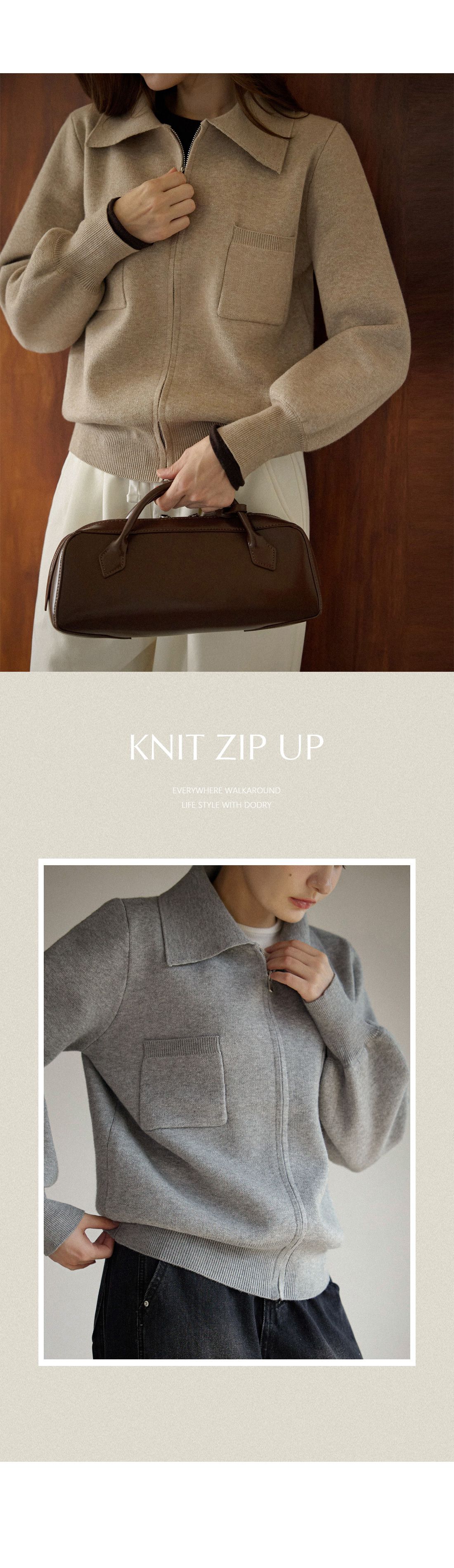 【C55662】韓國DDR 厚實針織外套-翻領素面雙口袋長袖拉鍊外套