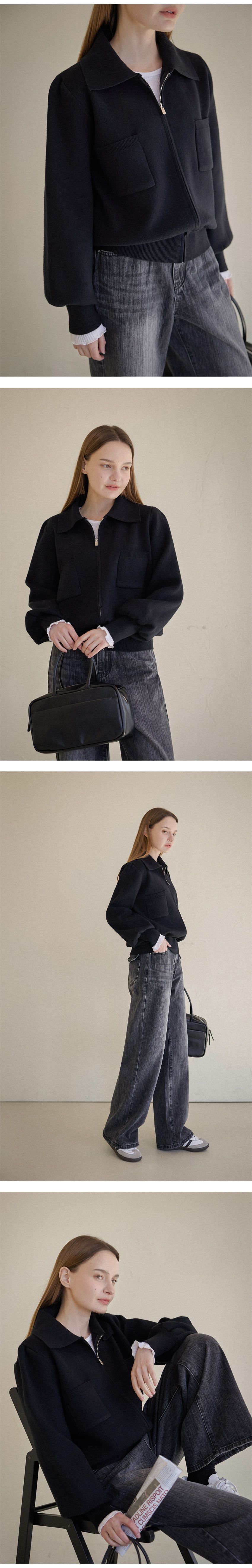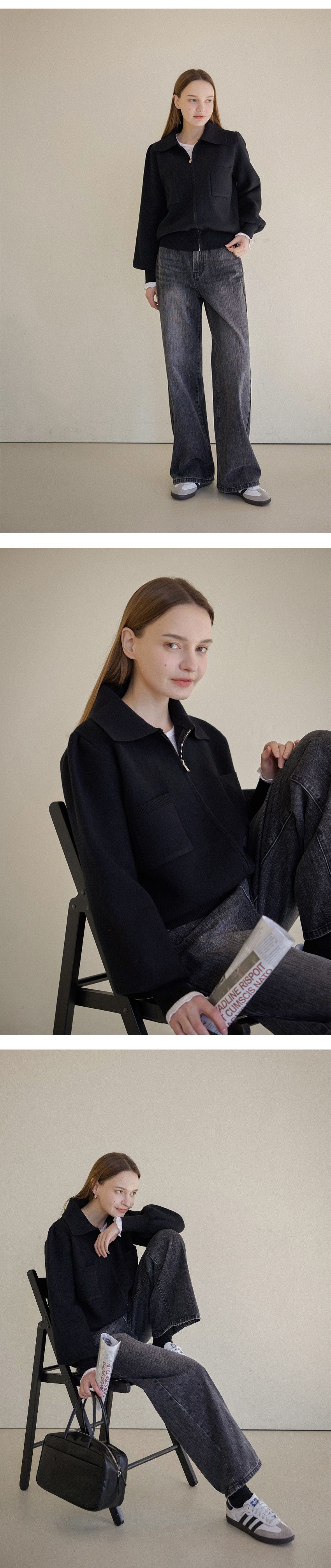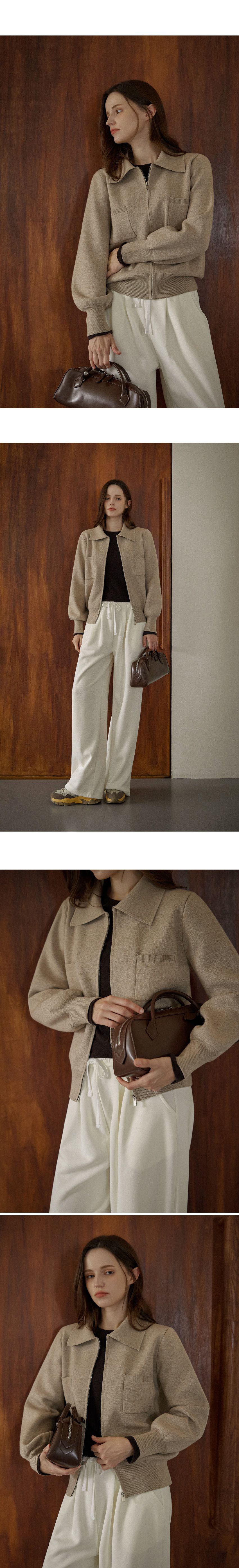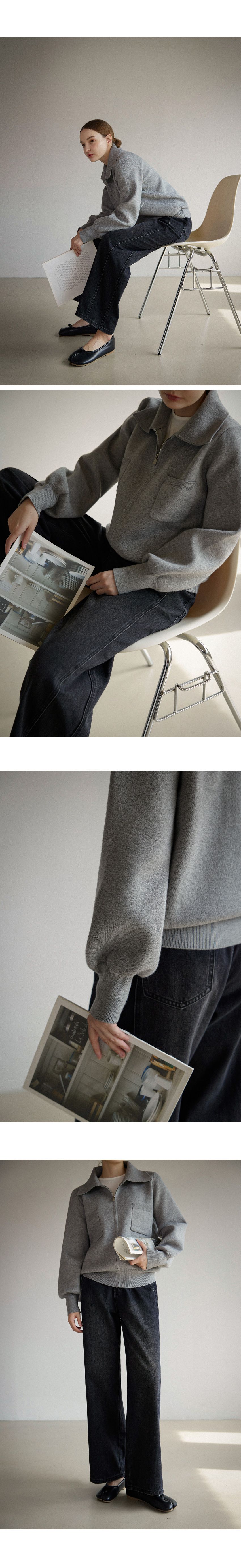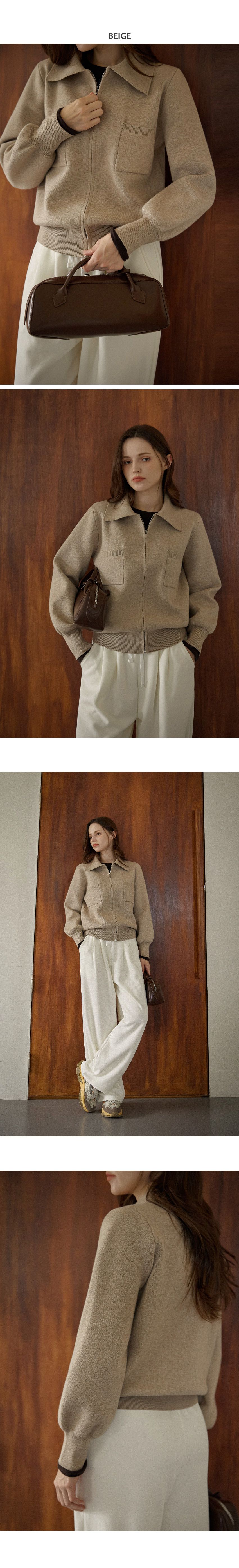 【C55662】韓國DDR 厚實針織外套-翻領素面雙口袋長袖拉鍊外套
