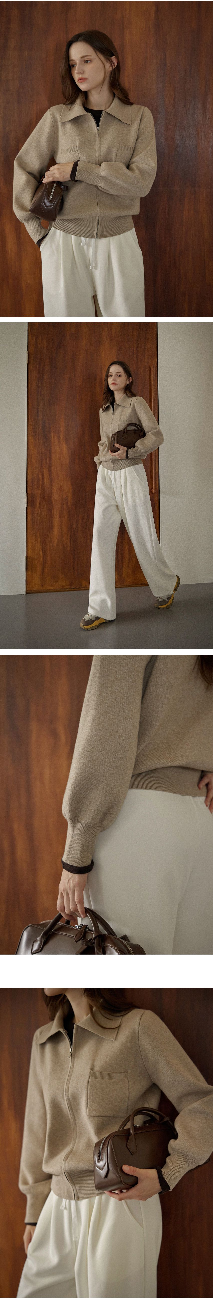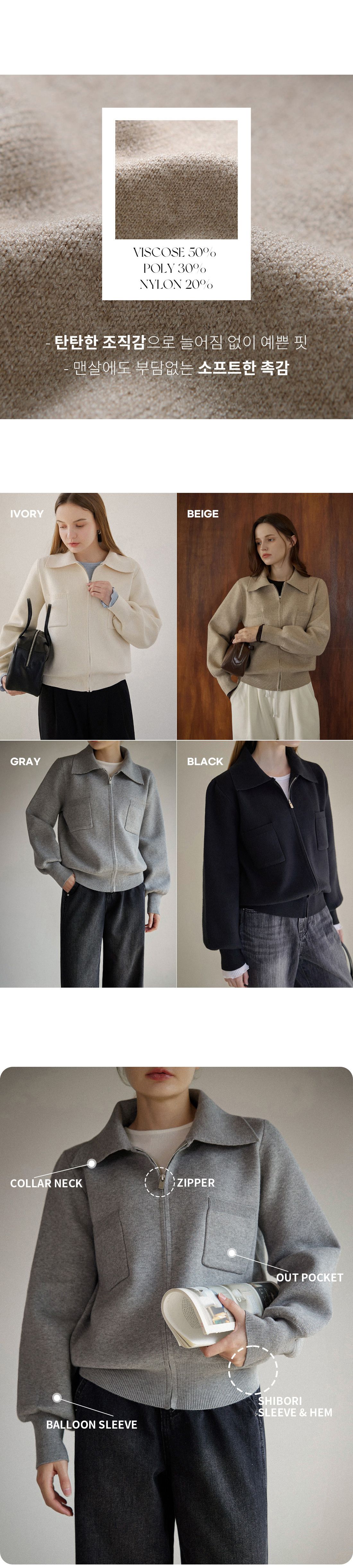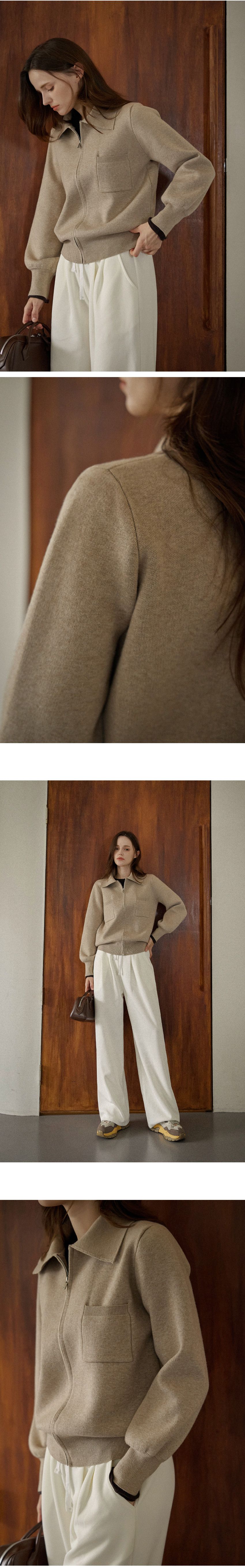 縝密針織/厚實面料/雙口袋/拉鍊外套/翻領 - 休閒居家簡約百搭素面厚實針織外套長袖外套拉鍊外套灰色奶油色米色黑色