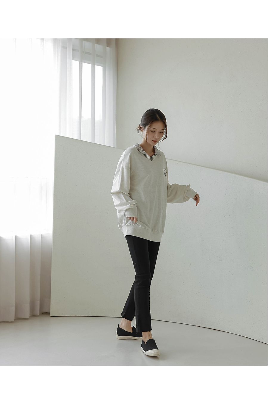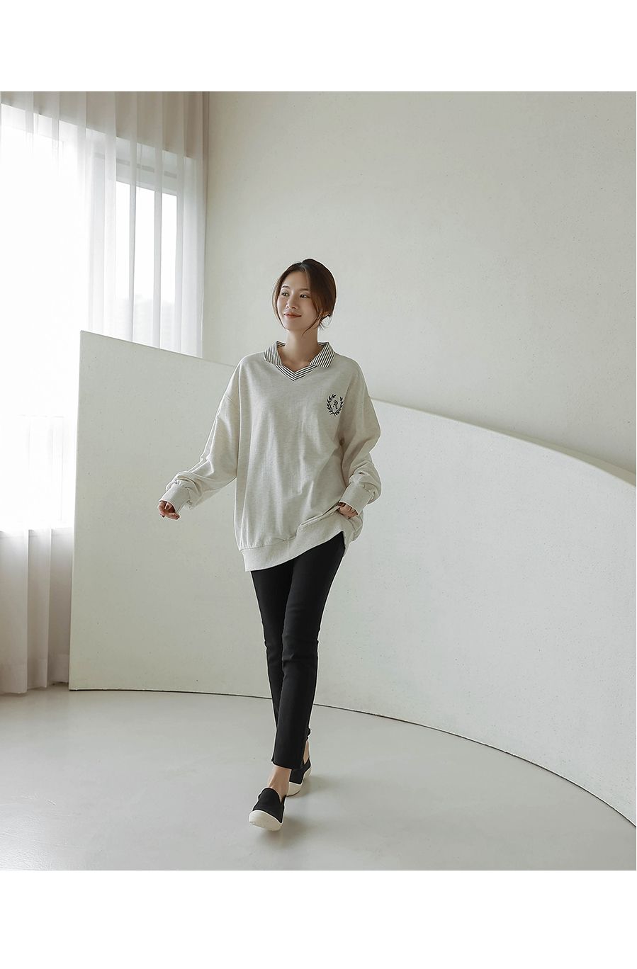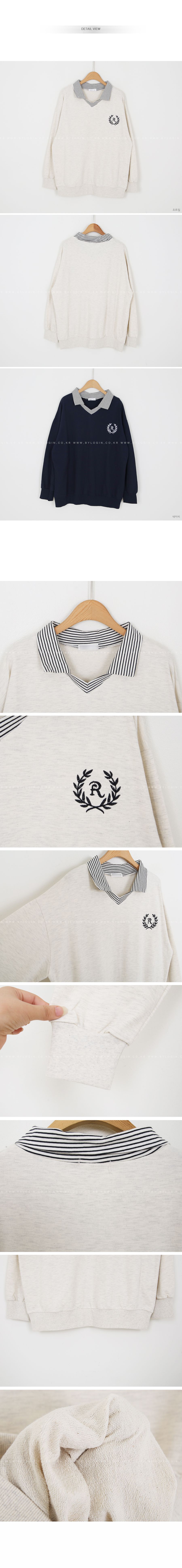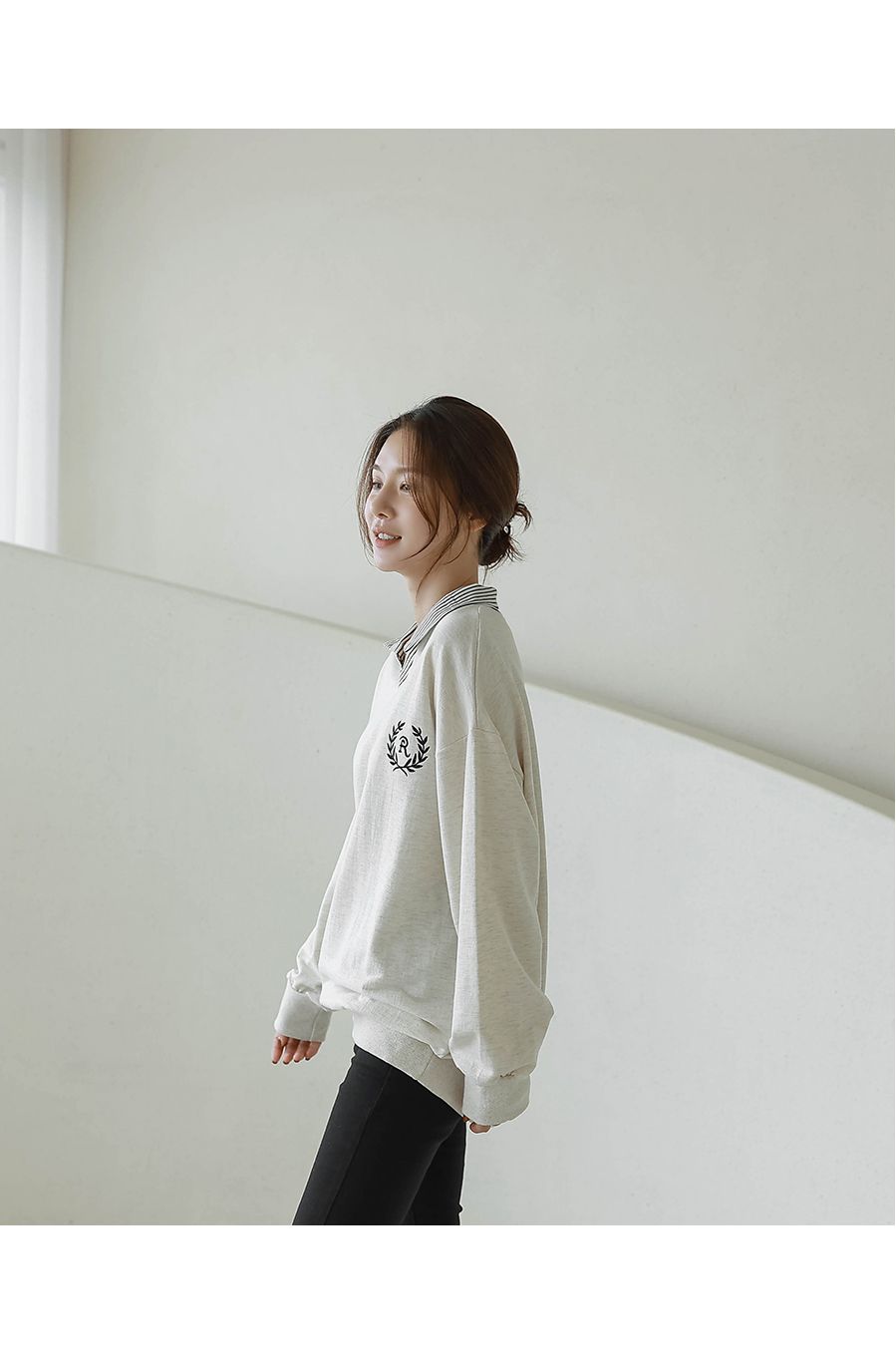 兩種尺寸/校徽LOGO/刺繡字母/R字母/V領/翻領/假兩件拼接/條紋襯衫領/寬鬆長版 - 休閒居家英文字母上衣字母T恤刺繡大學T寬鬆大尺碼上衣長版上衣長袖上衣多尺寸LXL燕麥色深藍色