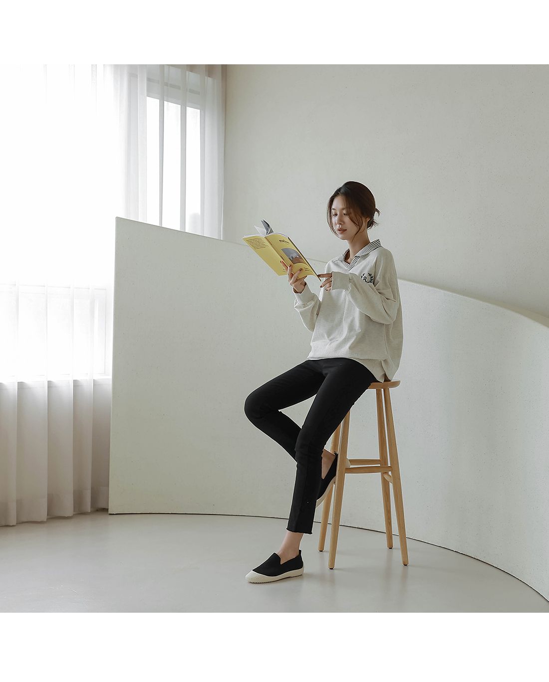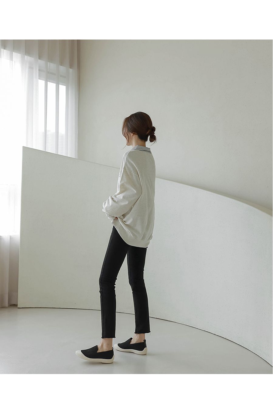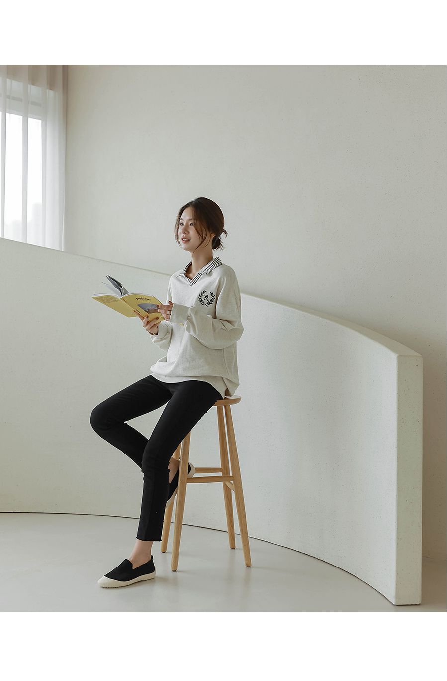 【C55663】韓國BLG 刺繡大學T-拼接條紋襯衫領寬鬆長版長袖字母上衣