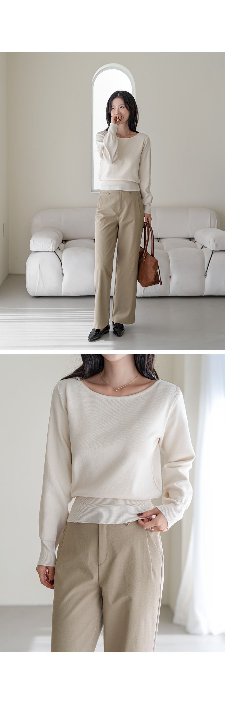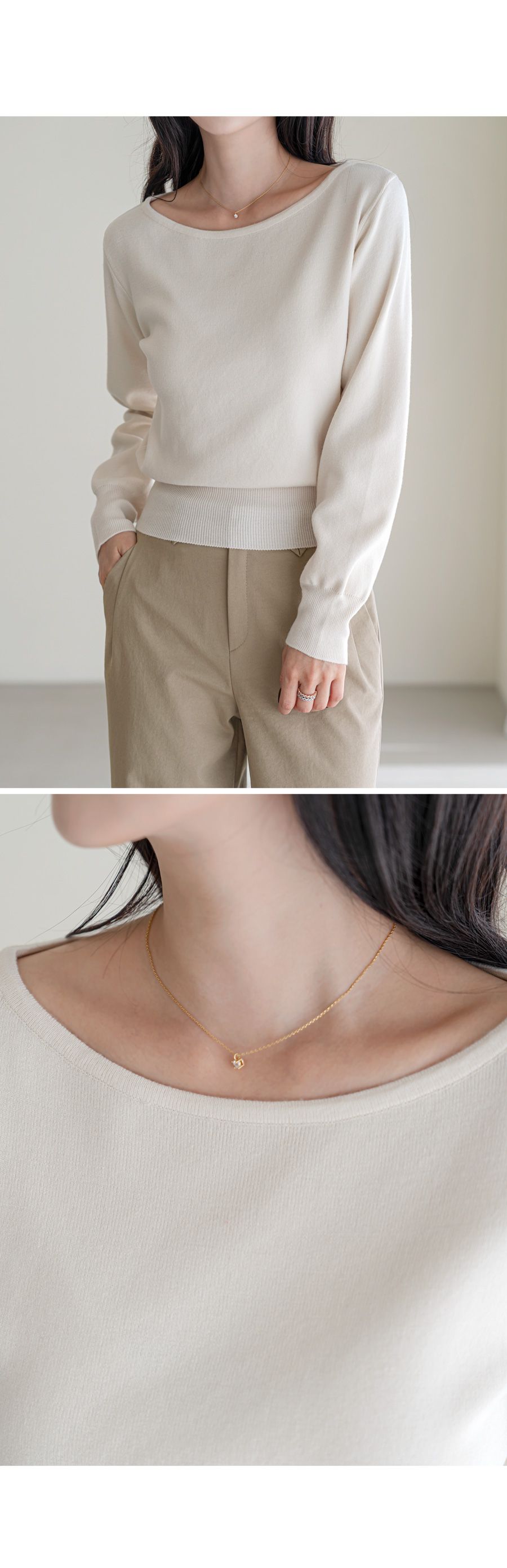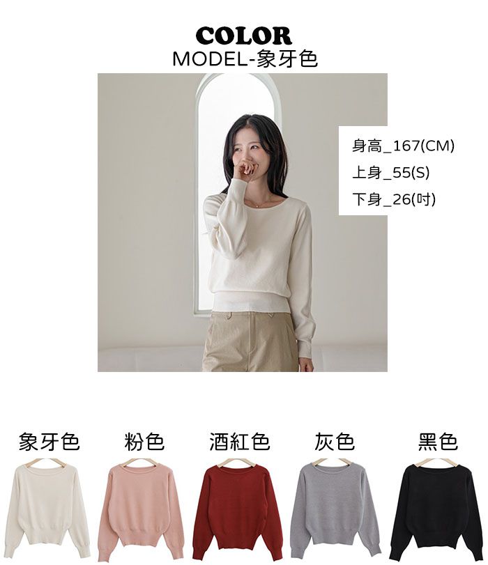 一字領/船領/U領/上寬下窄/短版上衣 - 休閒婚禮OL上班族簡約百搭素面船領針織衫針織上衣長袖上衣象牙色粉色酒紅色灰色黑色
