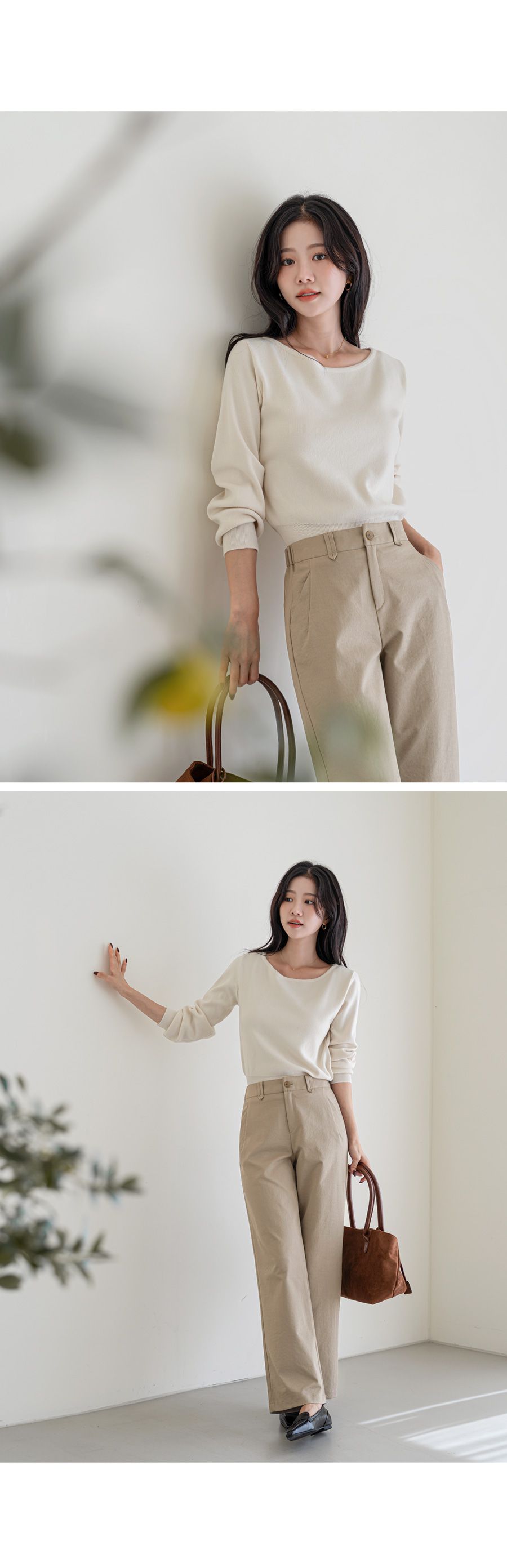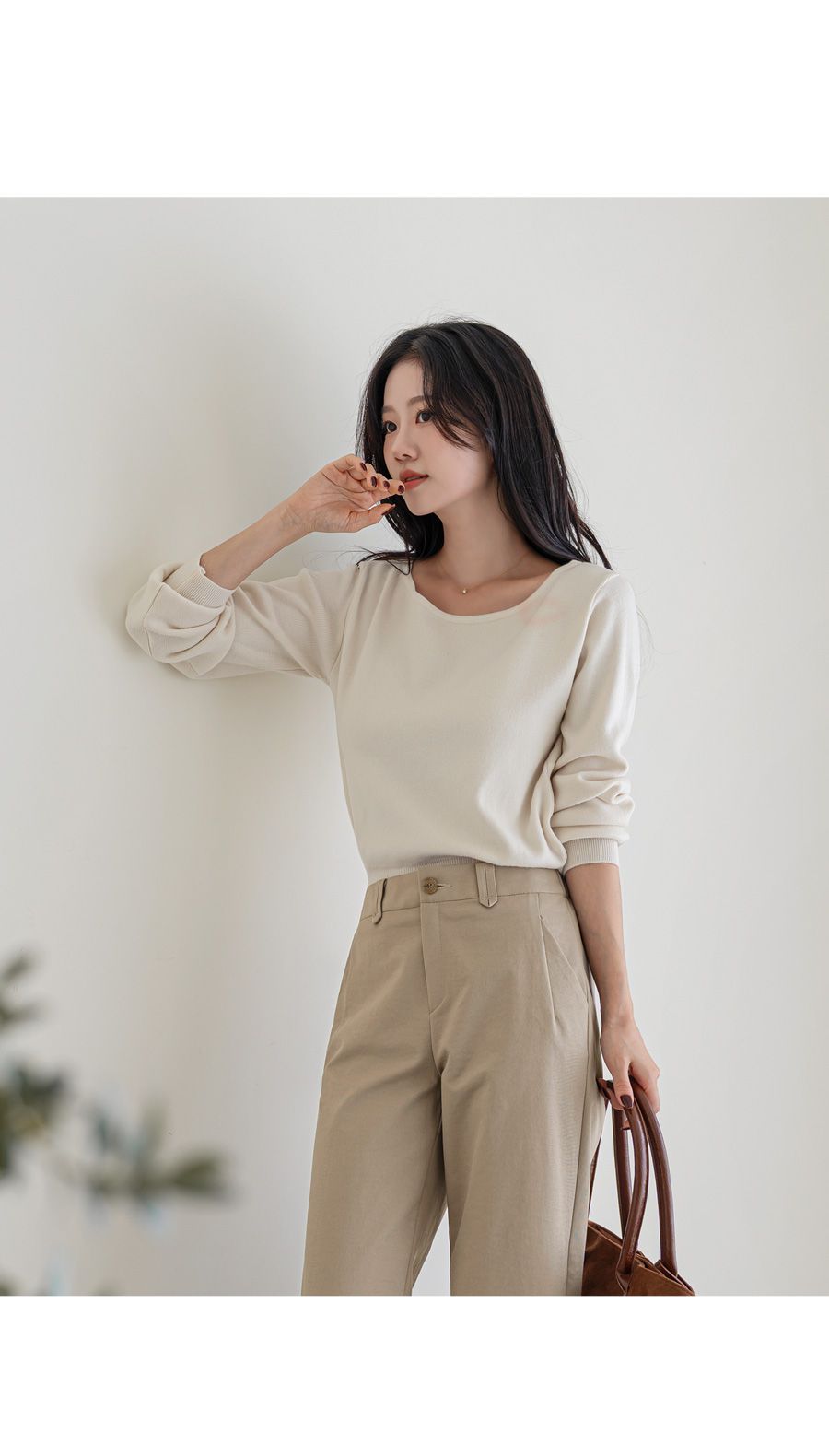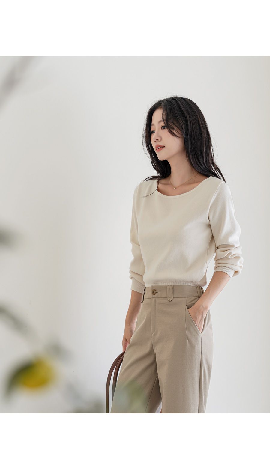 一字領/船領/U領/上寬下窄/短版上衣 - 休閒婚禮OL上班族簡約百搭素面船領針織衫針織上衣長袖上衣象牙色粉色酒紅色灰色黑色