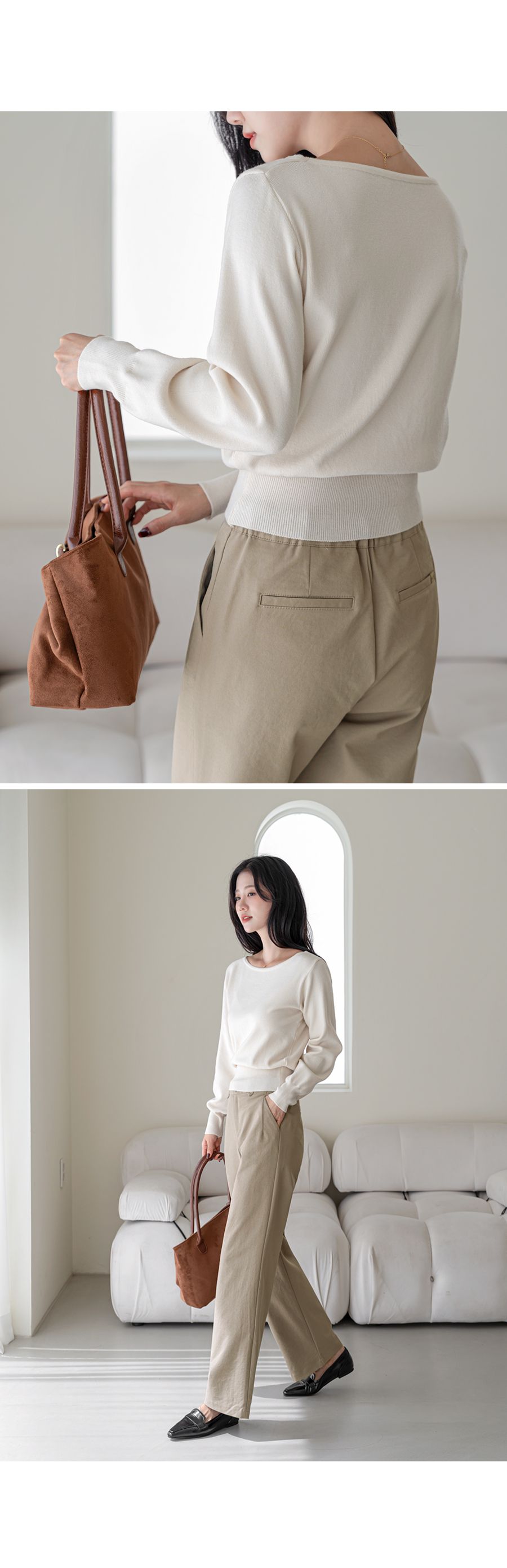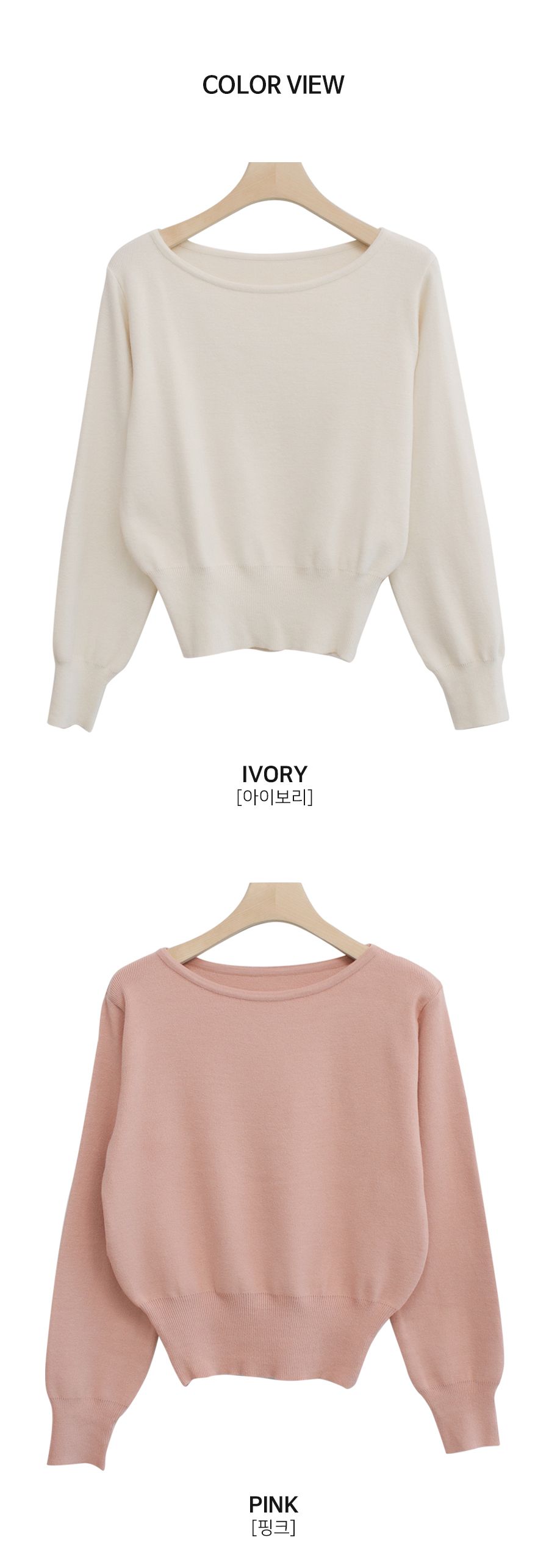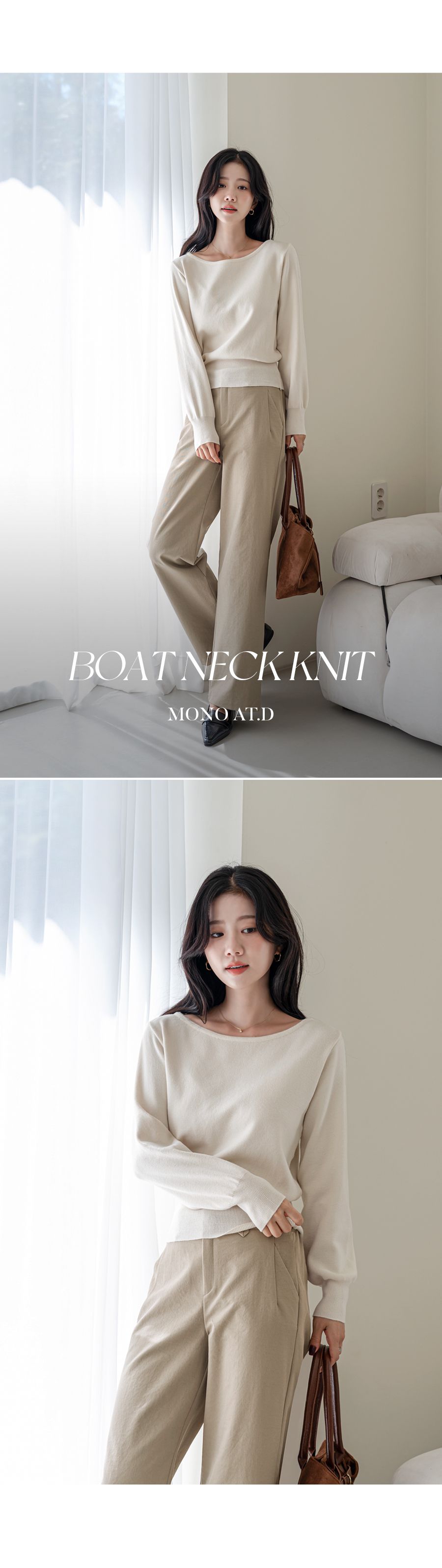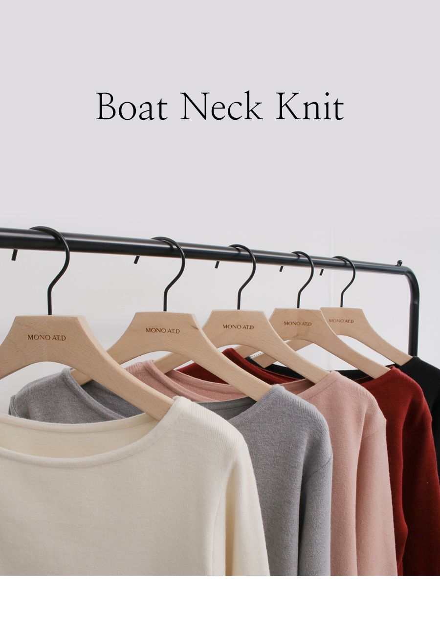 【C55666】韓國MNA 船領針織衫-素面一字領上寬下窄短版長袖上衣