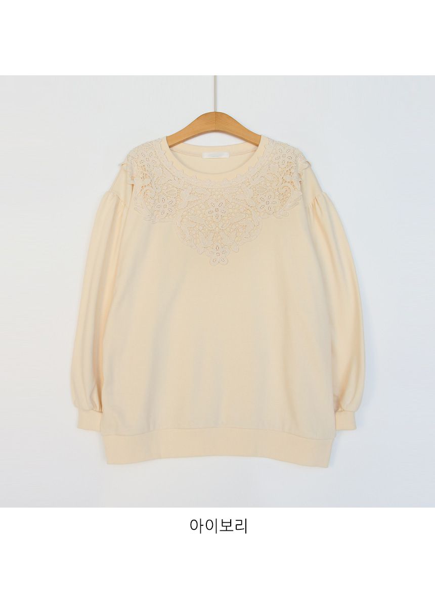 【C55668】韓國SSP 蕾絲拼接大學T-素面圓領寬袖雕花領泡泡長袖上衣