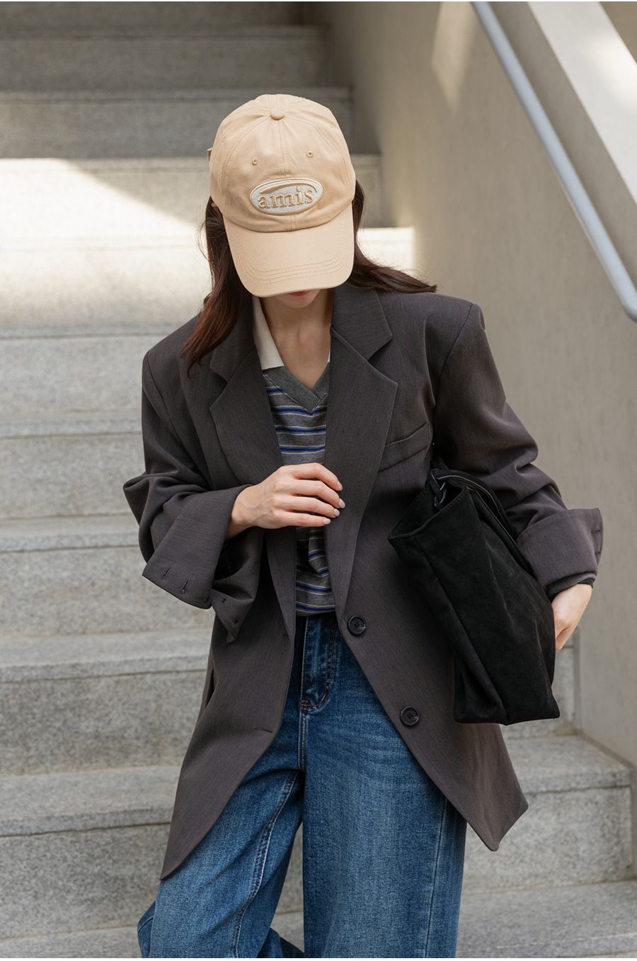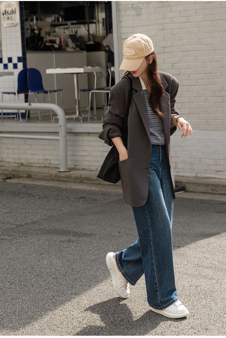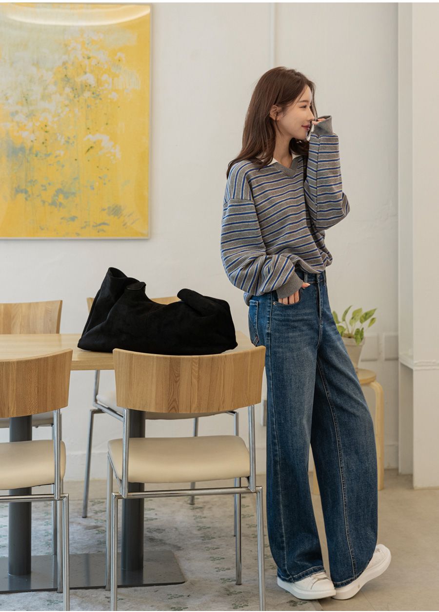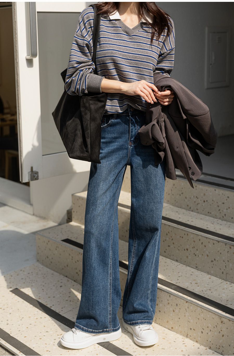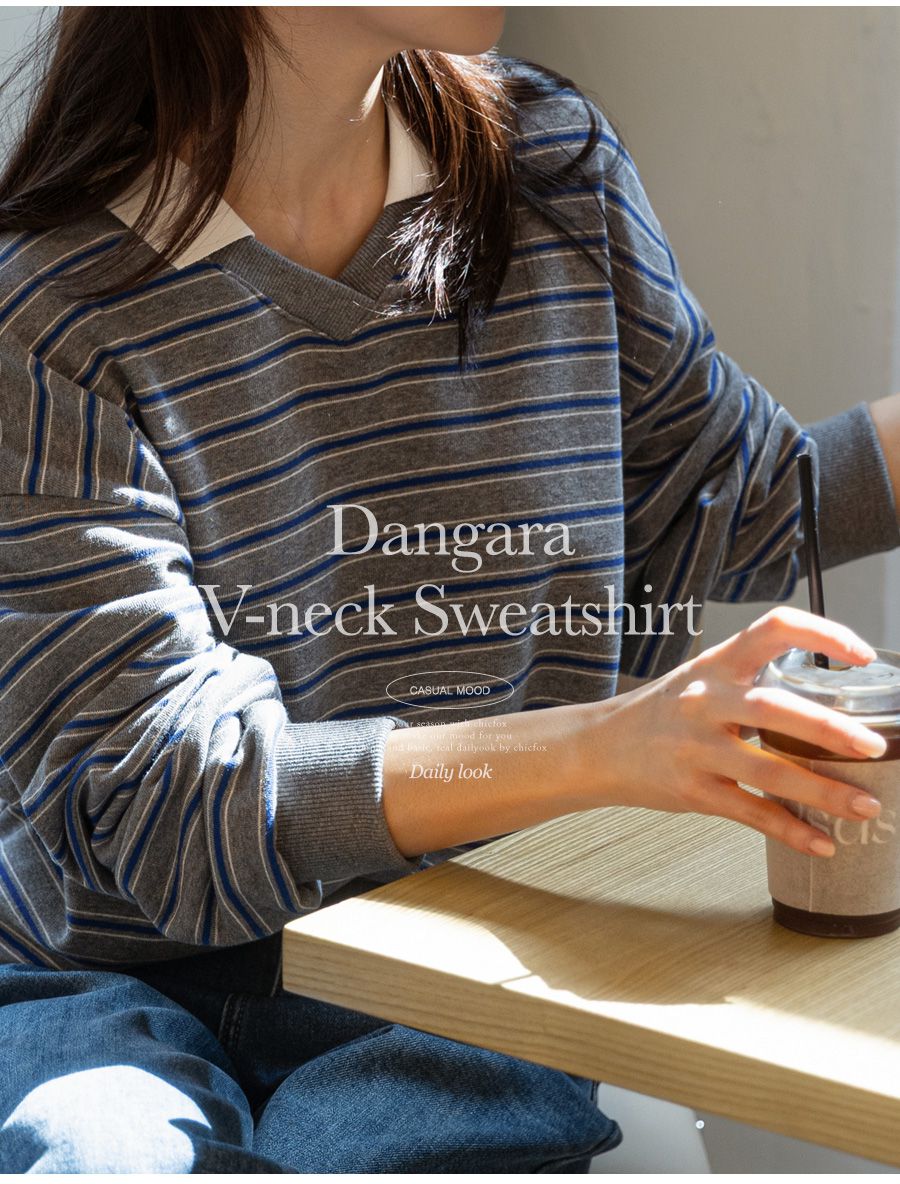 假兩件拼接/V領/拼接襯衫領/翻領/經典條紋色 - 休閒居家配色條紋上衣條紋POLO衫休閒長袖上衣灰色奶油色深藍色