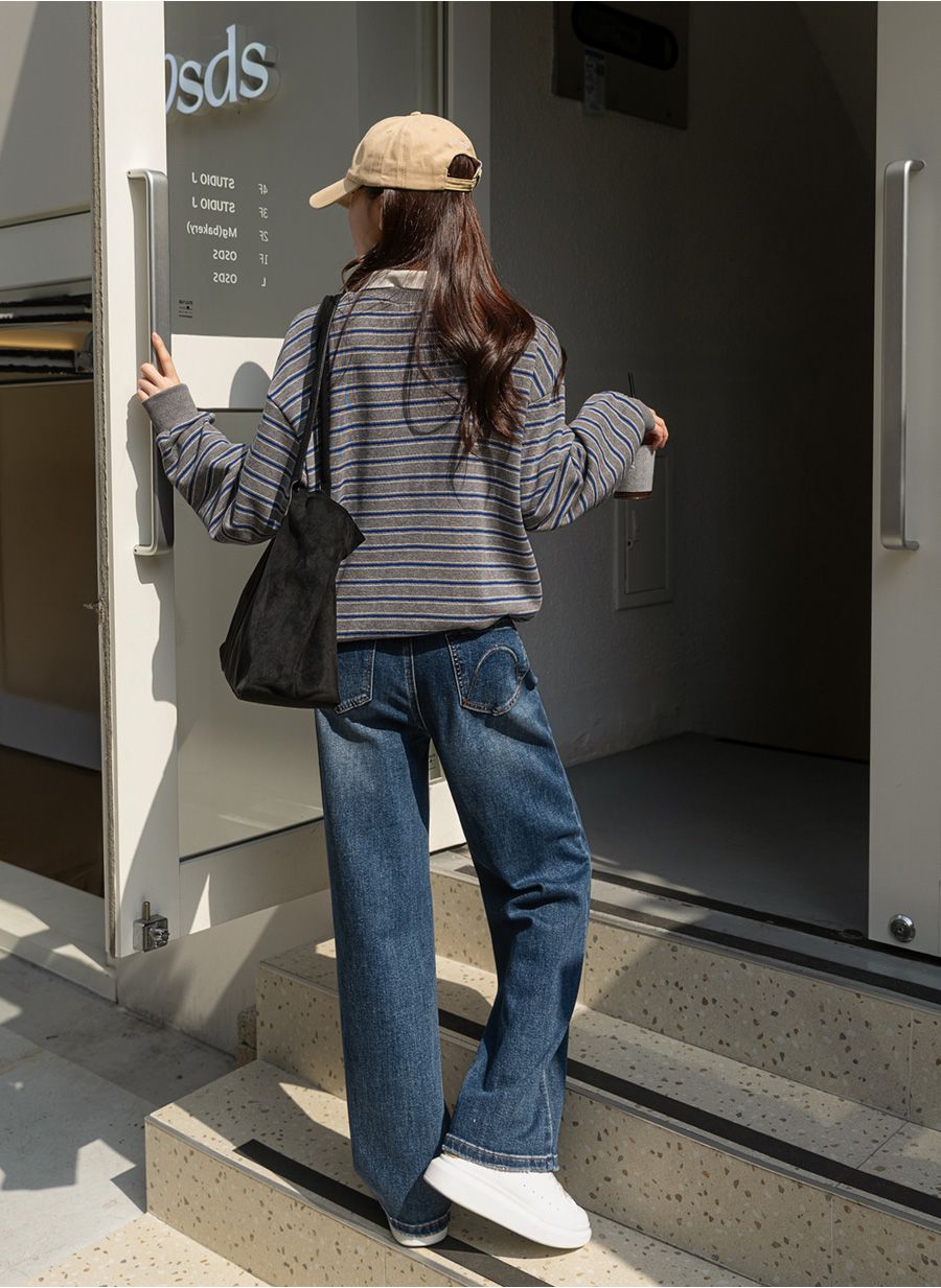 【C55669】韓國CFX 條紋POLO衫-假兩件拼接V領休閒長袖上衣★★
