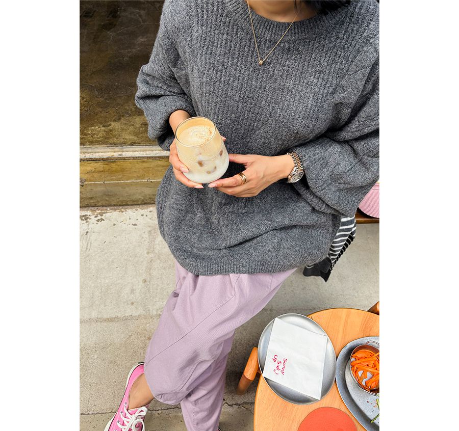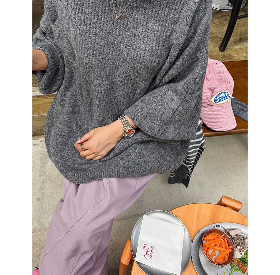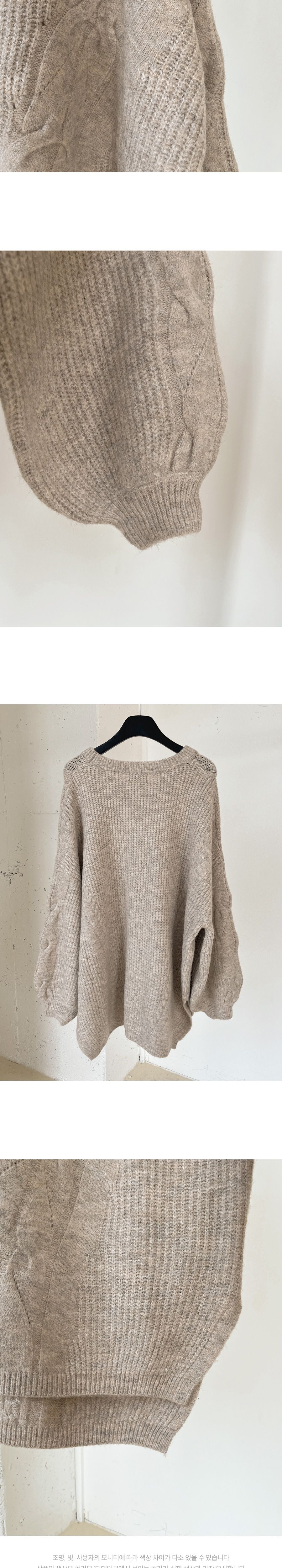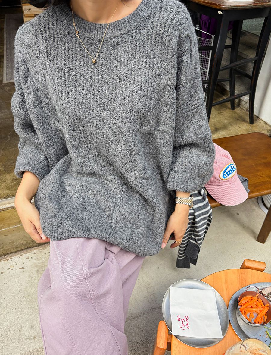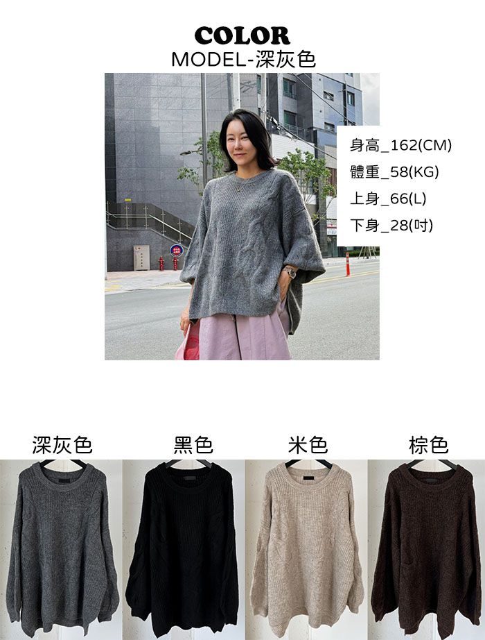 【C55672】韓國COJ 蓬鬆麻花針織衫-素面寬鬆長版側開衩泡泡長袖上衣