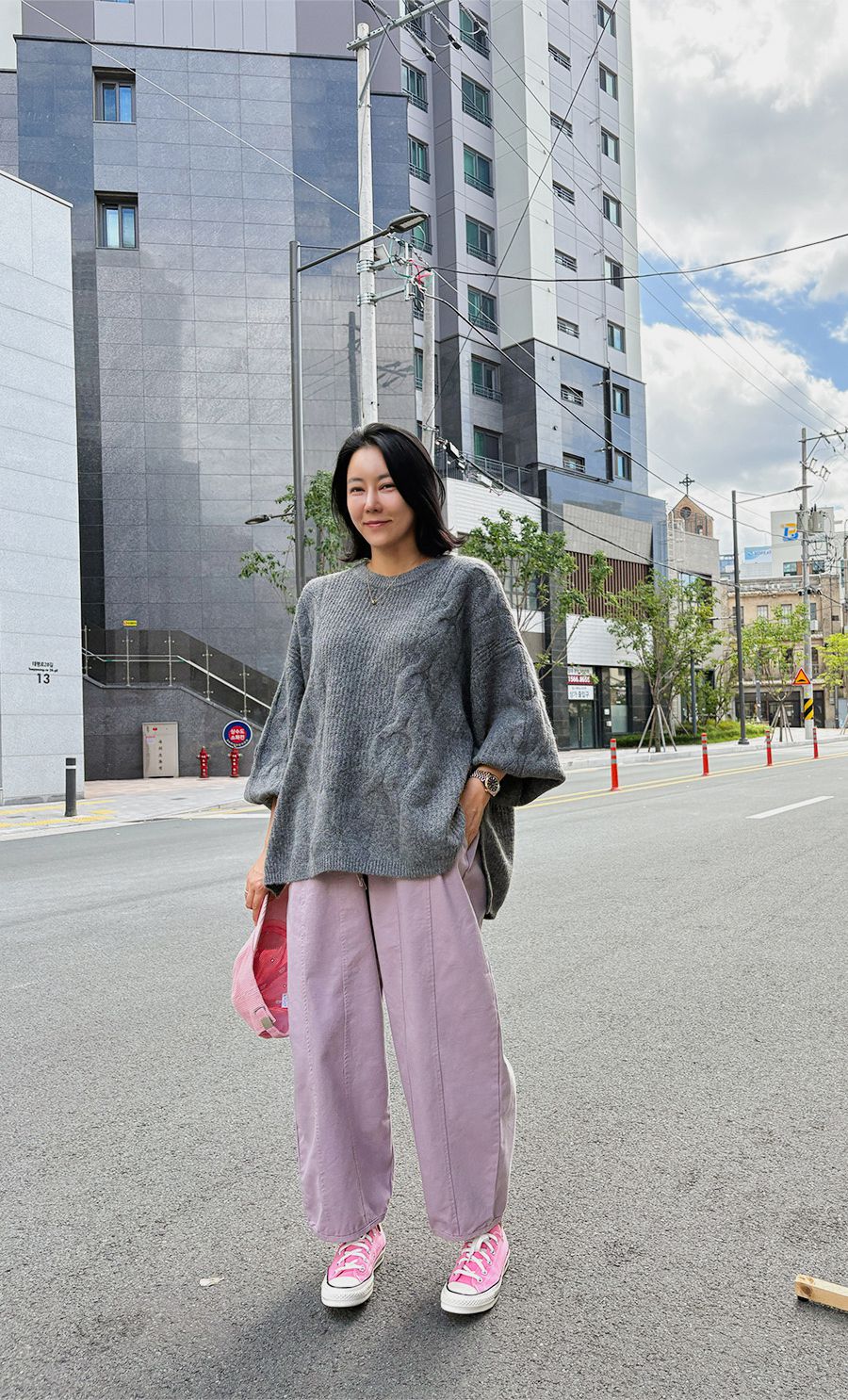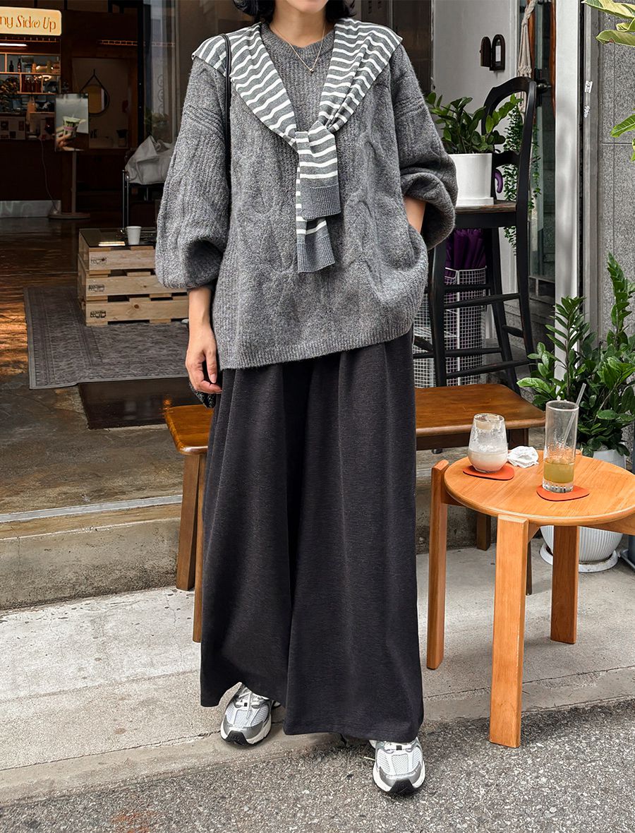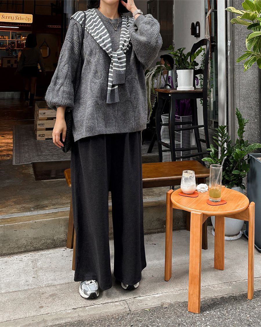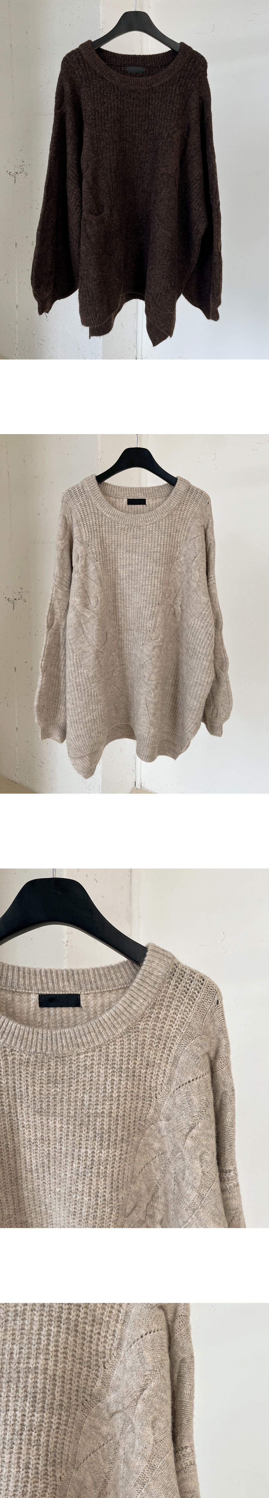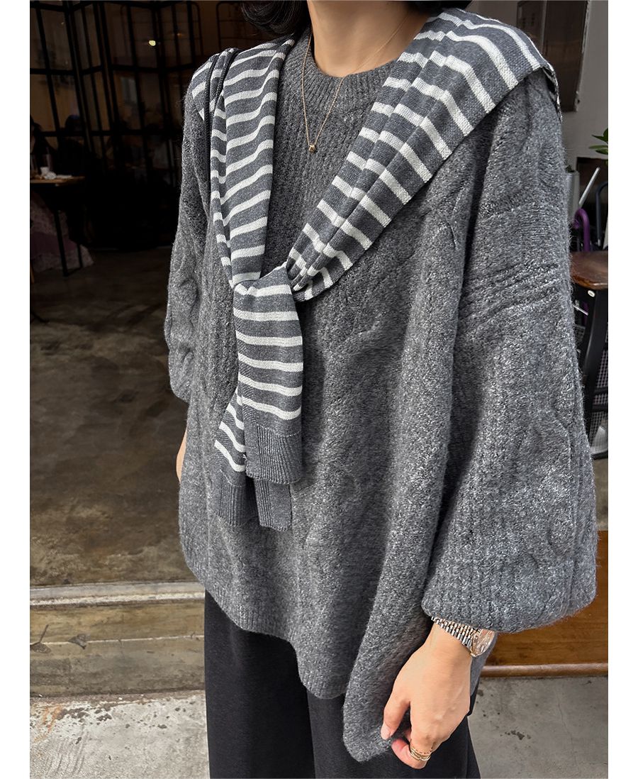 【C55672】韓國COJ 蓬鬆麻花針織衫-素面寬鬆長版側開衩泡泡長袖上衣