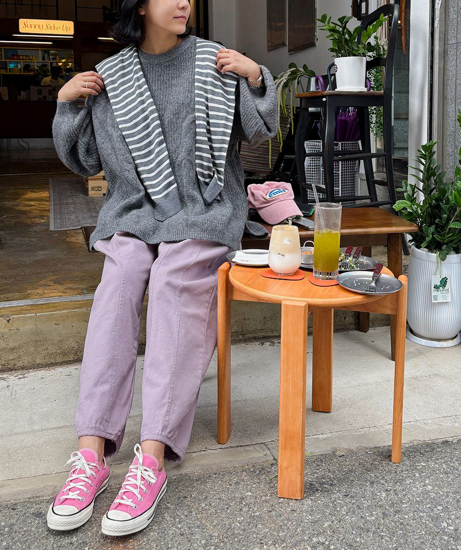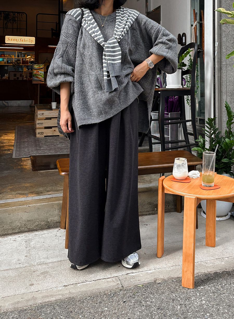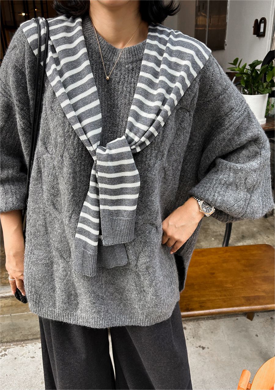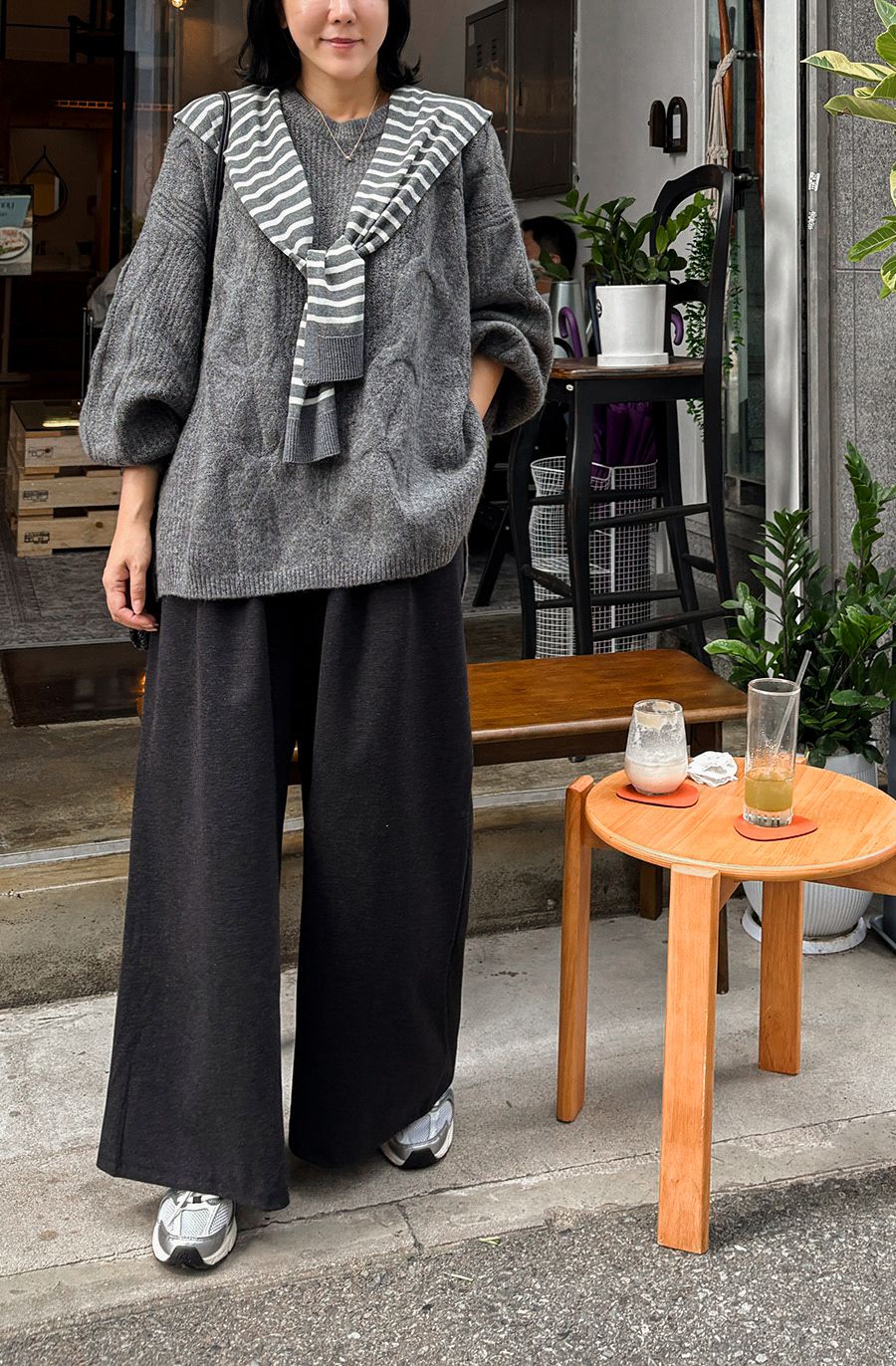 【C55672】韓國COJ 蓬鬆麻花針織衫-素面寬鬆長版側開衩泡泡長袖上衣