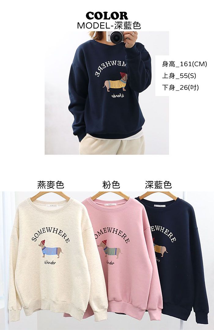 【C55674】韓國MIS 臘腸狗印花上衣-厚實內刷毛好氣色寬鬆字母長袖★★