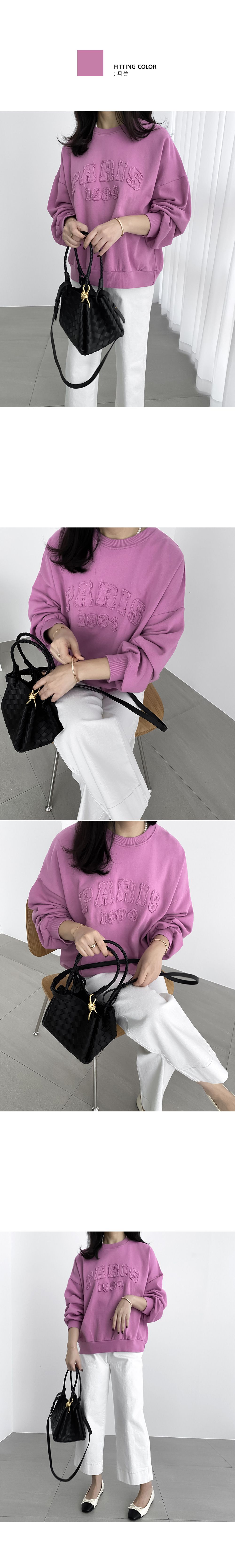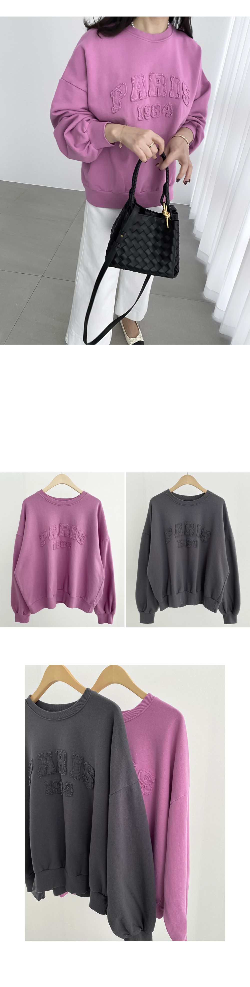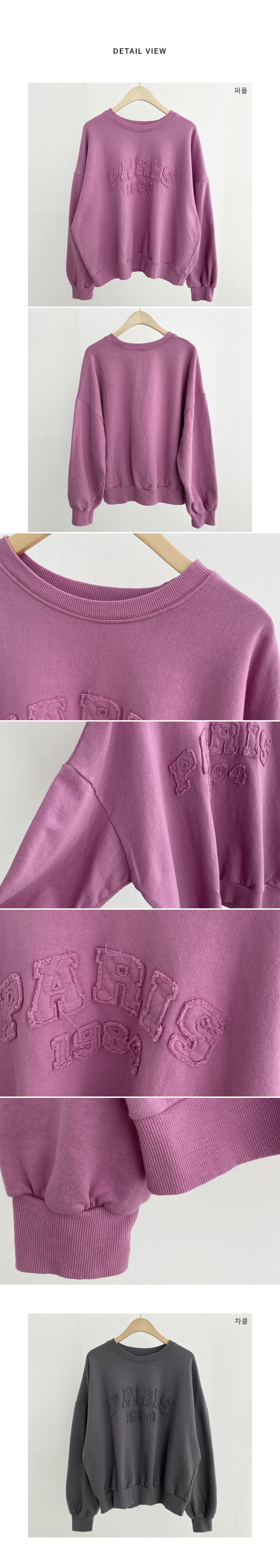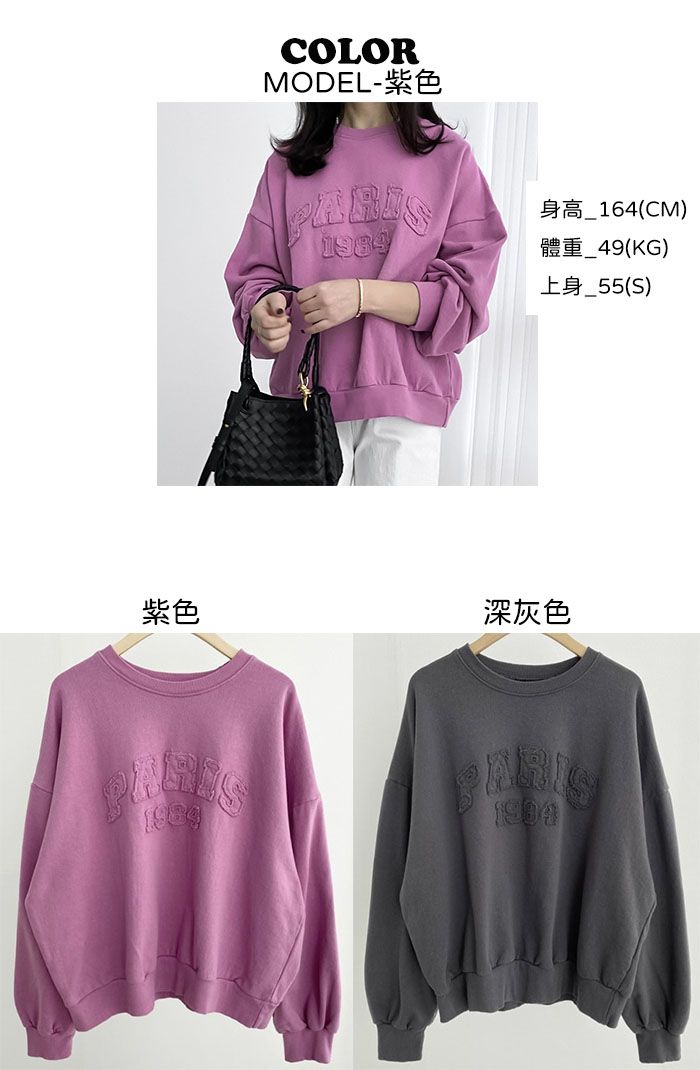 好氣色/立體英文/拼布字母/寬鬆版型/圓領/巴黎PARIS - 休閒居家英文字母上衣字母T恤拼布字母大學T寬鬆大尺碼上衣長袖上衣紫色深灰色