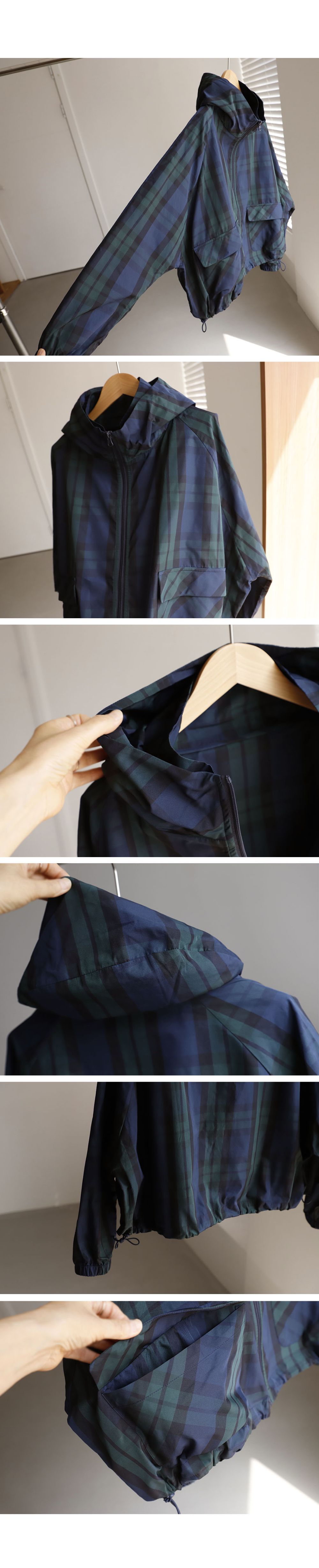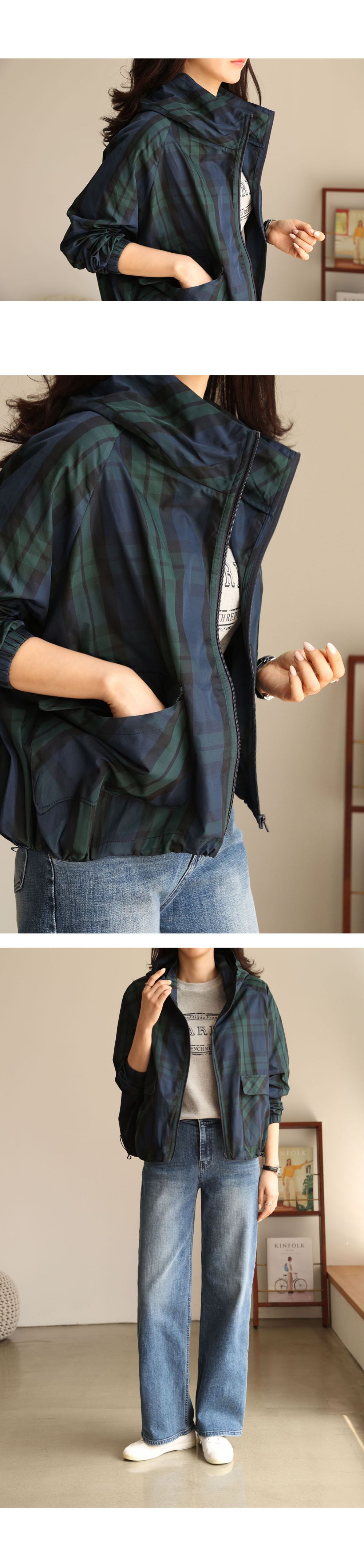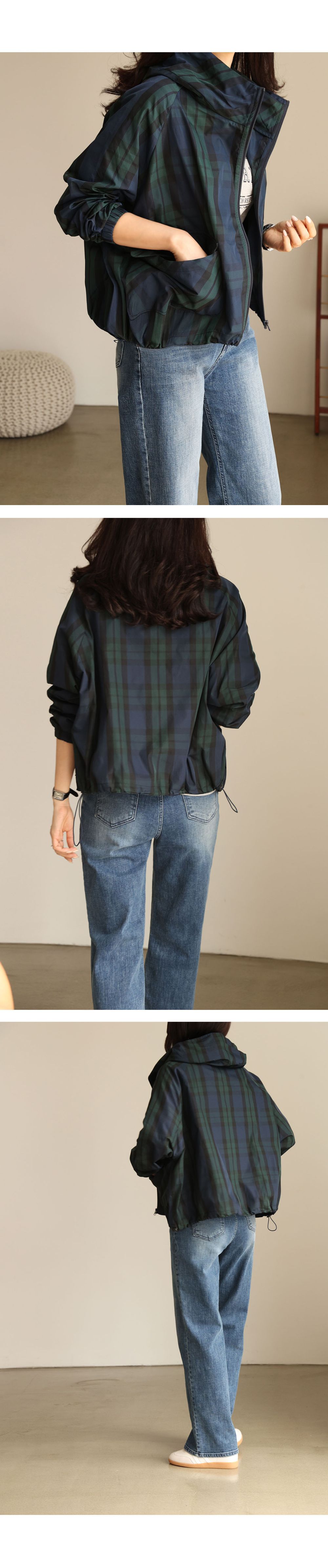 經典格紋/高領/立領/連帽/雙口袋/下襬抽繩收腰/有內裏/拉鍊外套 - 休閒渡假防風格紋外套立領外套連帽外套長袖夾克長袖外套綠色