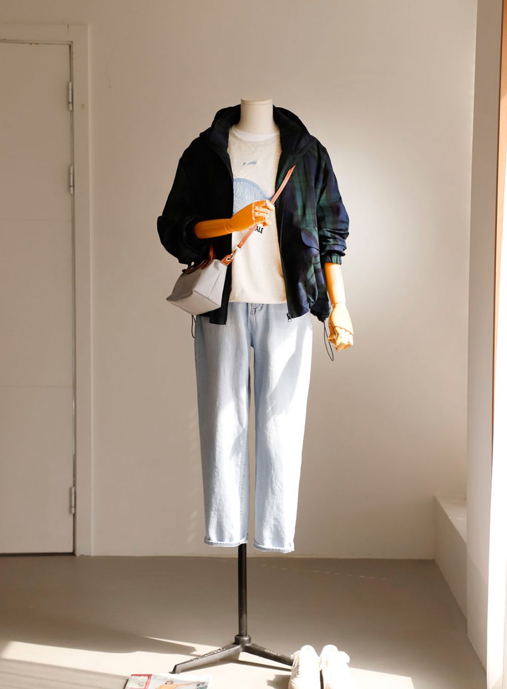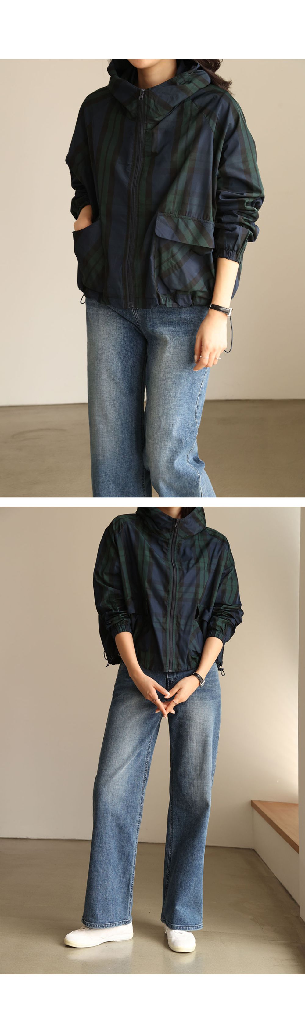 【C55677】韓國SNY 防風格紋外套-立領抽繩收腰拉鍊長袖夾克