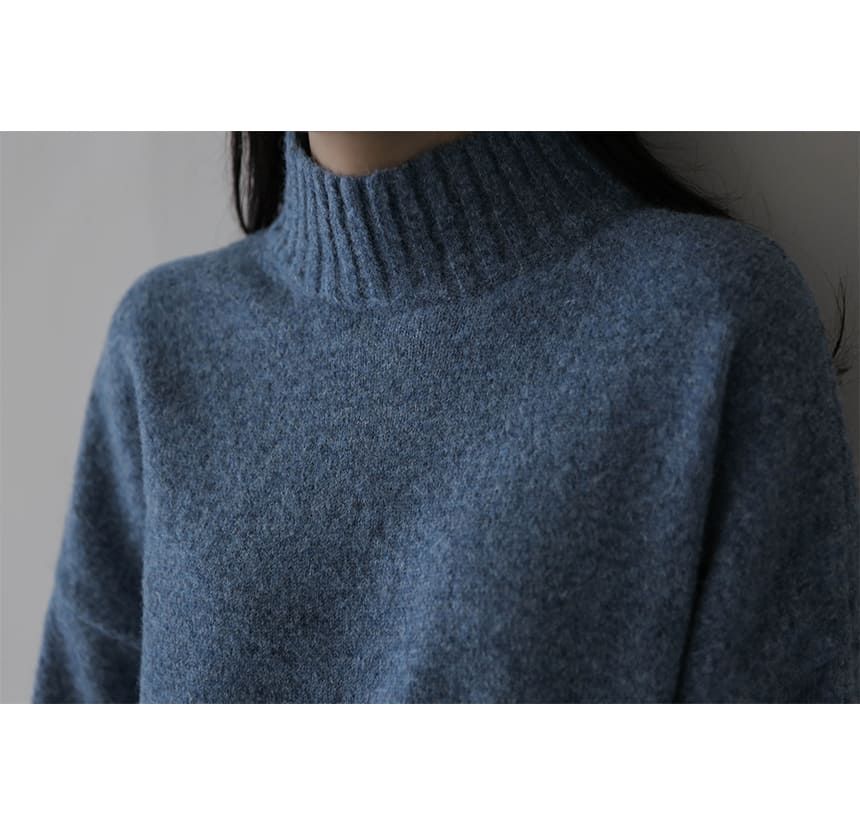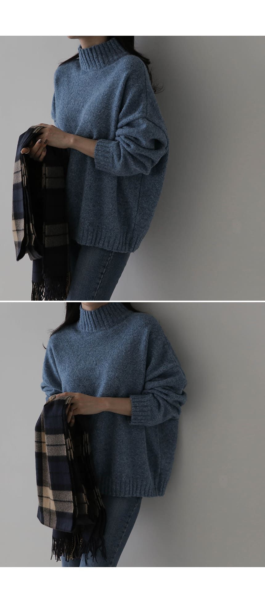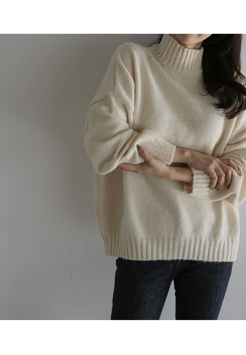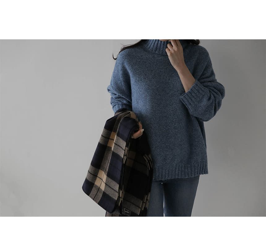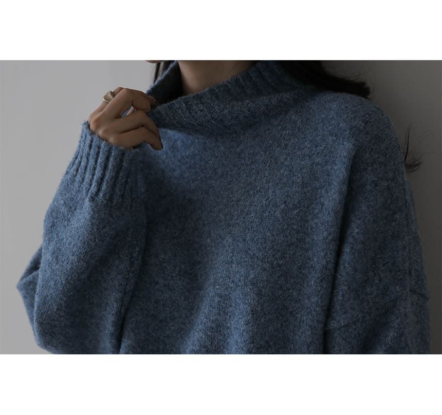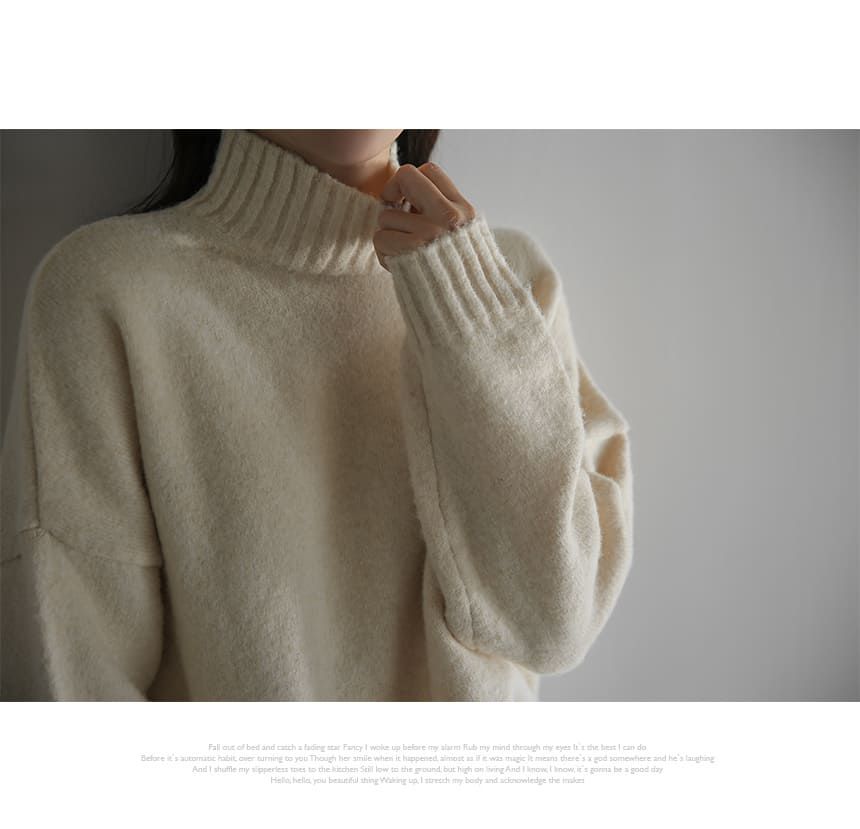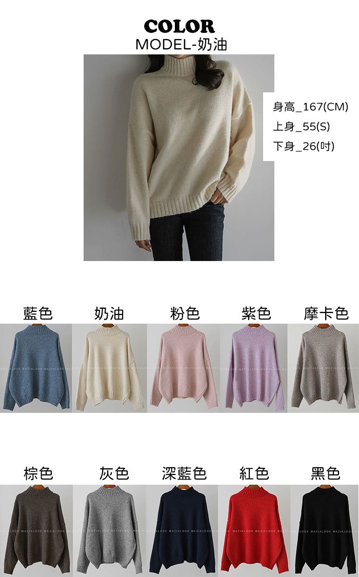 立領/高領/寬鬆版型/落肩長袖/蓬鬆保暖/混羊毛 - 休閒居家簡約百搭素面蓬鬆高領針織衫針織上衣長袖上衣羊毛針織衫寬鬆大尺碼上衣