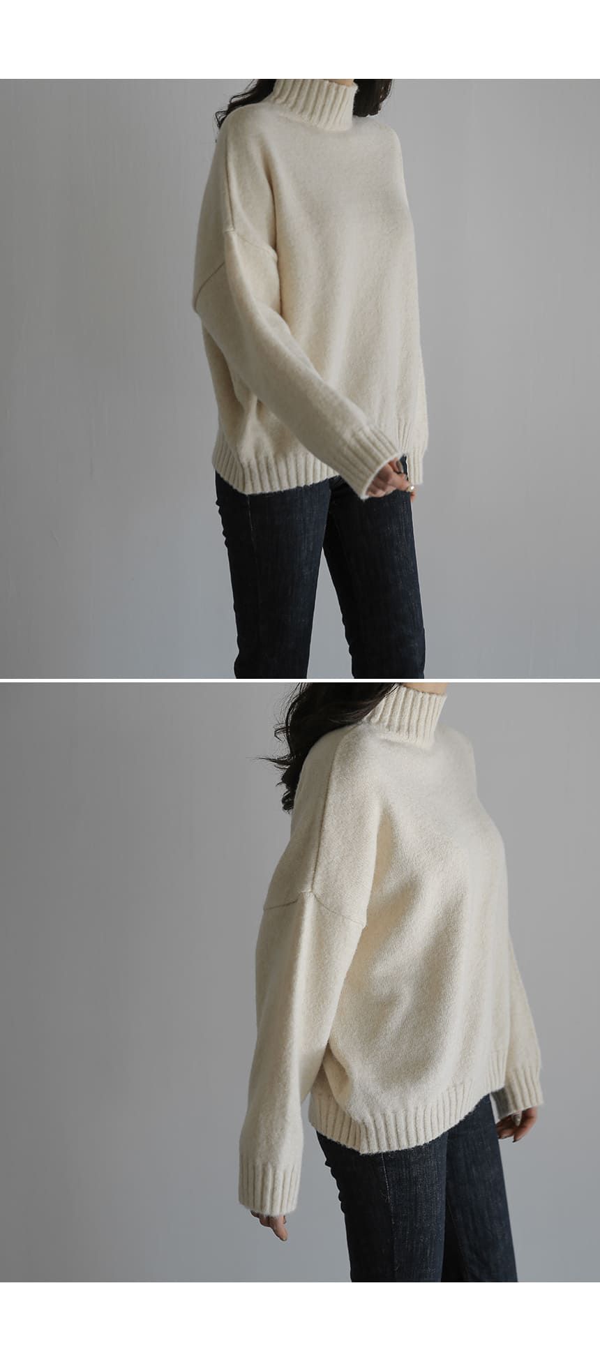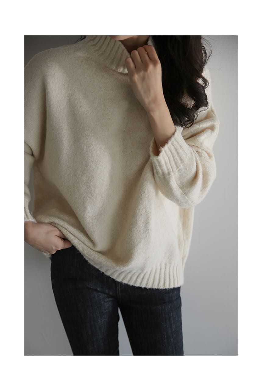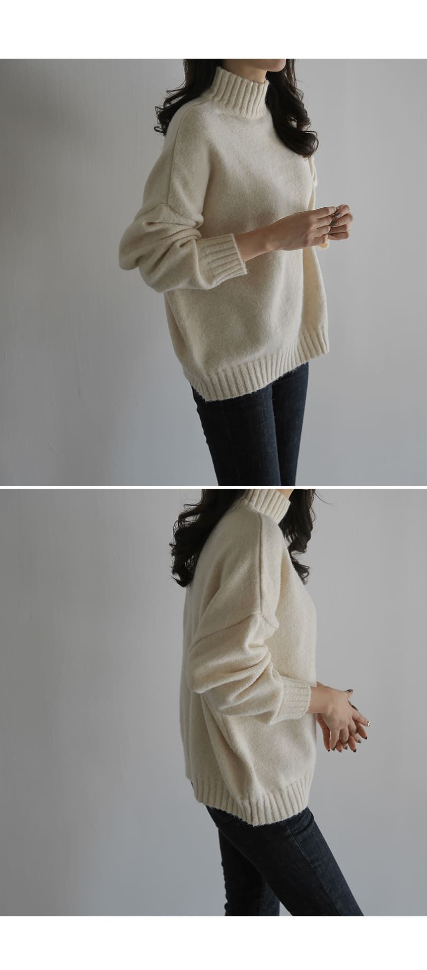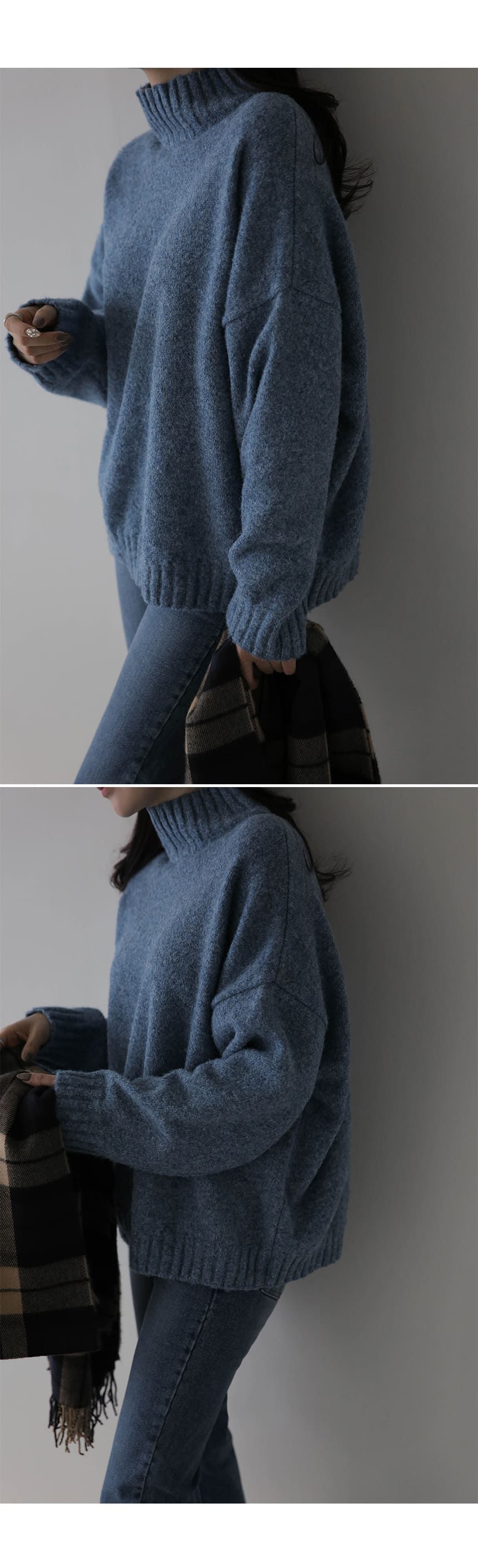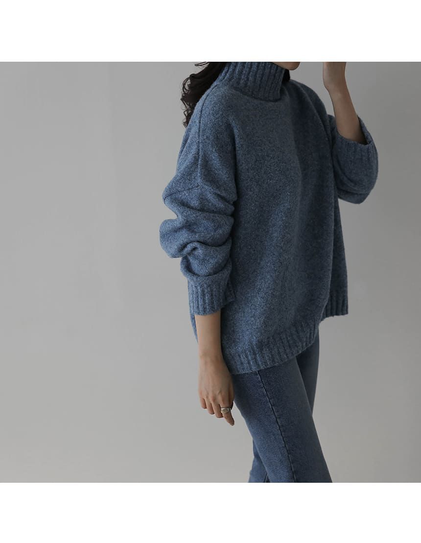 立領/高領/寬鬆版型/落肩長袖/蓬鬆保暖/混羊毛 - 休閒居家簡約百搭素面蓬鬆高領針織衫針織上衣長袖上衣羊毛針織衫寬鬆大尺碼上衣