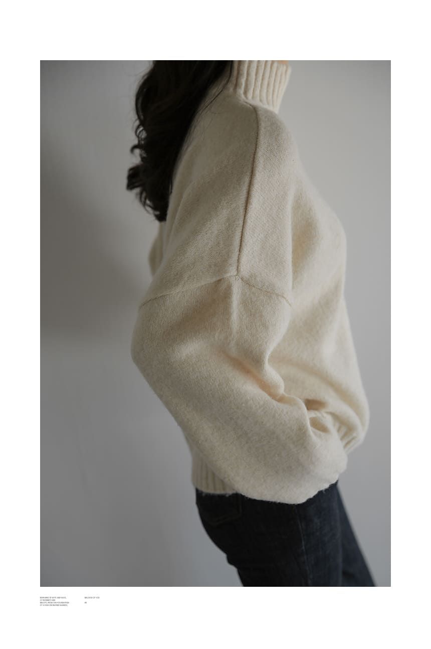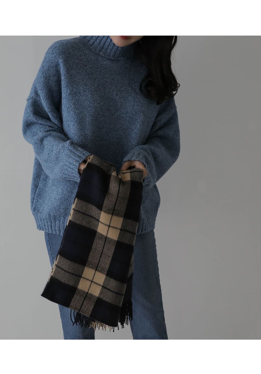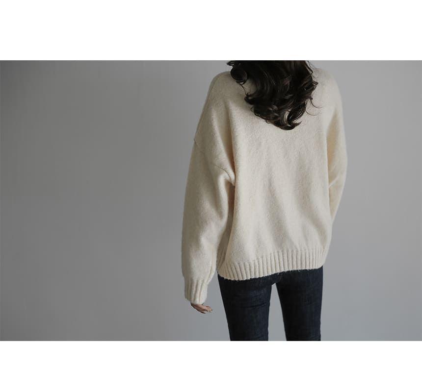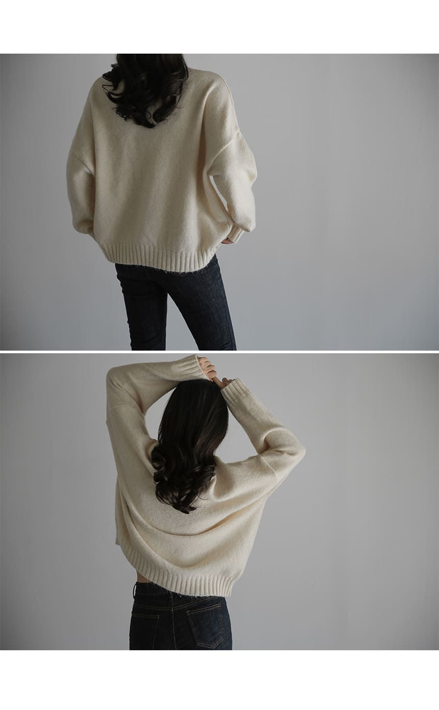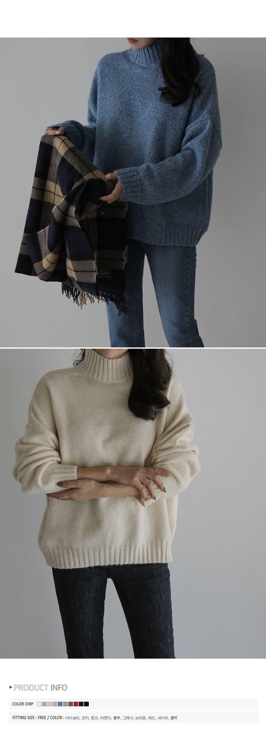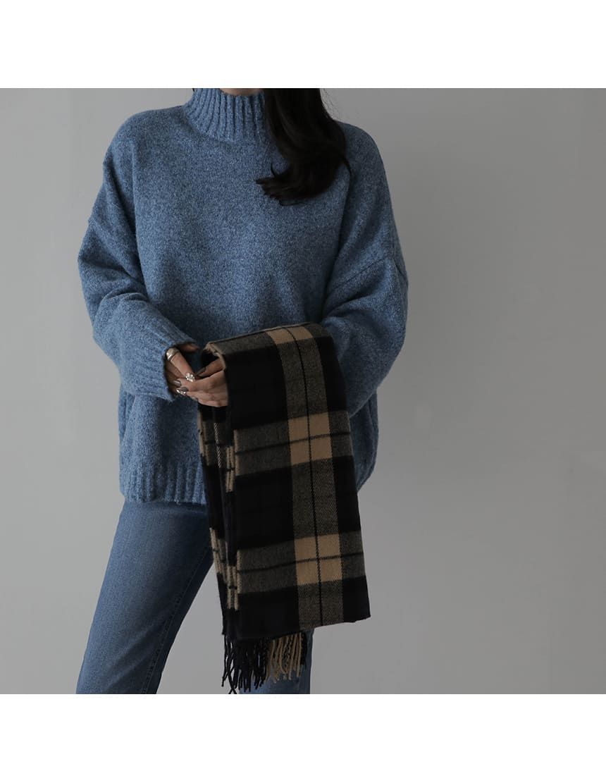 立領/高領/寬鬆版型/落肩長袖/蓬鬆保暖/混羊毛 - 休閒居家簡約百搭素面蓬鬆高領針織衫針織上衣長袖上衣羊毛針織衫寬鬆大尺碼上衣