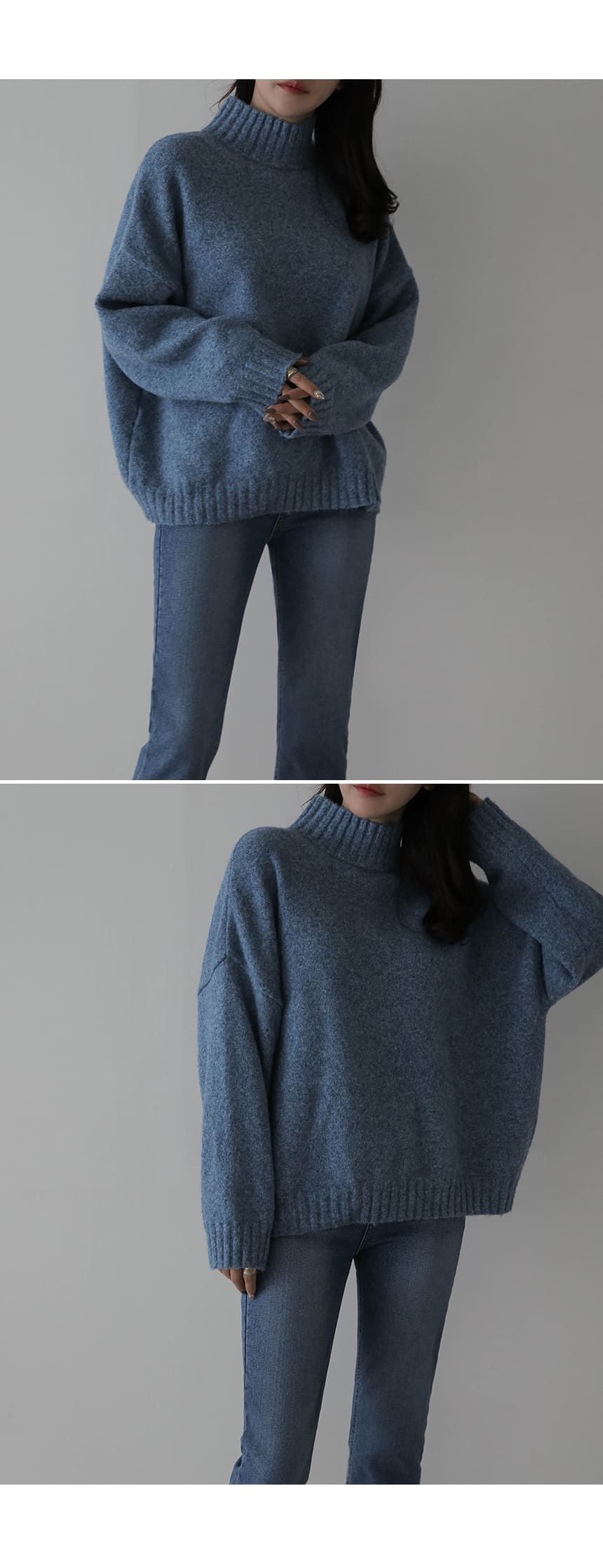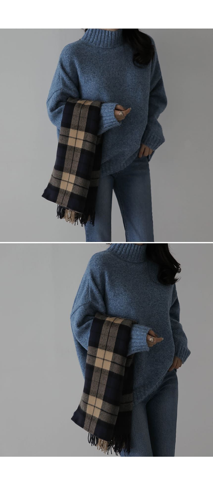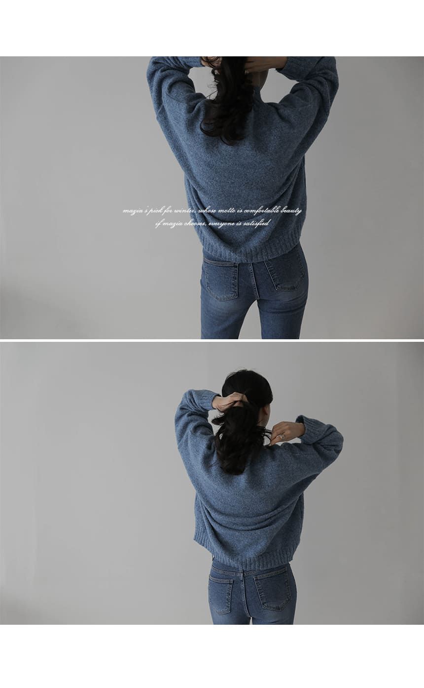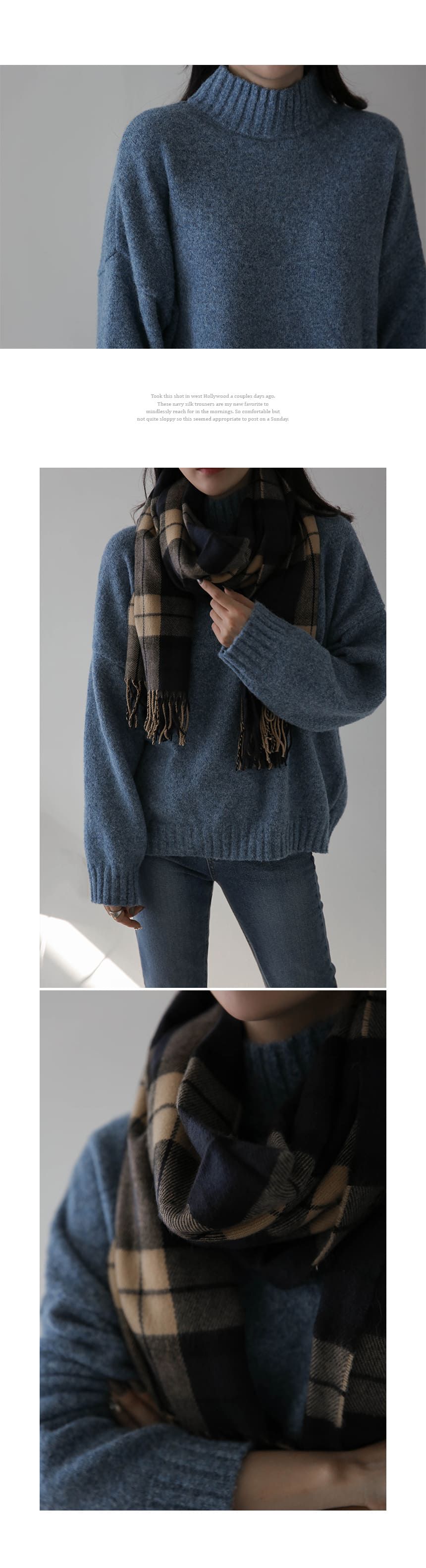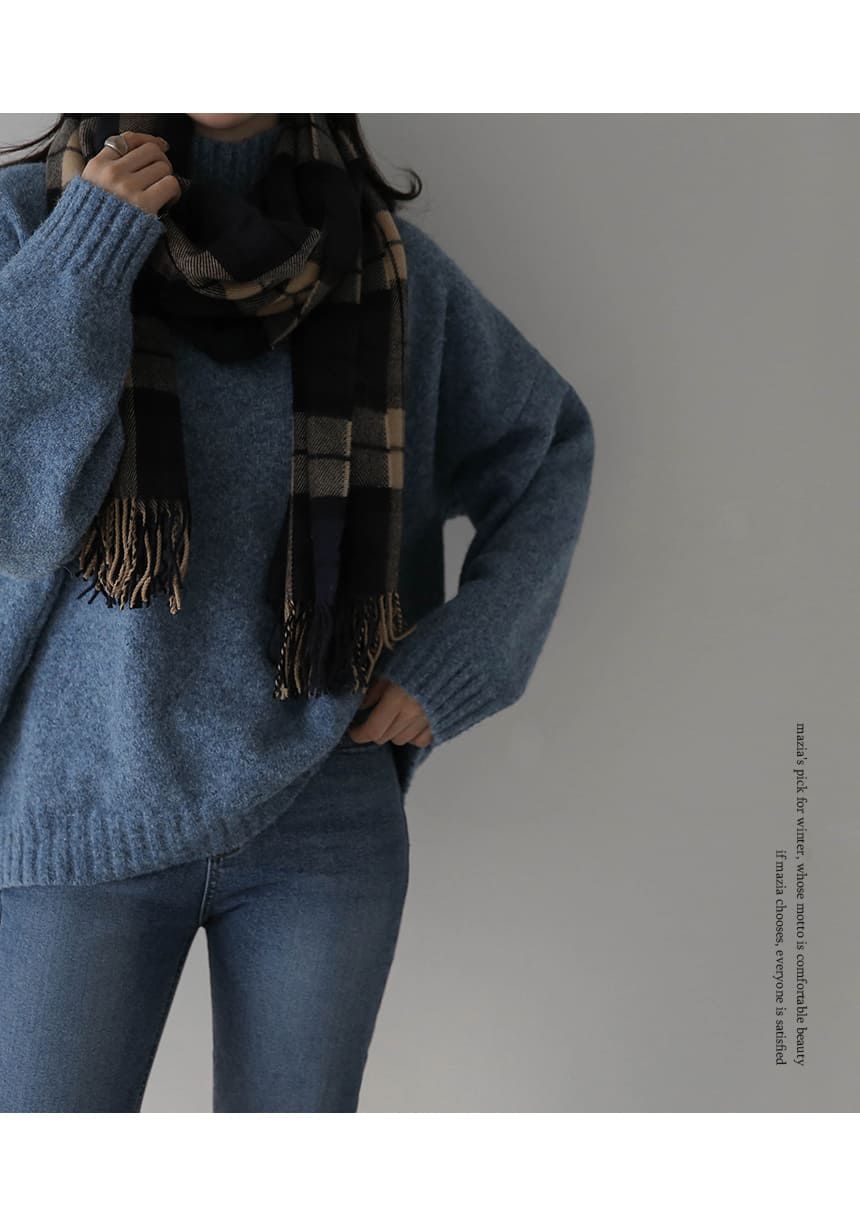 立領/高領/寬鬆版型/落肩長袖/蓬鬆保暖/混羊毛 - 休閒居家簡約百搭素面蓬鬆高領針織衫針織上衣長袖上衣羊毛針織衫寬鬆大尺碼上衣