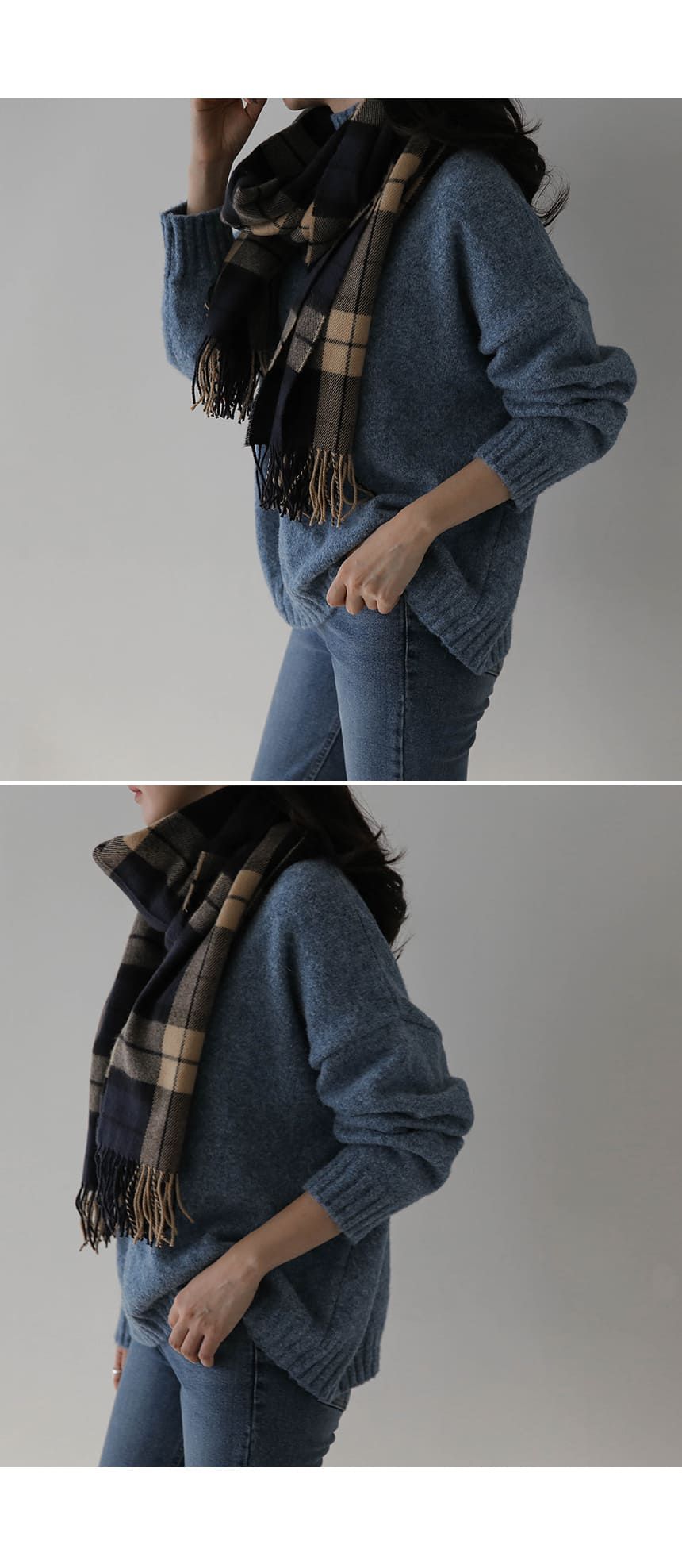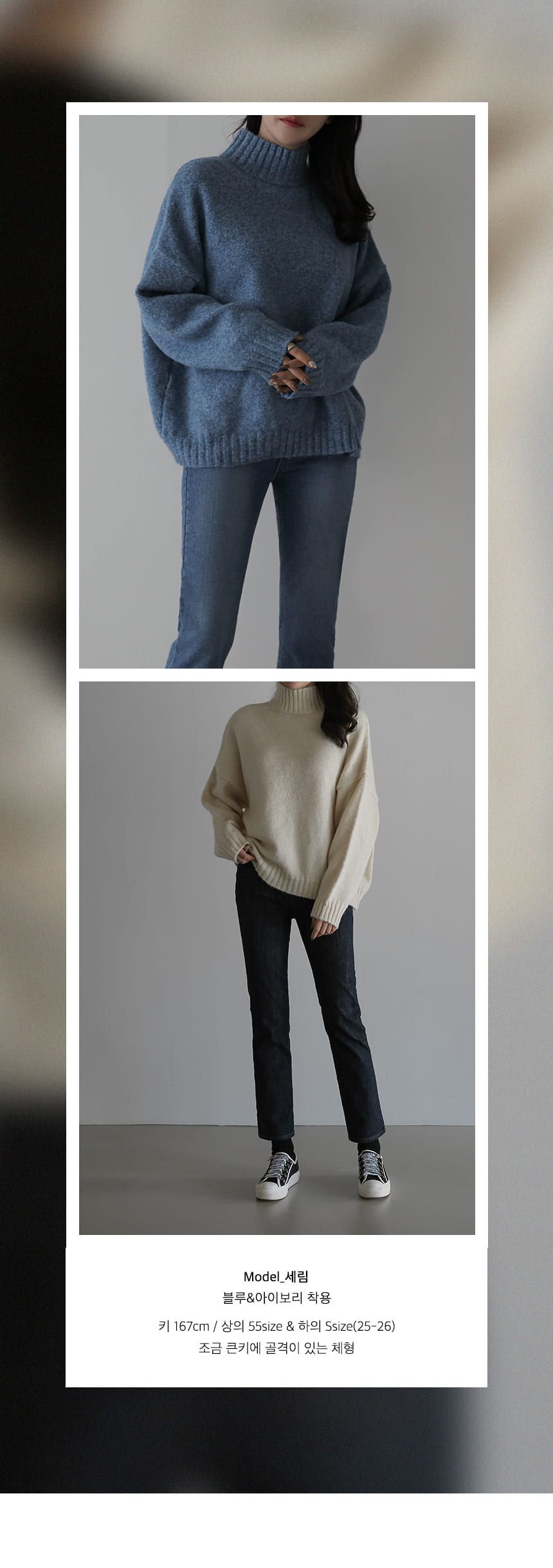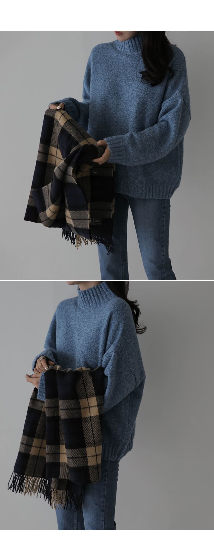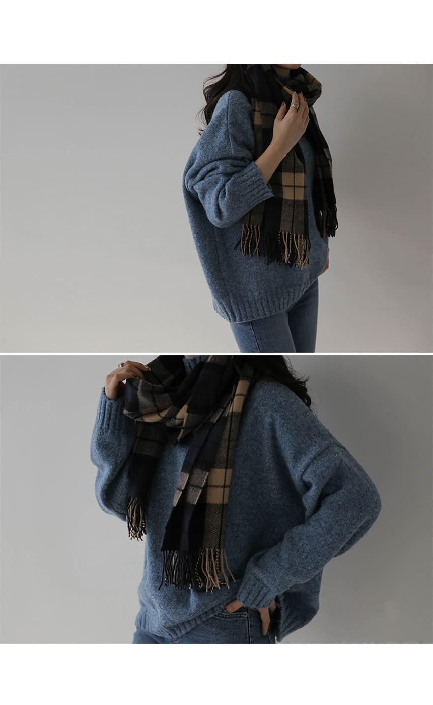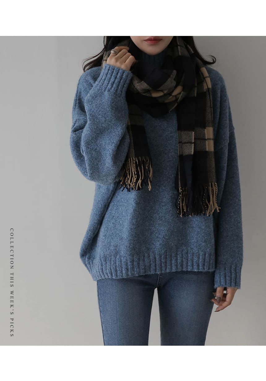 立領/高領/寬鬆版型/落肩長袖/蓬鬆保暖/混羊毛 - 休閒居家簡約百搭素面蓬鬆高領針織衫針織上衣長袖上衣羊毛針織衫寬鬆大尺碼上衣
