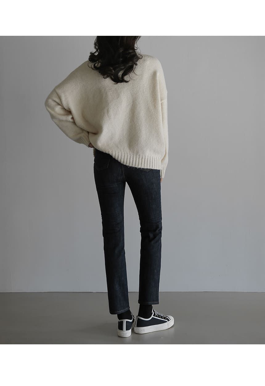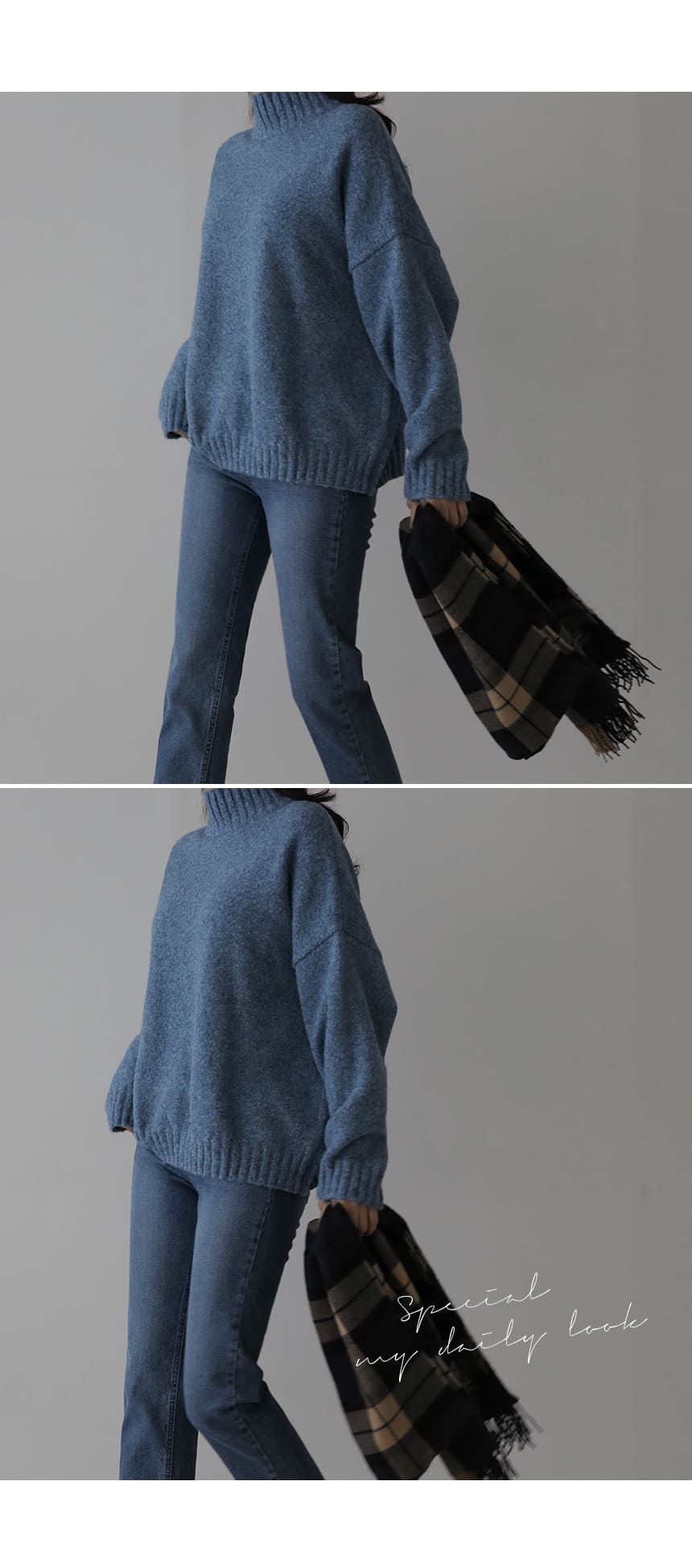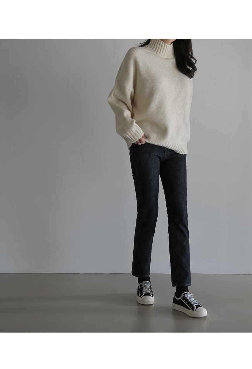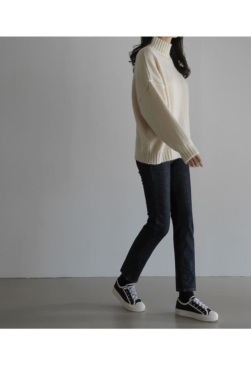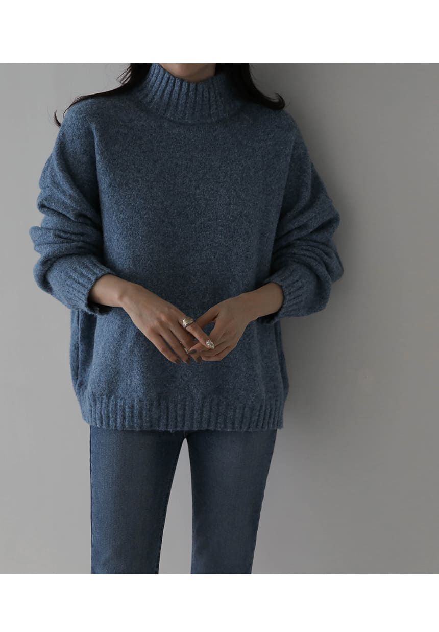 【C55679】韓國MAZ 蓬鬆高領針織衫-素面寬鬆落肩長袖混羊毛上衣★★