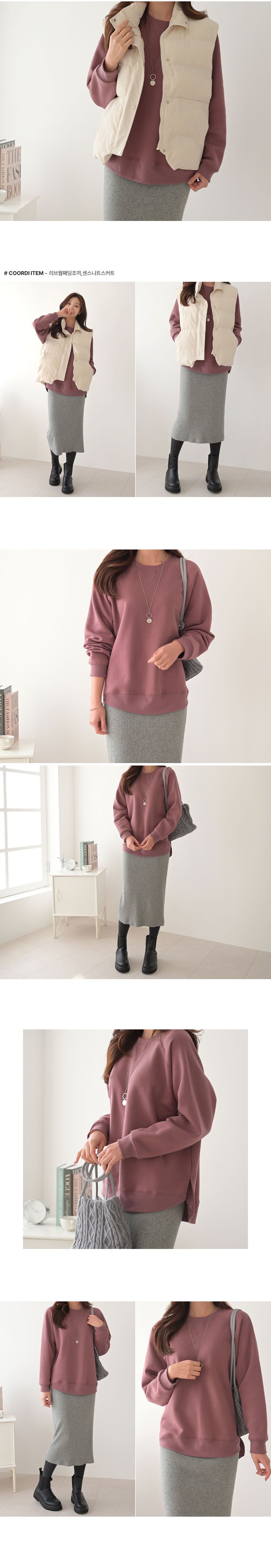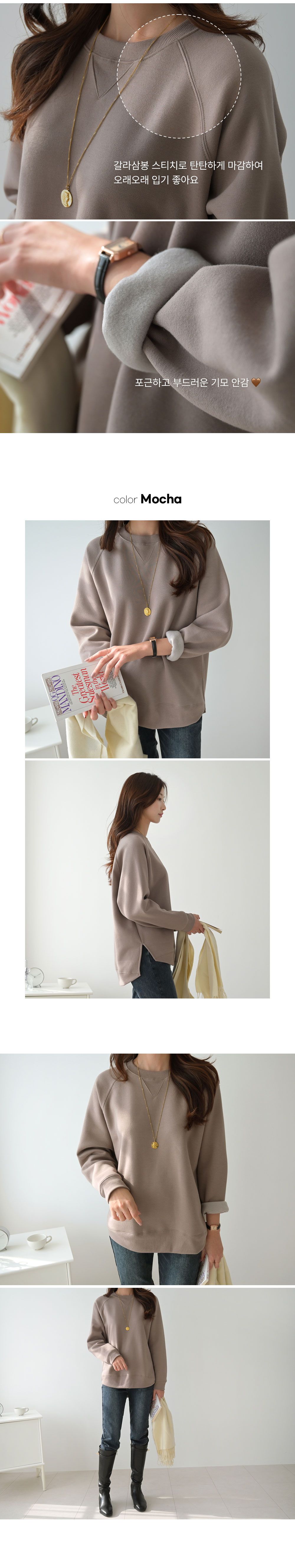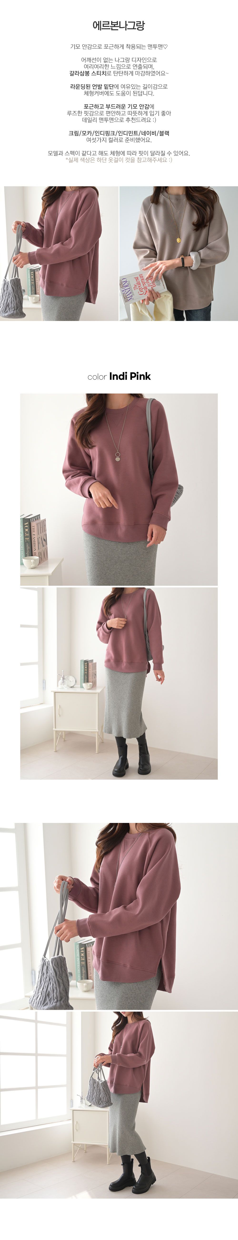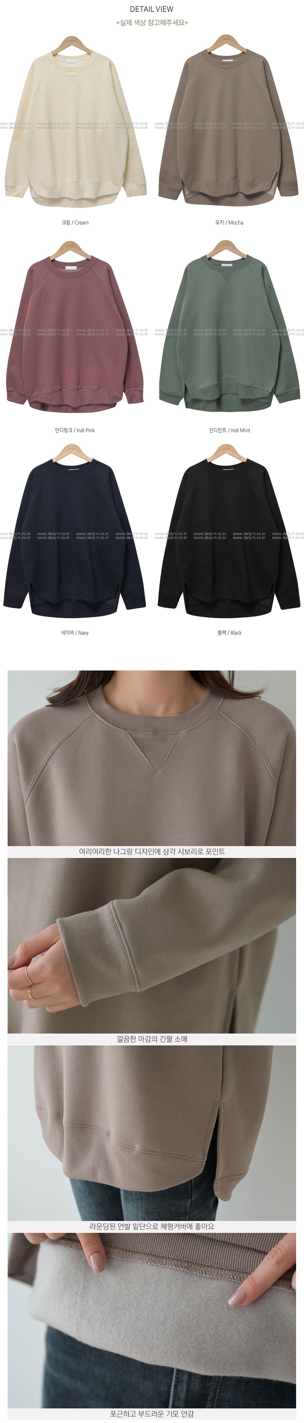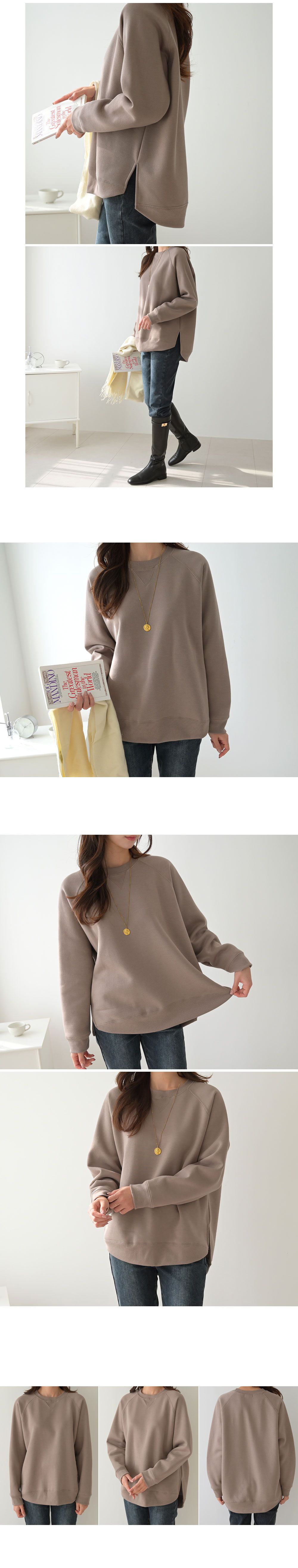 【C55680】韓國DLY 內刷毛大學T-好氣色素面寬鬆長版側開衩長袖上衣