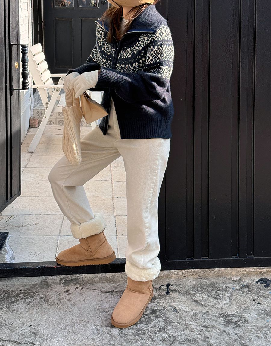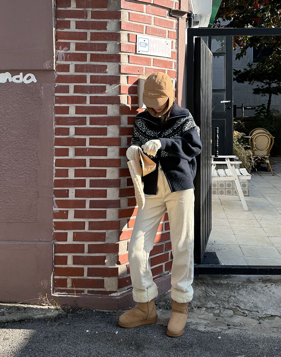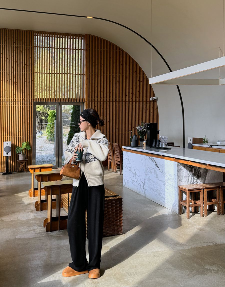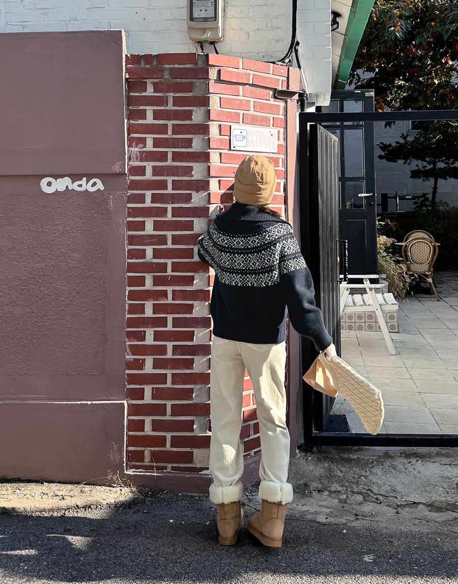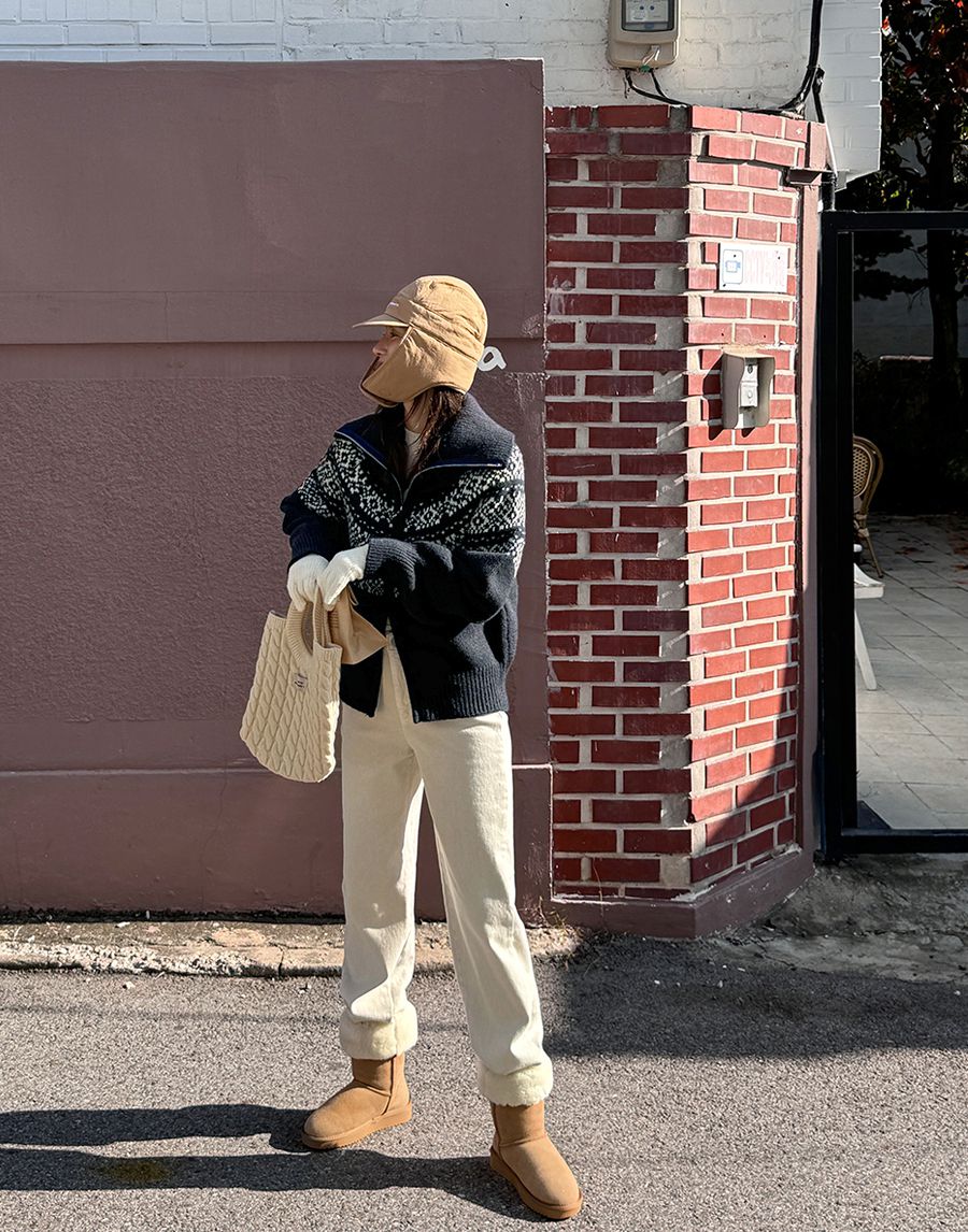 【C55682】韓國MBL 雪花紋針織外套-圖騰印花高領厚磅長袖拉鍊外套