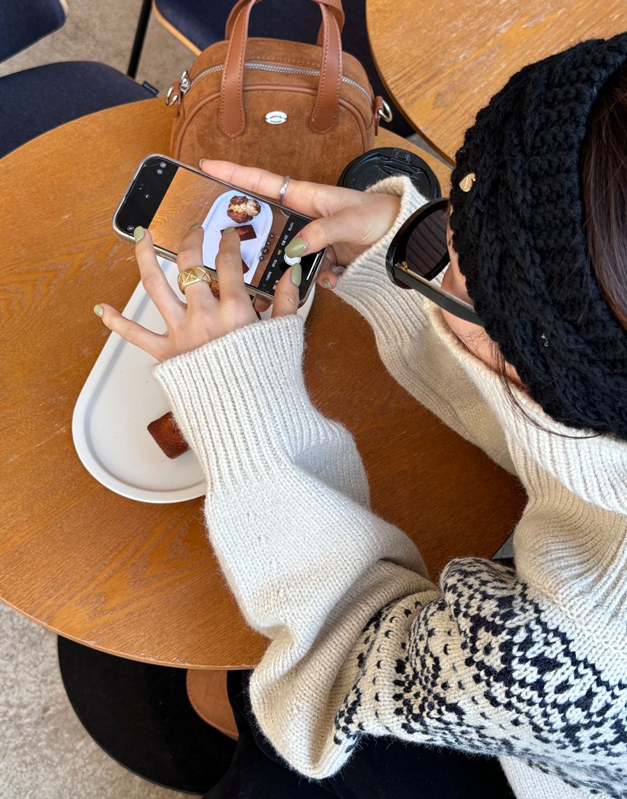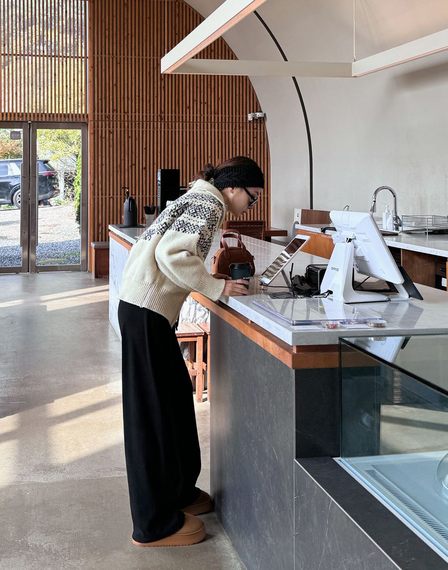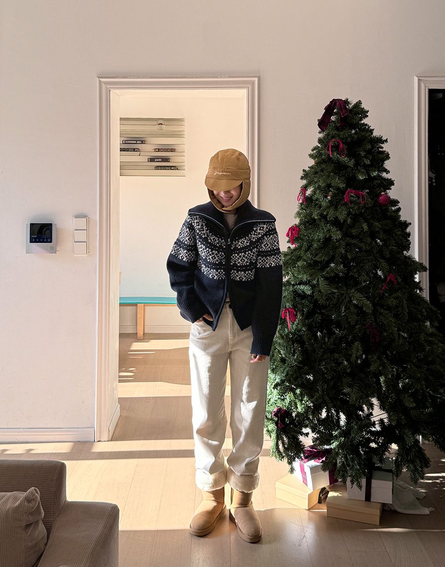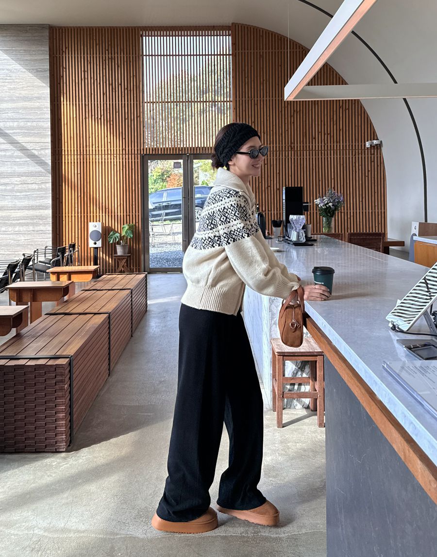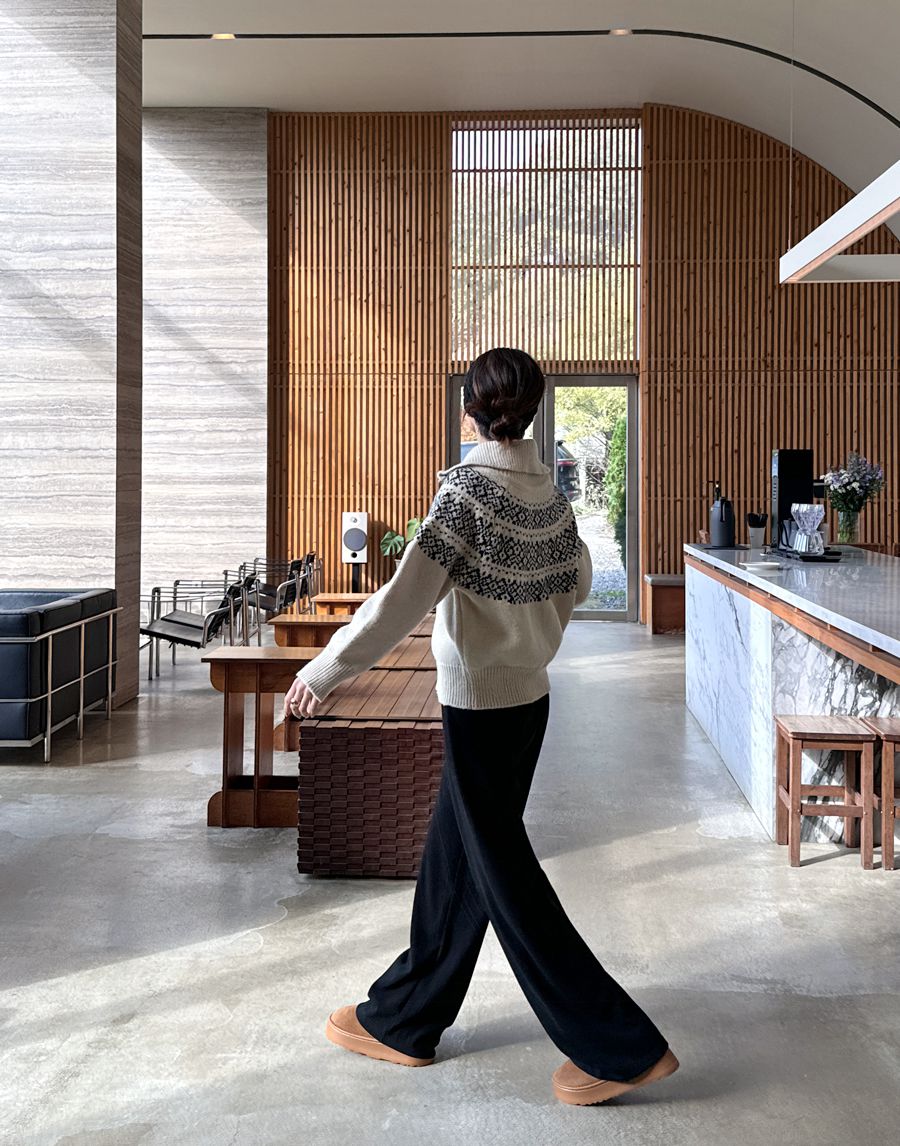 【C55682】韓國MBL 雪花紋針織外套-圖騰印花高領厚磅長袖拉鍊外套