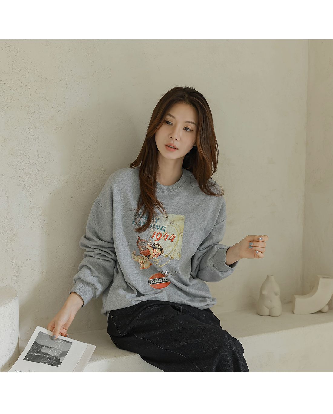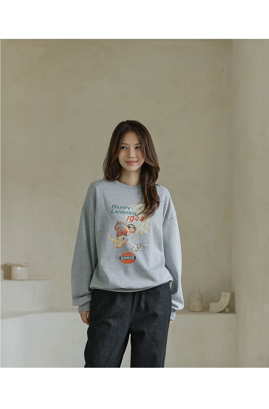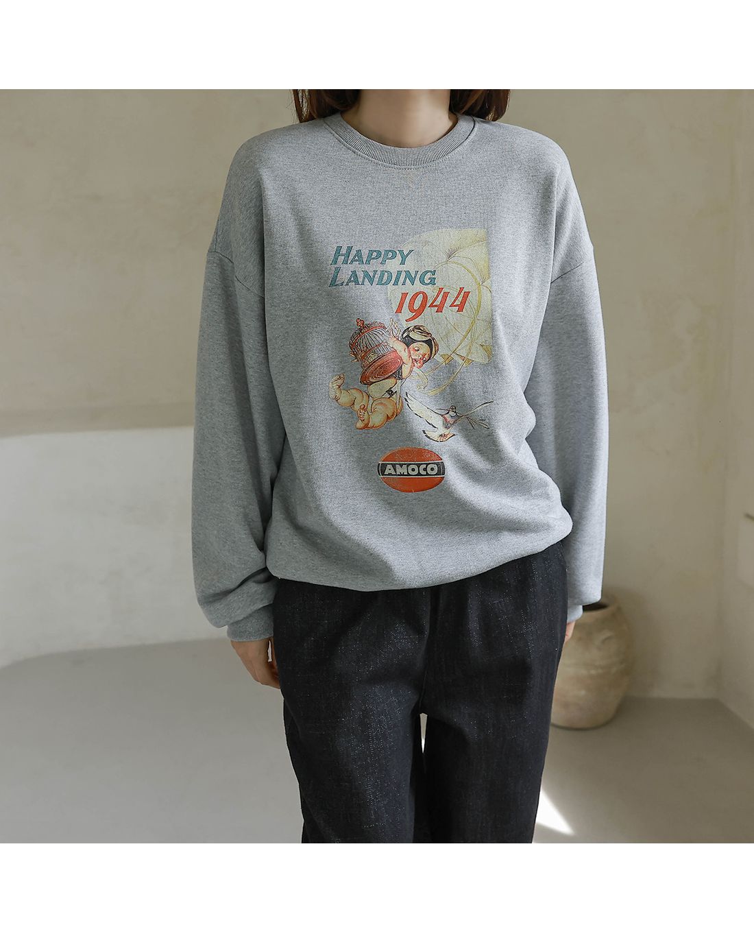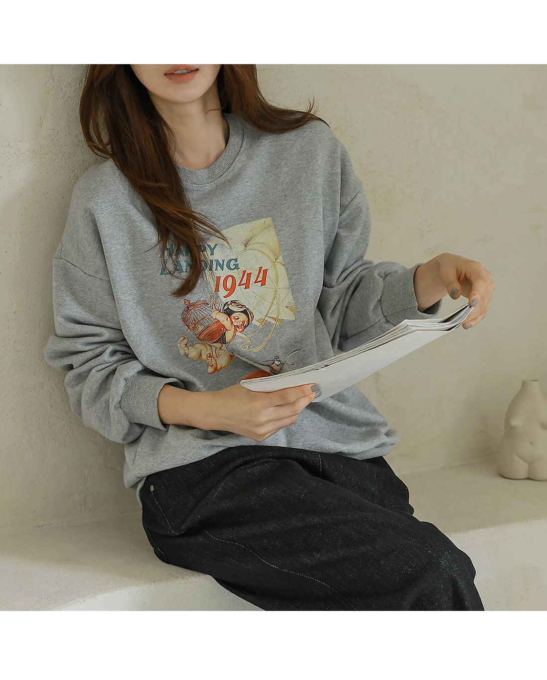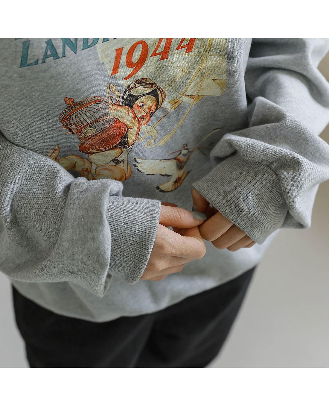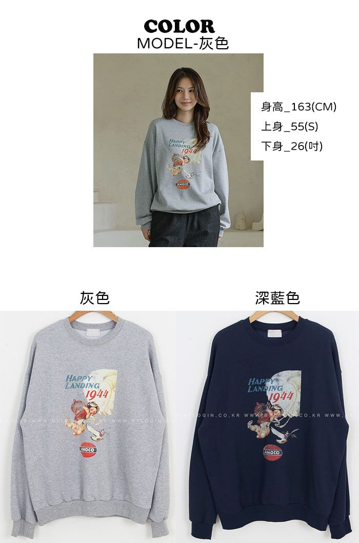 【C55699】韓國BLG 寶寶印花大學T-復古飛行員圖騰圓領落肩長袖上衣