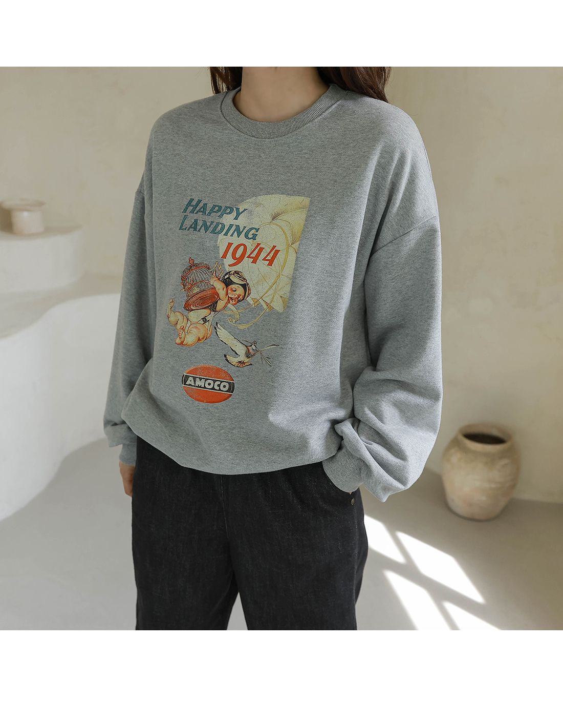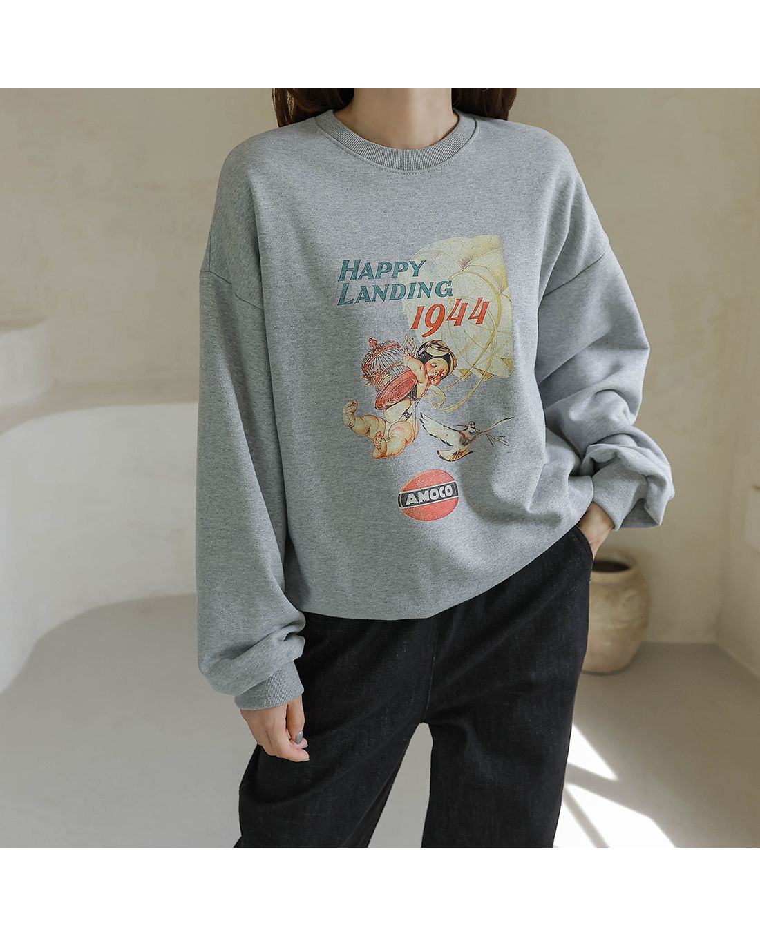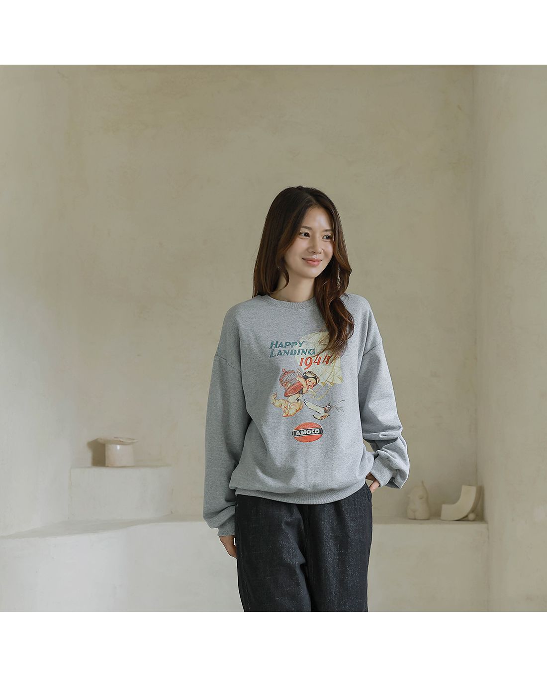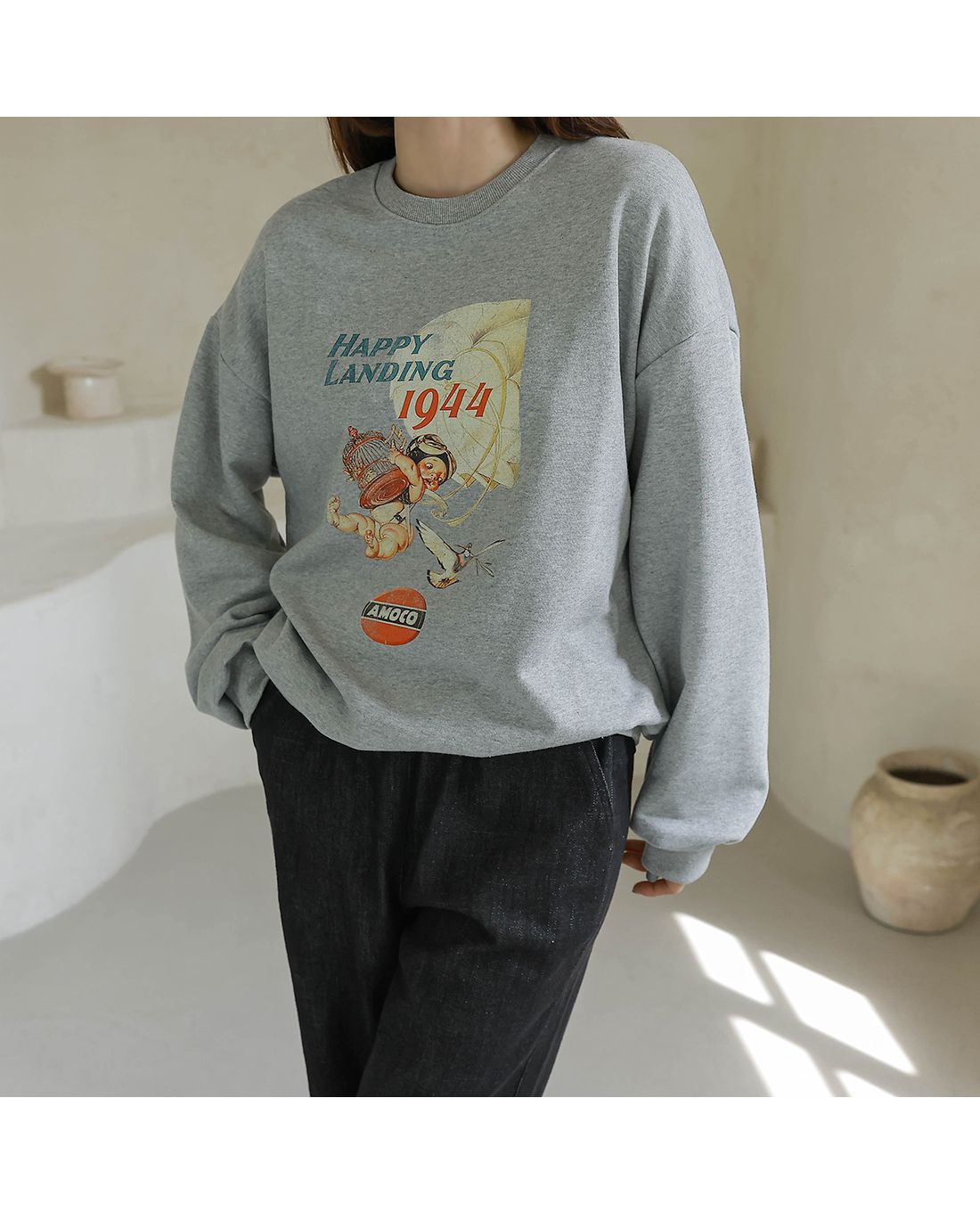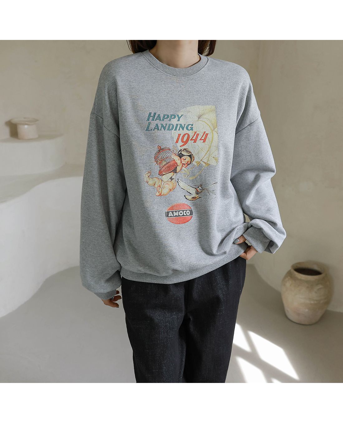 【C55699】韓國BLG 寶寶印花大學T-復古飛行員圖騰圓領落肩長袖上衣
