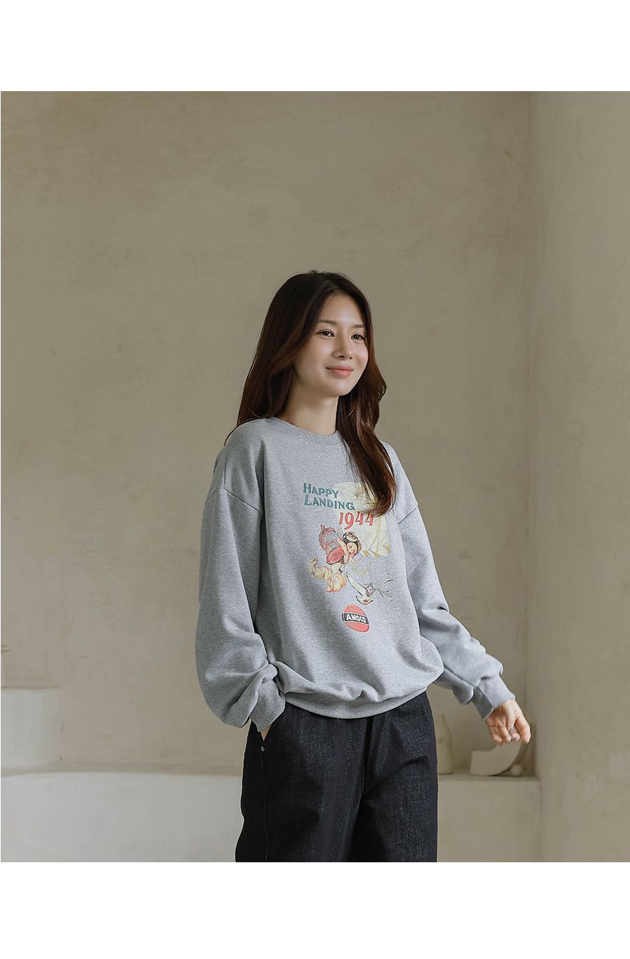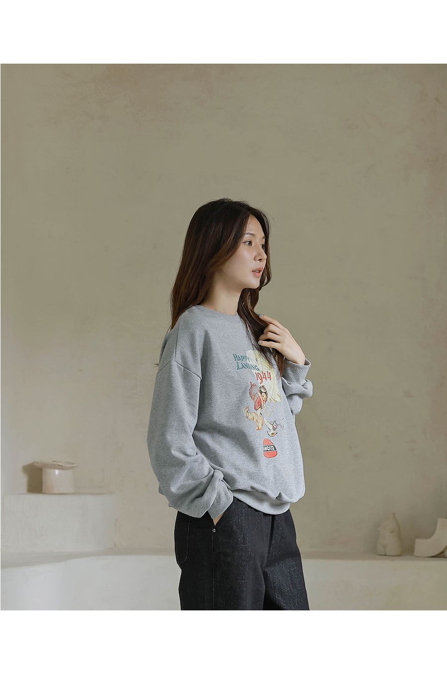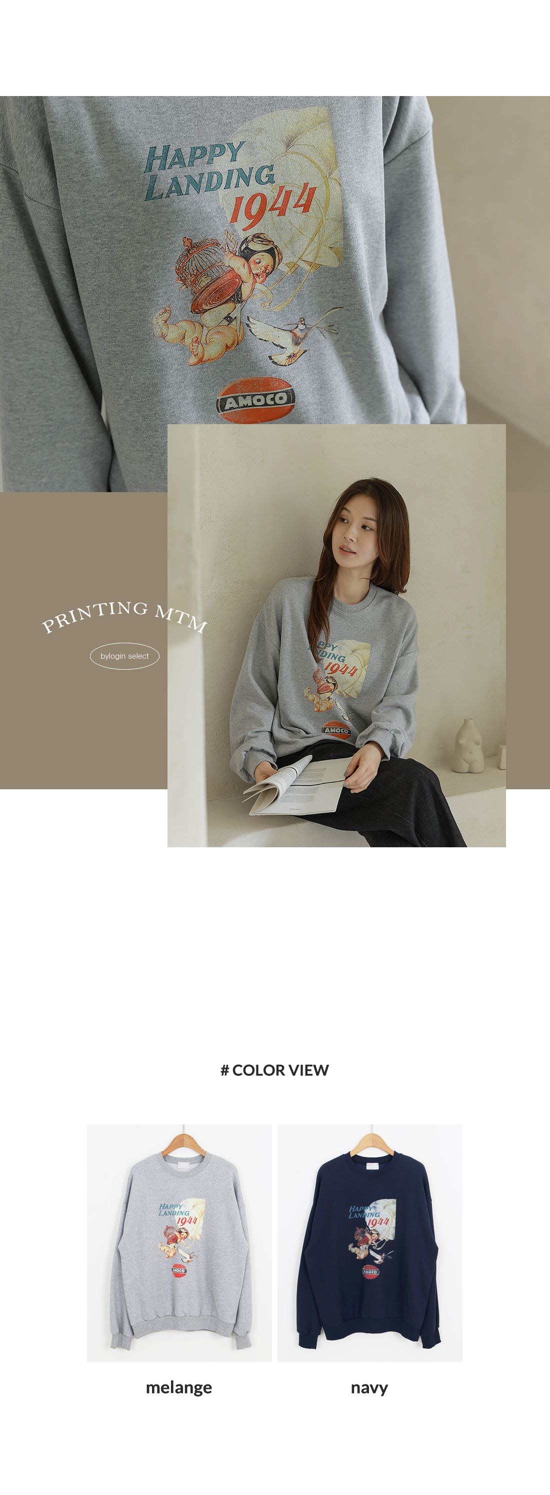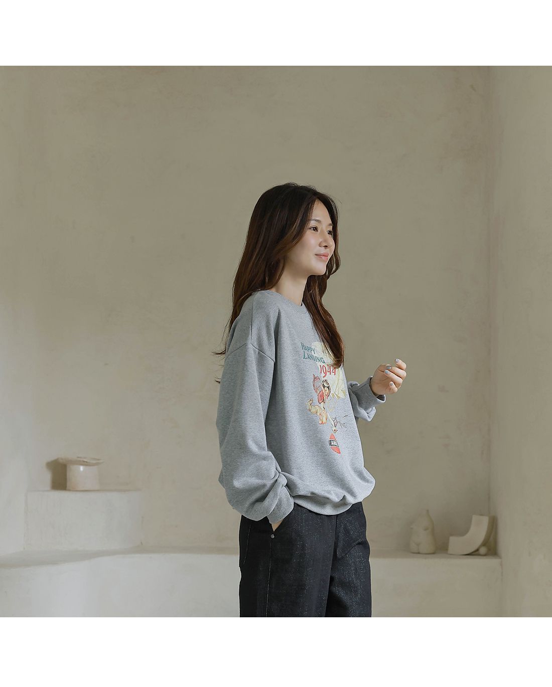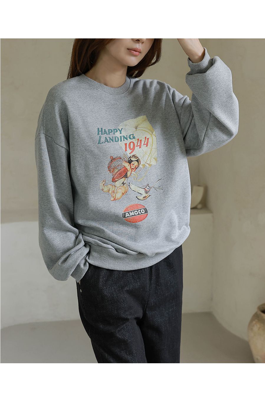 【C55699】韓國BLG 寶寶印花大學T-復古飛行員圖騰圓領落肩長袖上衣