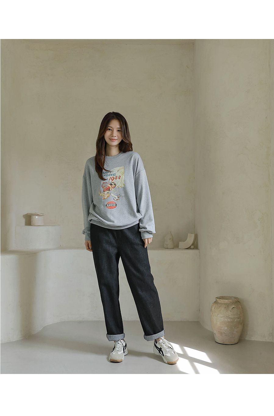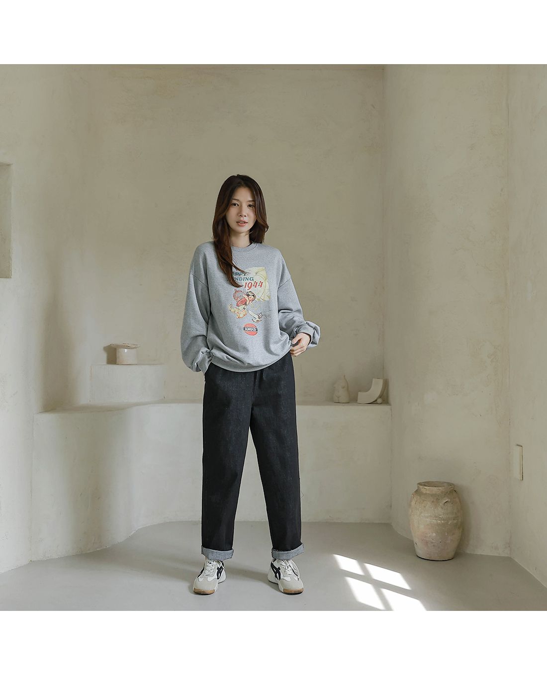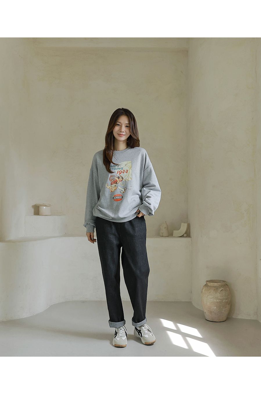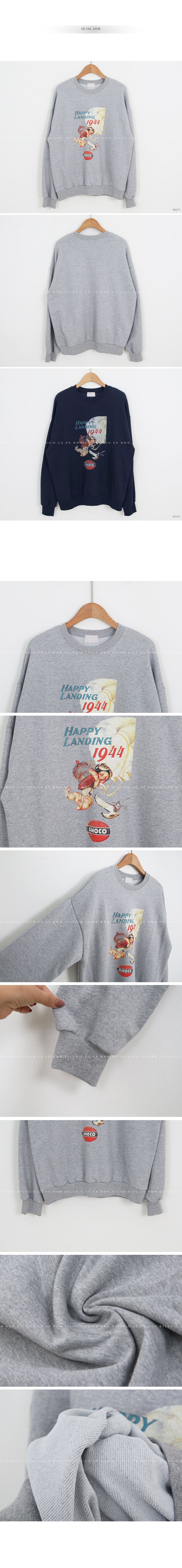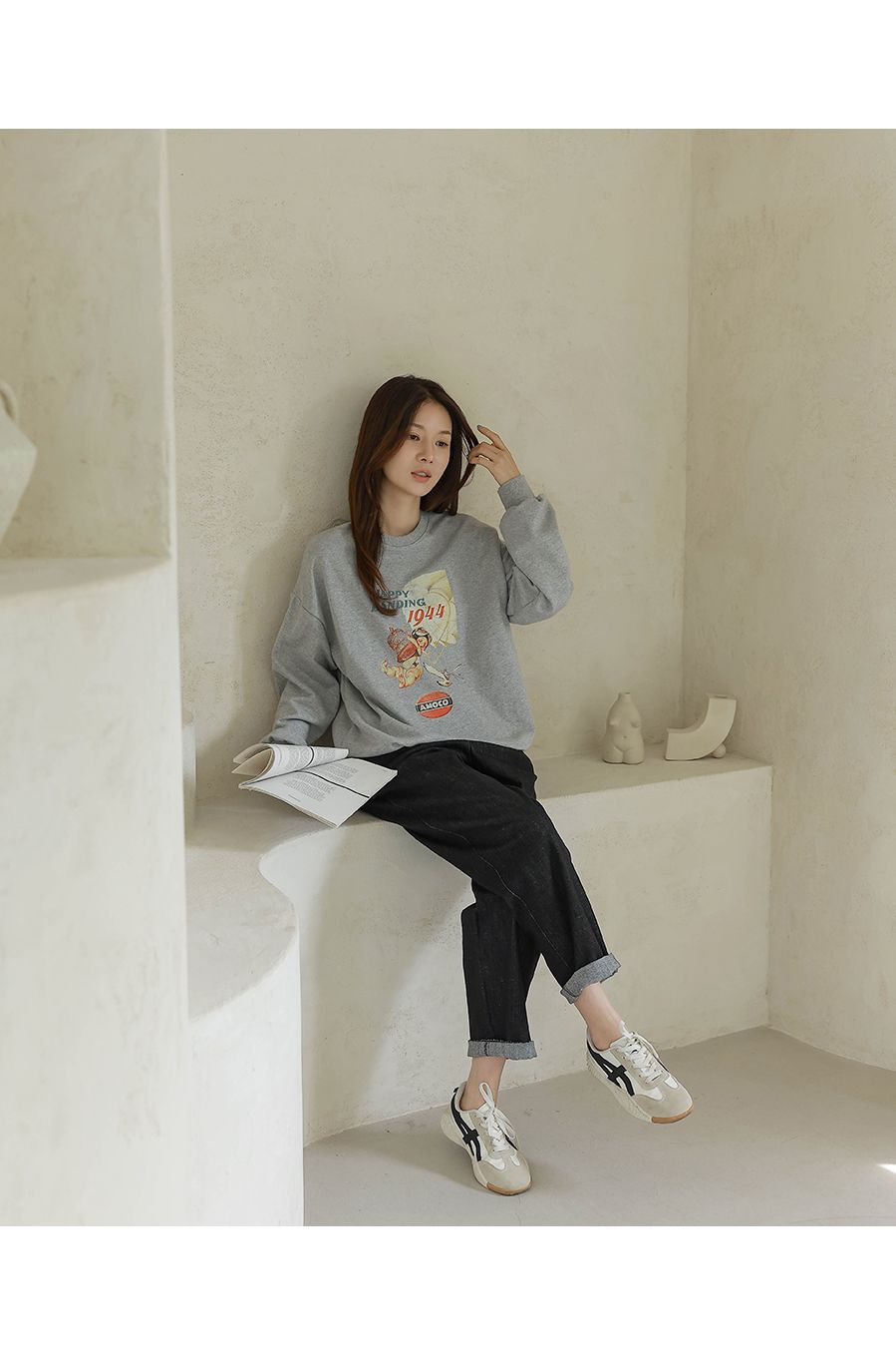 【C55699】韓國BLG 寶寶印花大學T-復古飛行員圖騰圓領落肩長袖上衣