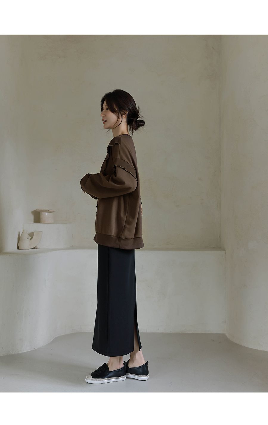 三種尺寸/運動棉裙/全腰鬆緊/直筒版型/後開衩/無口袋 - 休閒居家渡假簡約百搭素面後開衩直筒棉裙直筒裙窄裙寬鬆大尺碼長裙多尺寸LXL2XL棕色黑色